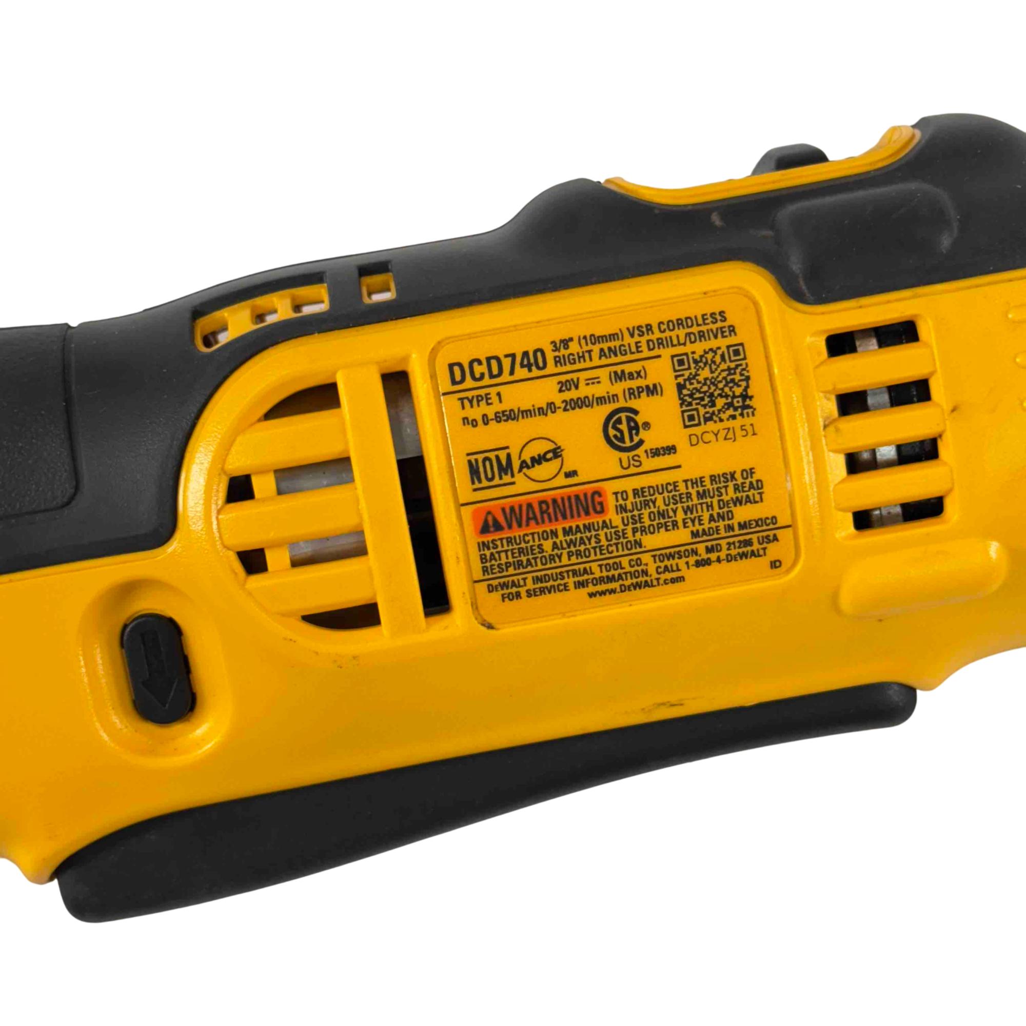 DEWALT DCD740 20-Volt MAX Li-Ion Cordless 3/8 in. Right Angle Drill/Driver