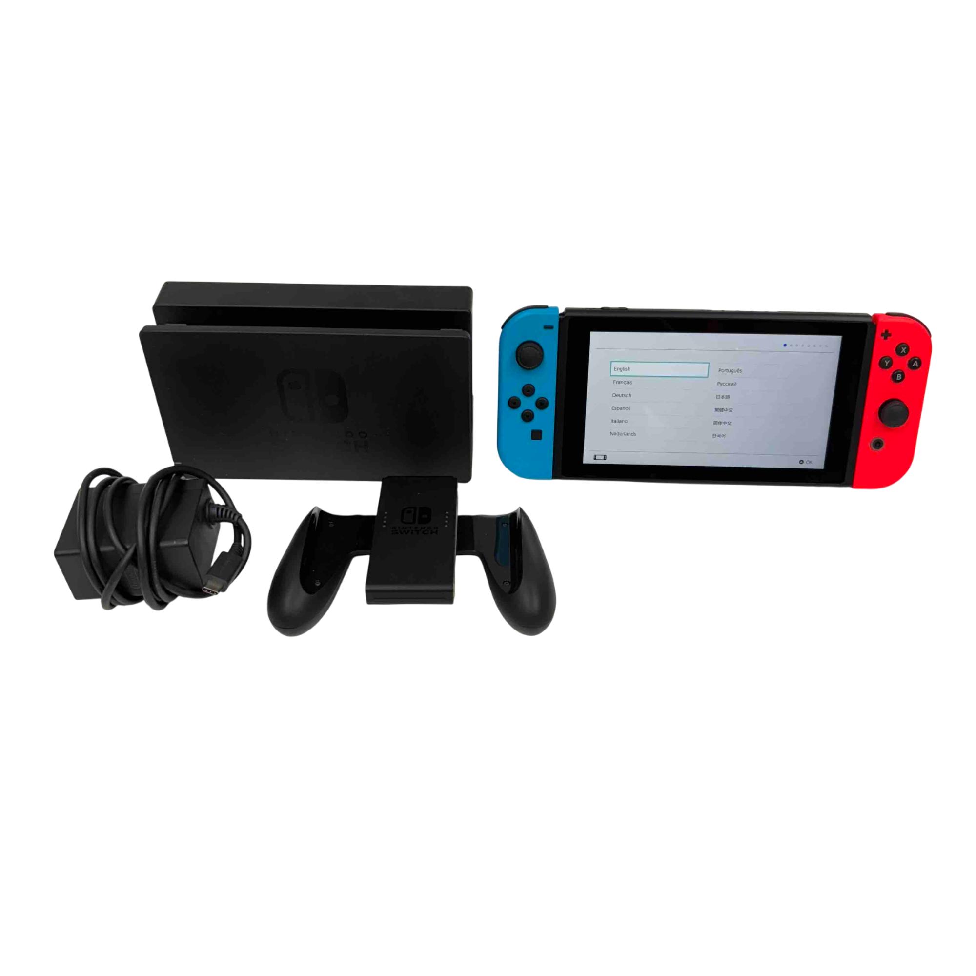Experience versatile gaming with the Nintendo Switch HAC-001, featuring 32GB of storage and Neon Blue/Neon Red Joy-Con controllers. This bundle includes the original dock, Joy-Con grip, and charger, allowing you to seamlessly switch between handheld, tabletop, and TV modes. Perfect for both solo and multiplayer fun, this lightly used Switch delivers endless entertainment and flexibility for all ages.
