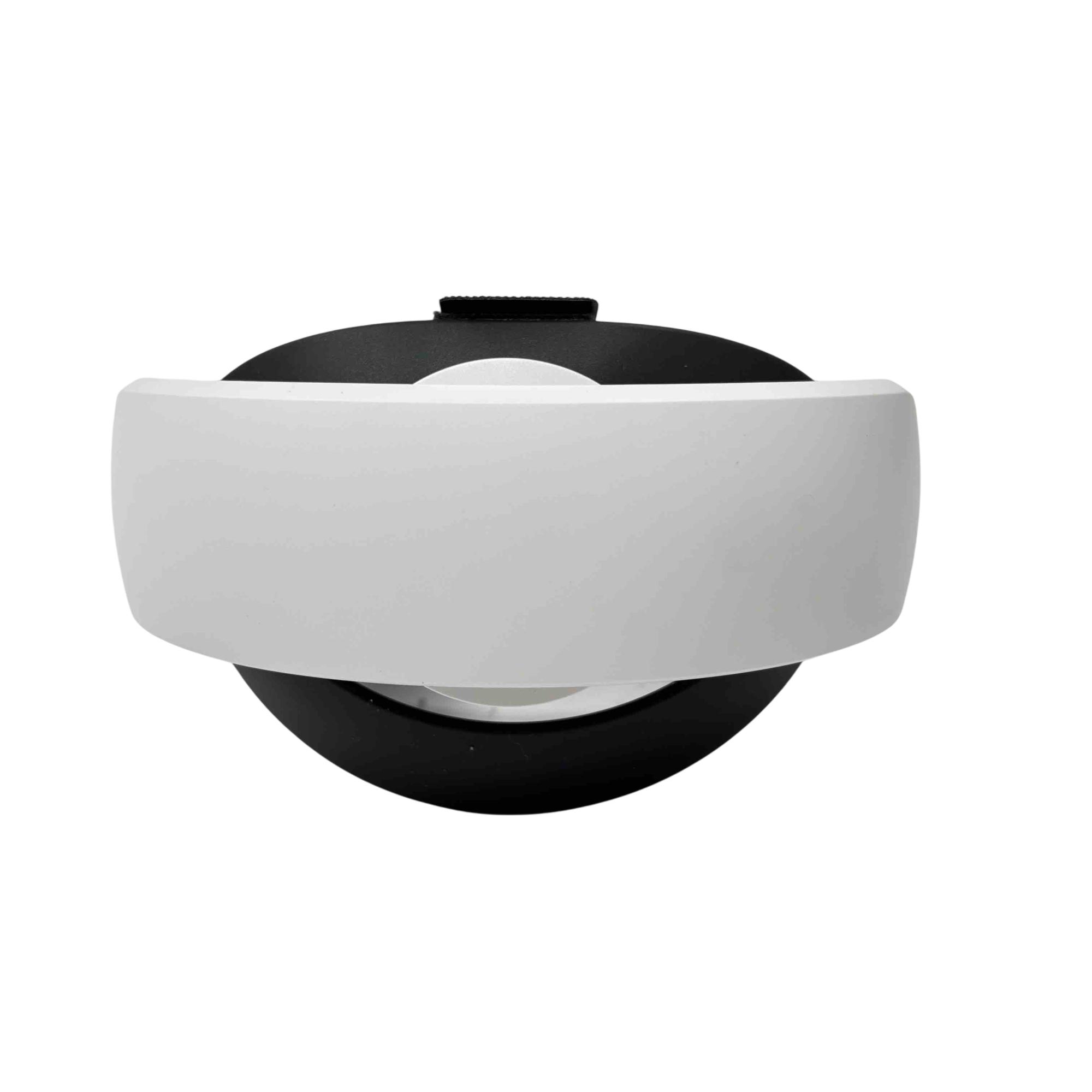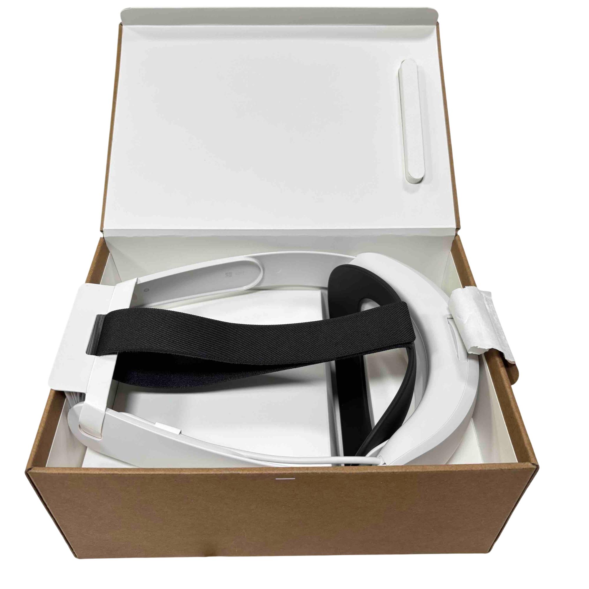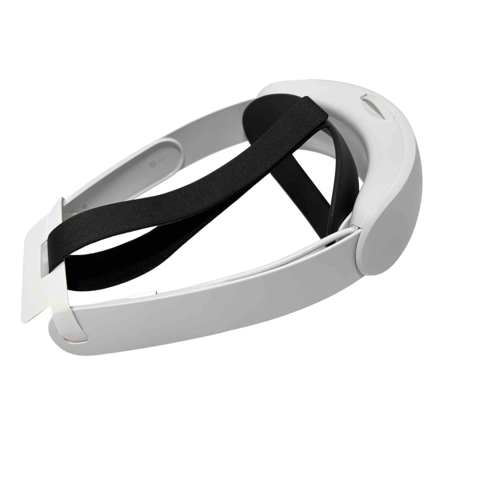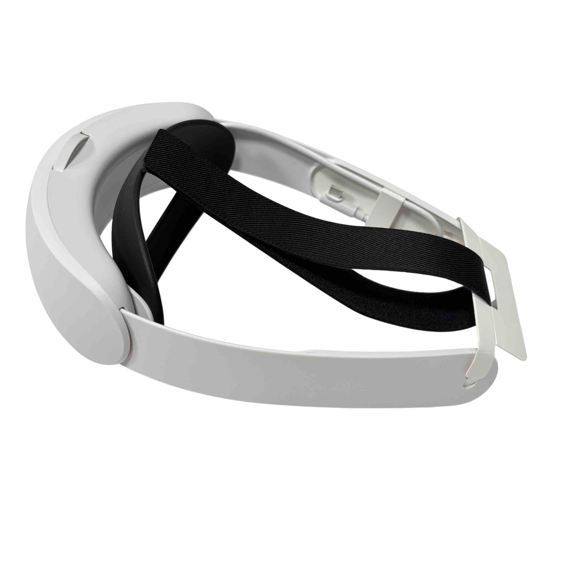 Soft silicone flexible support brace cradles the back of the wearer’s head to support headset weight and reduce wearer fatigue