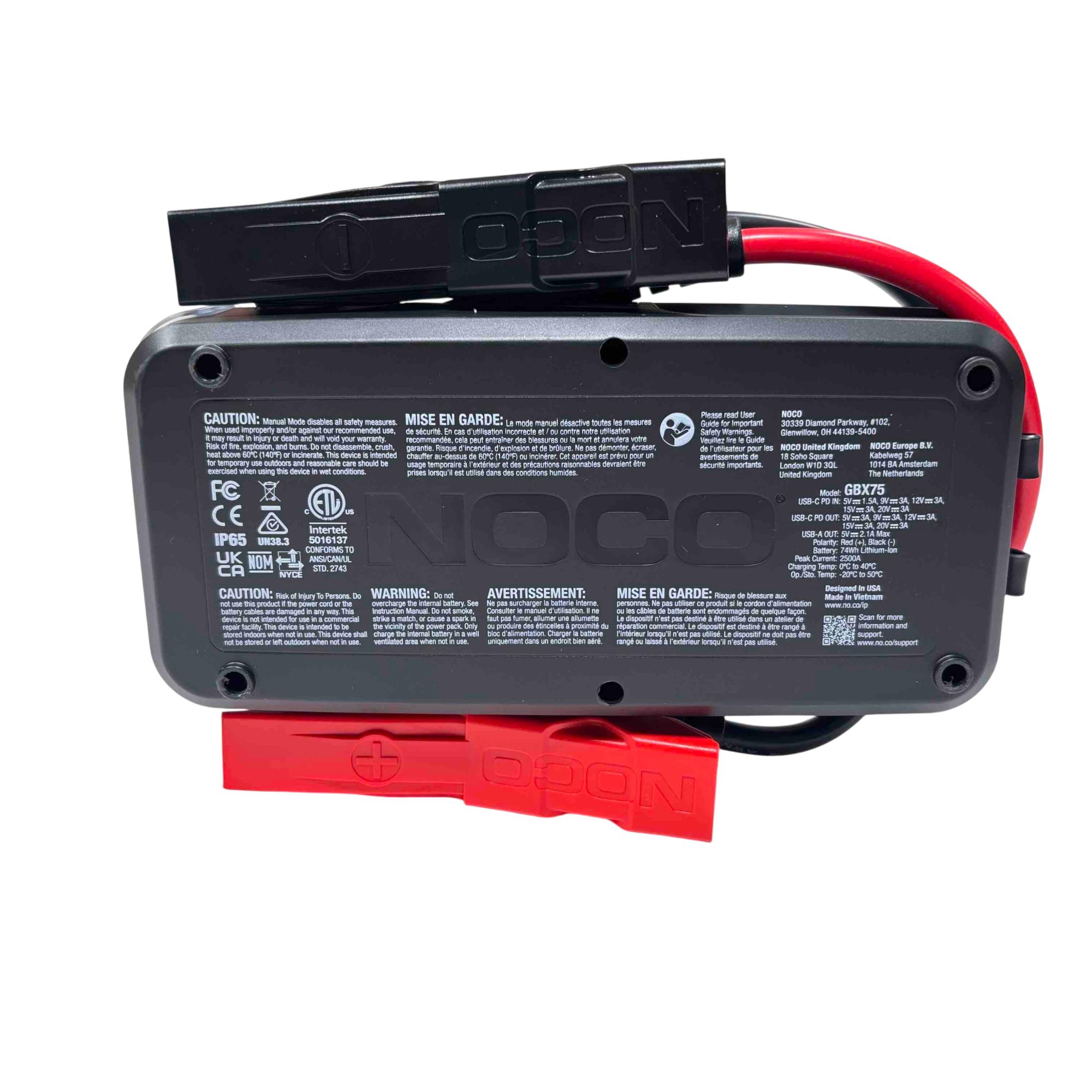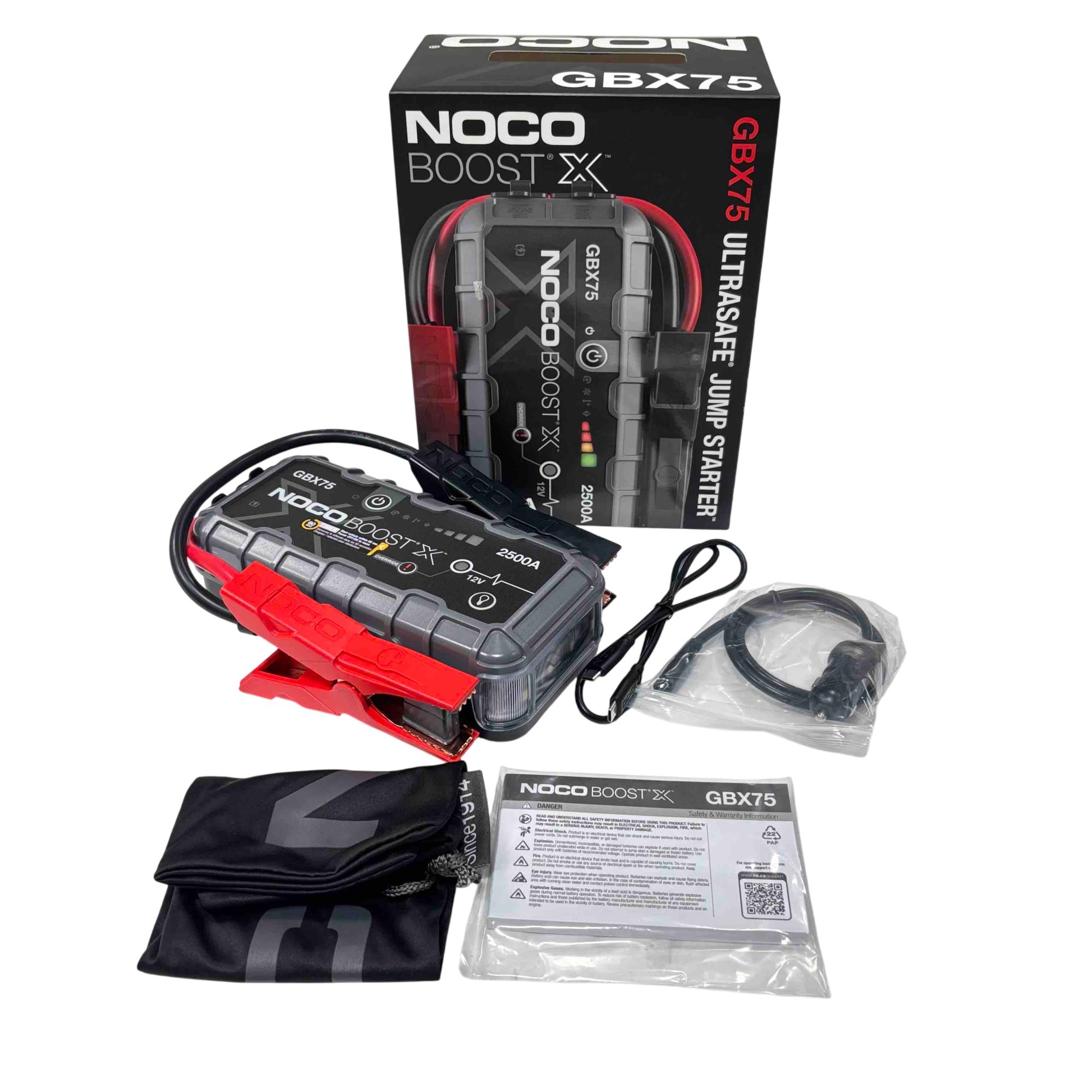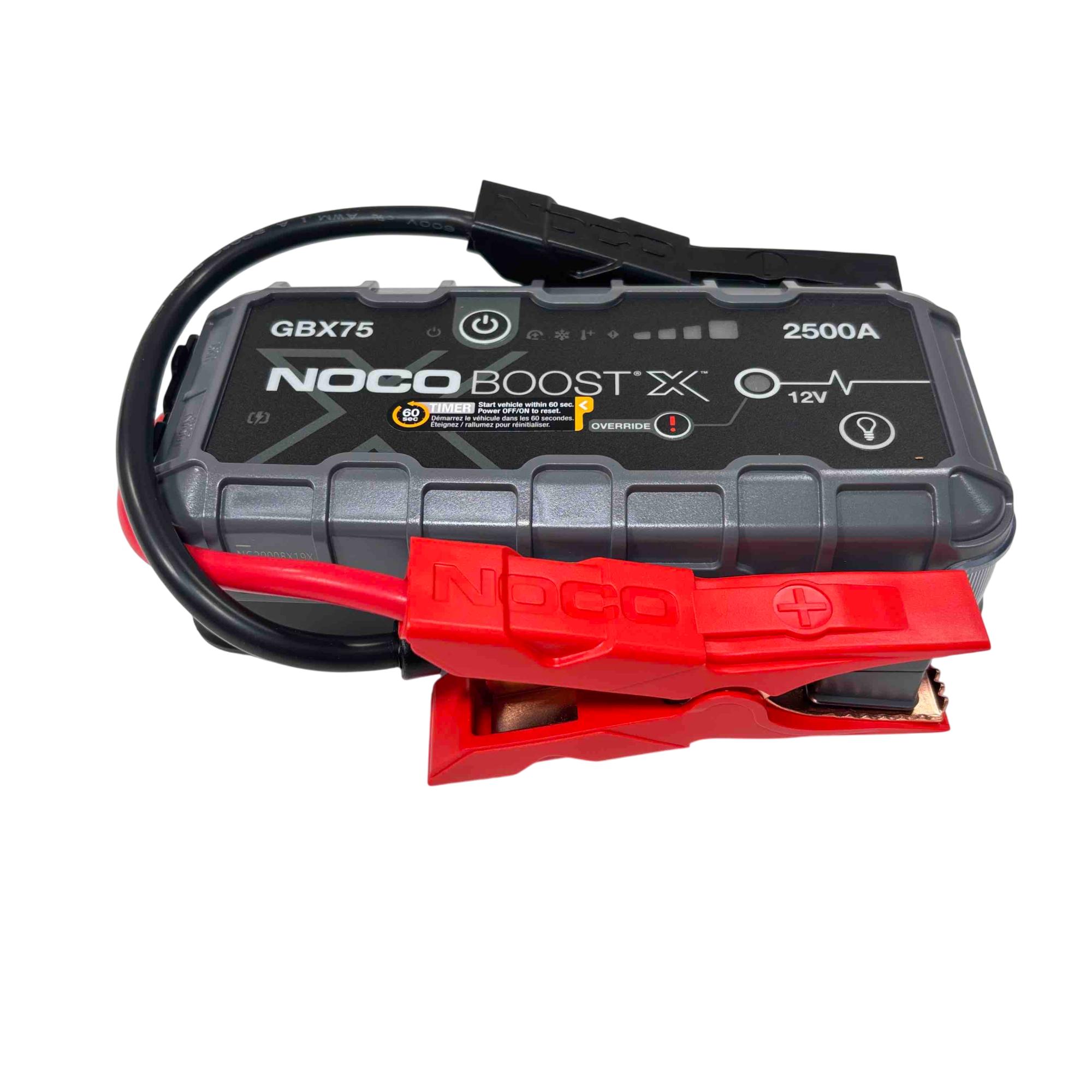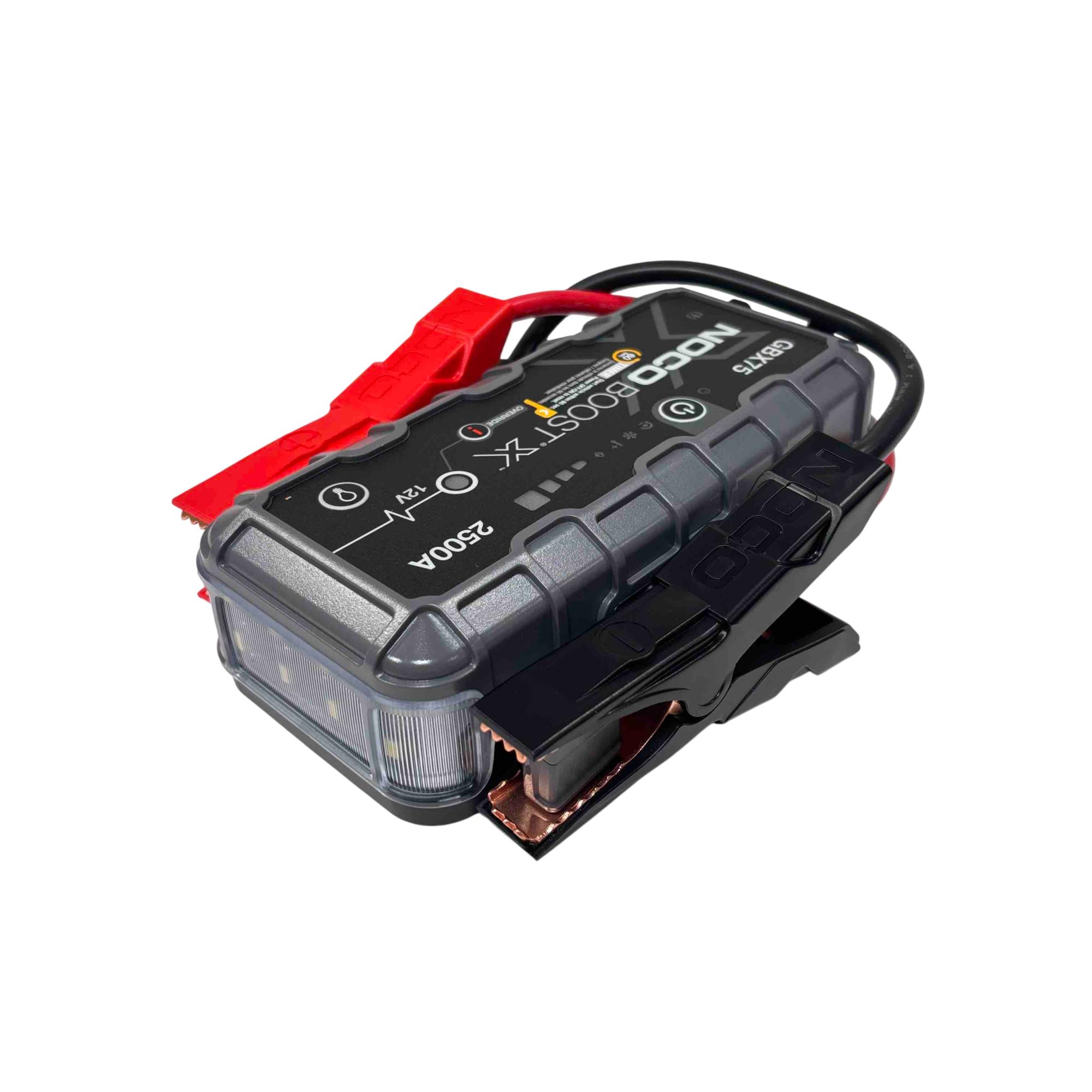 Jump start your vehicle quickly and safely with the NOCO Boost X GBX75. This powerful 2500 amp lithium jump starter is ultra-safe, compact, and reliable, able to jump start gasoline engines up to 8.5 liters and diesel engines up to 6.5 liters. It includes advanced safety technology and USB-C charging for maximum convenience, making it a must-have for emergencies and everyday use.