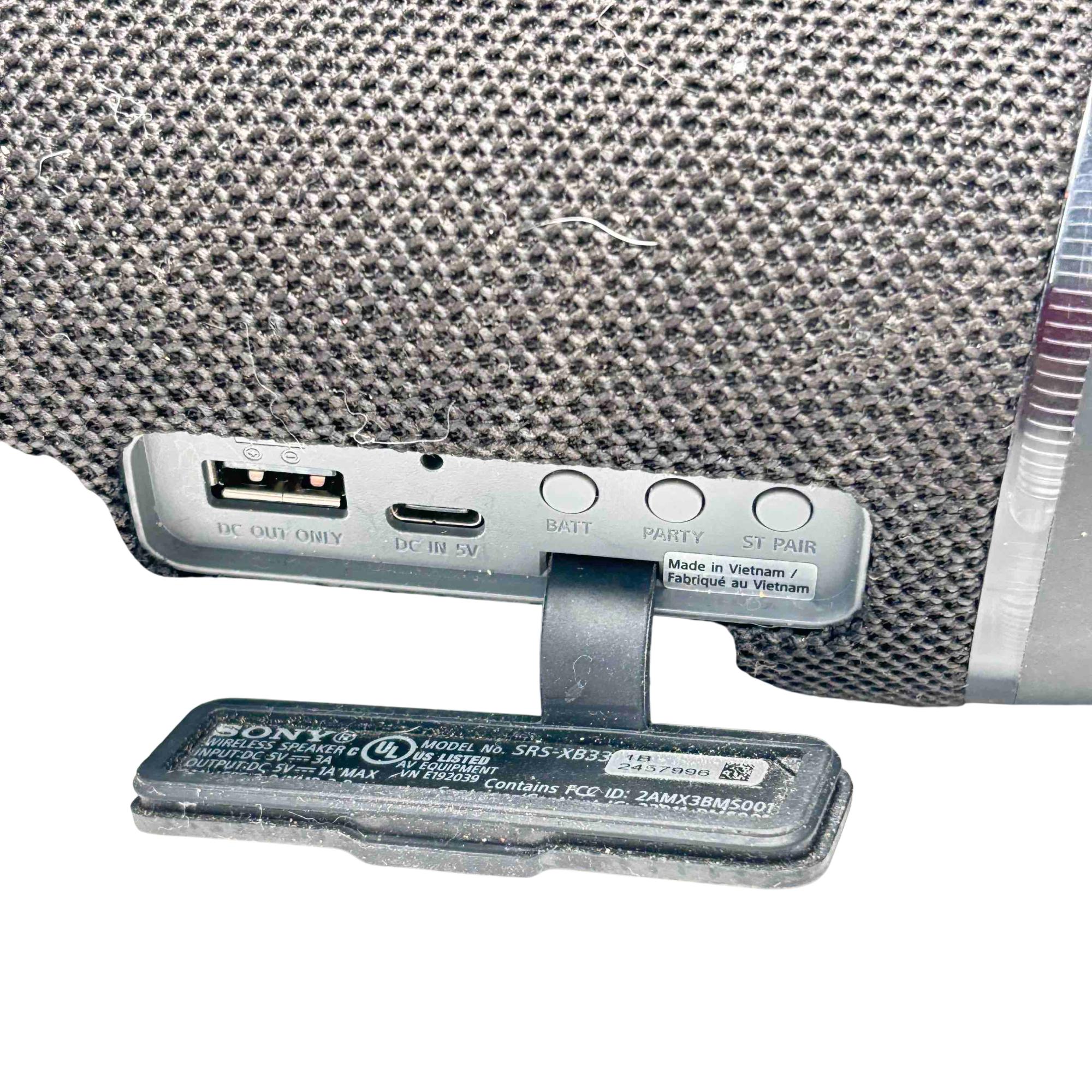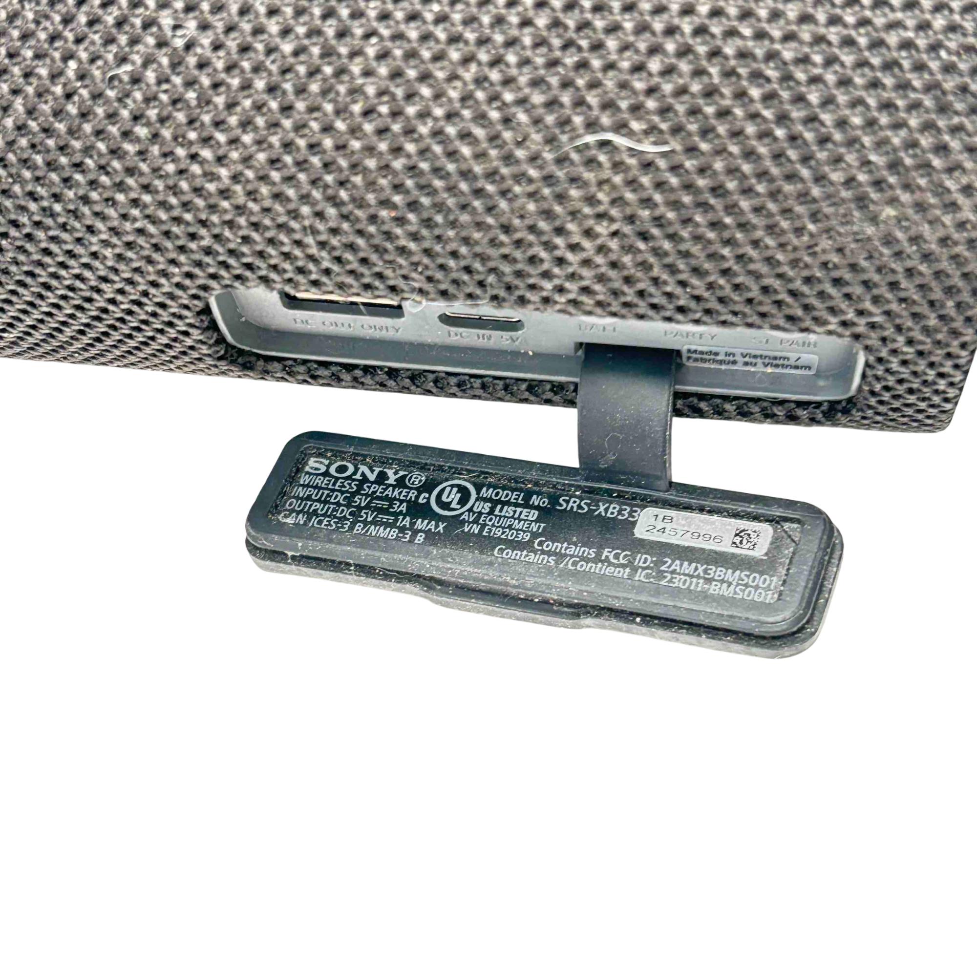 Experience powerful sound on the go with the Sony SRS-XB33 Wireless Portable Speaker. Featuring Extra Bass technology, water and dust resistance, and rugged durability, its designed for parties and outdoor adventures. This unit has a torn mesh grill but remains an excellent choice for immersive wireless audio.