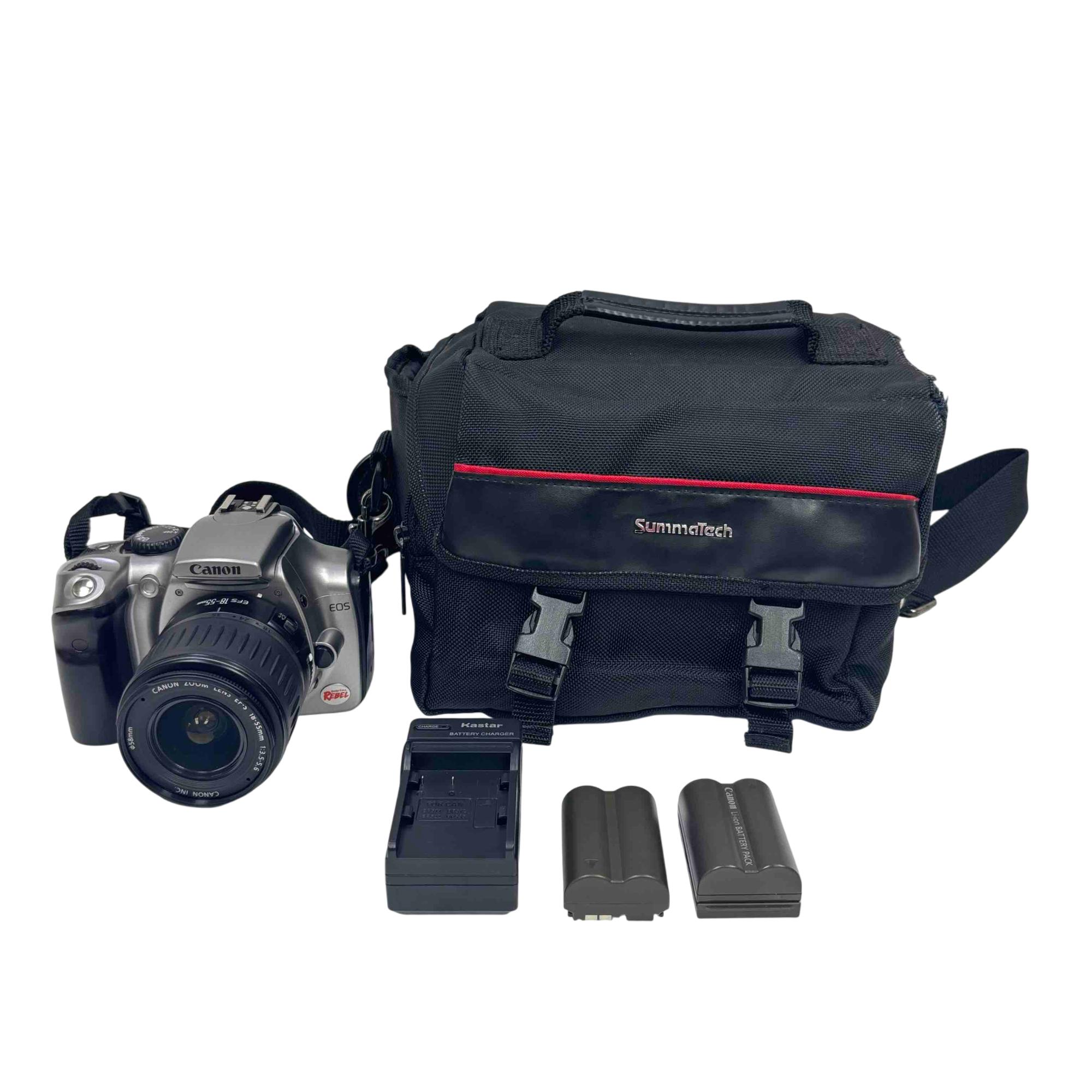 Capture stunning photos with the Canon EOS Digital Rebel DS6041, a classic 6.3MP digital SLR. This set includes the versatile Canon EF-S 18-55mm f/3.5-5.6 zoom lens, two rechargeable batteries for extended shooting, and a convenient carrying bag—perfect for photographers on the go. Experience Canon's legendary image quality and reliability in a lightweight, easy-to-use package.