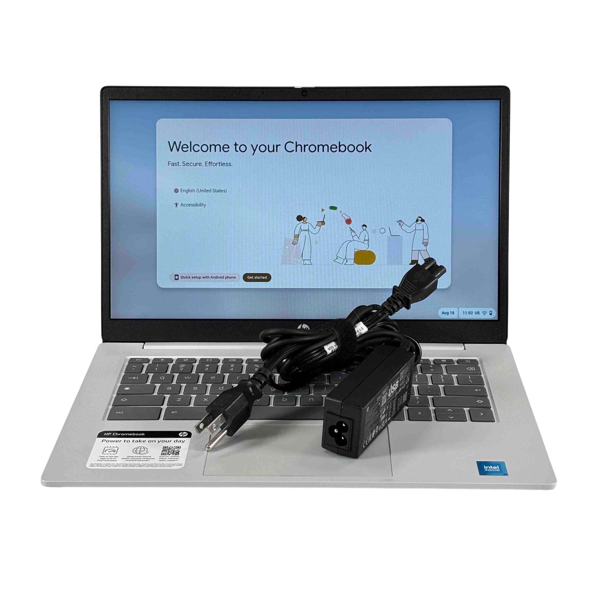 The HP Chromebook 14a-nf0131wm features a 14-inch display, powered by an Intel N200 1.8GHz processor with 4GB of RAM and a 128GB SSD. Running ChromeOS, it offers a fast, secure experience with easy access to Google apps and cloud-based productivity.