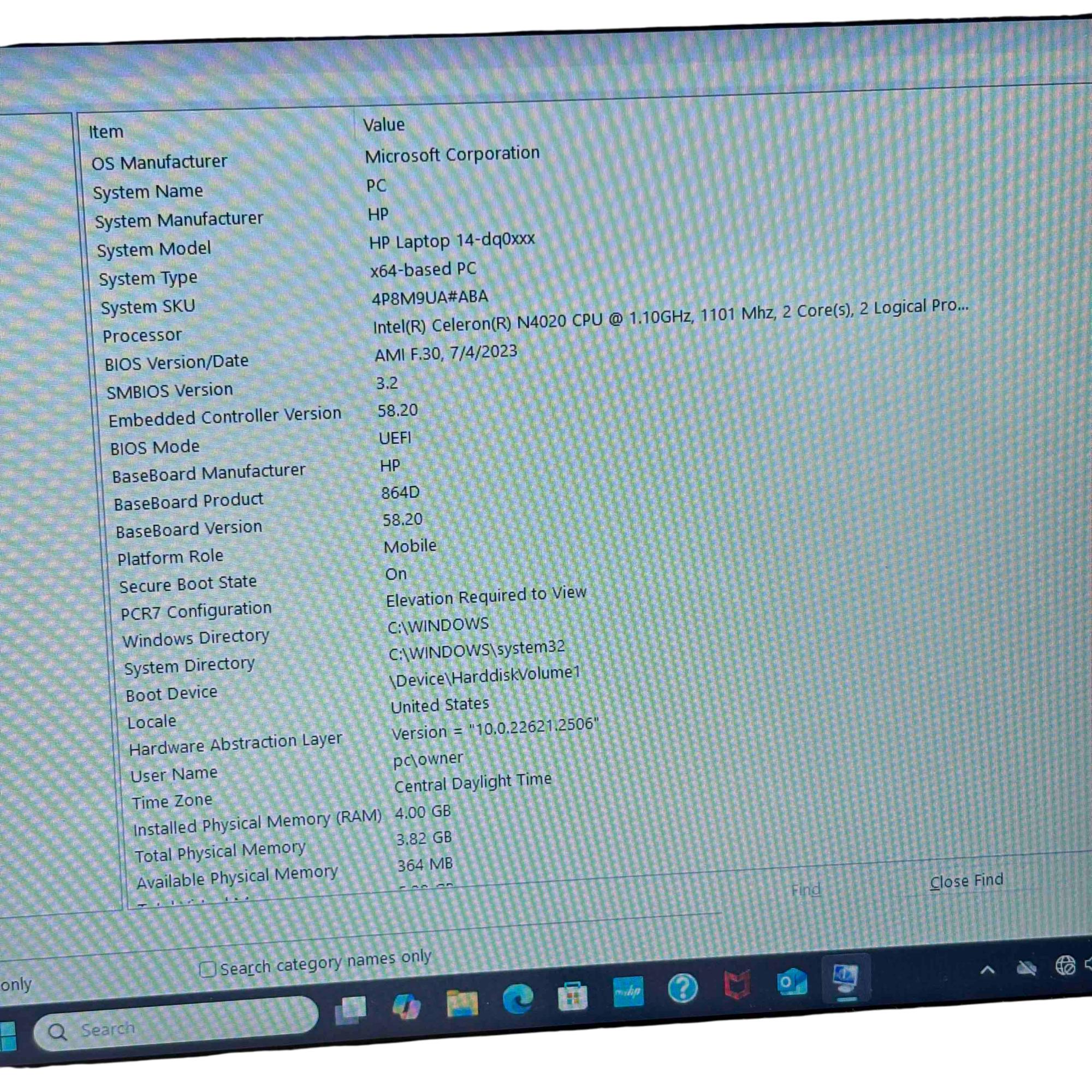 HP 14-dq0032dx 14 inch Windows Laptop. Features a 14 inch HD micro-edge anti-glare display with 1366x768 resolution. Powered by an Intel Celeron N4020 processor up to 2.8 GHz with 4GB DDR4 RAM and 64GB eMMC storage for everyday tasks. Runs Windows 11 Home in S mode for efficient performance. Includes Intel UHD Graphics 600 for clear visuals. Supports Wi-Fi 5 and Bluetooth 4.2 with USB-C USB-A HDMI and headphone ports.