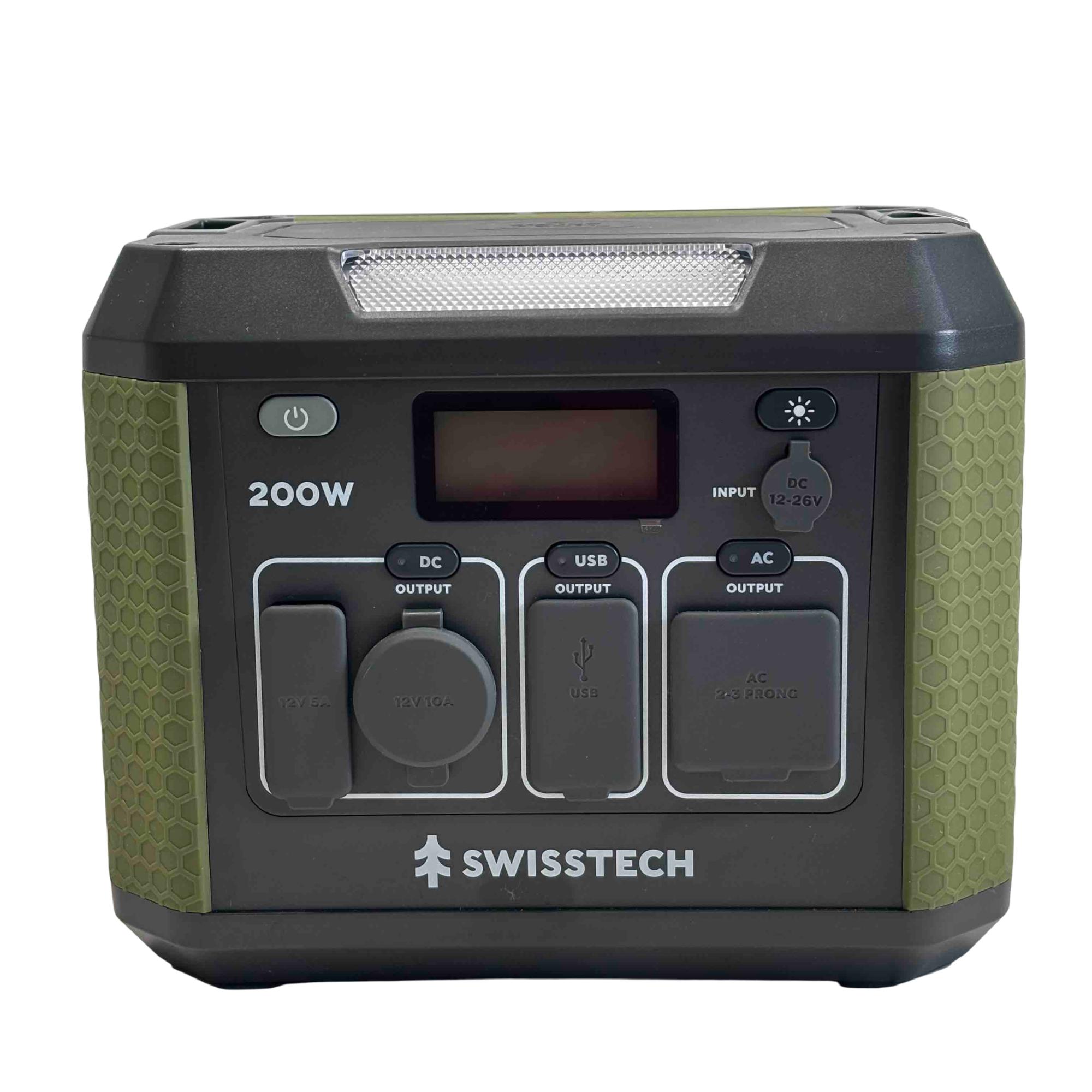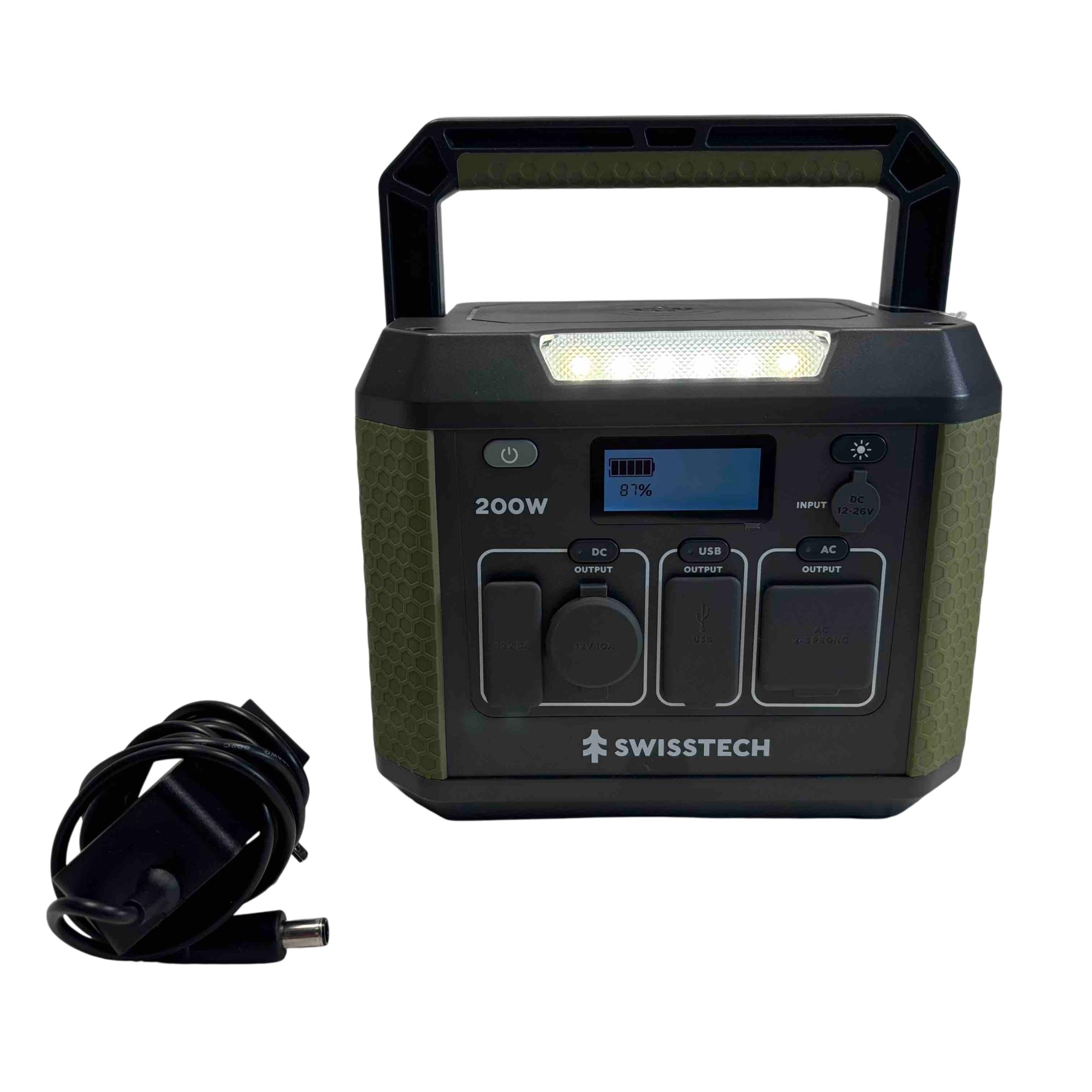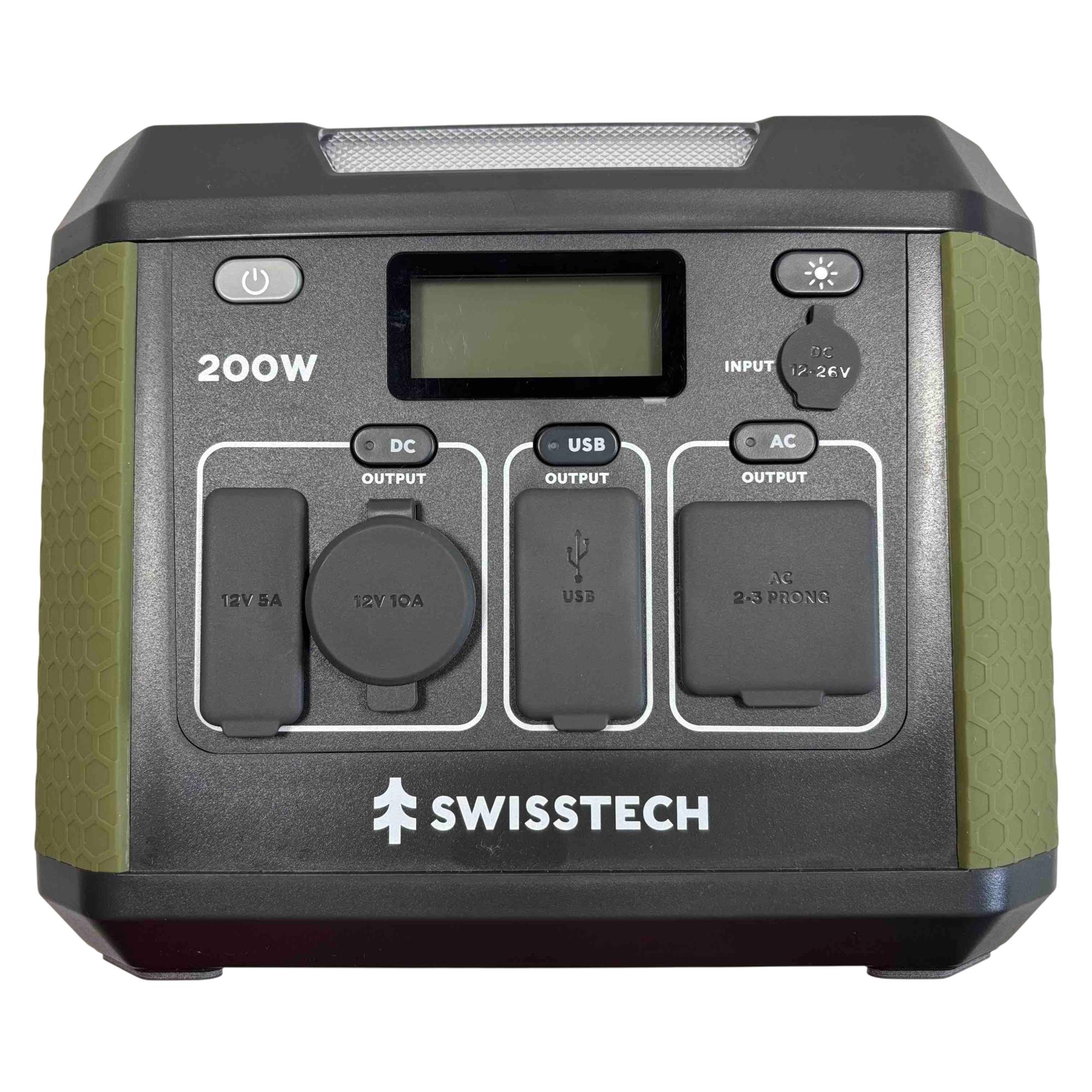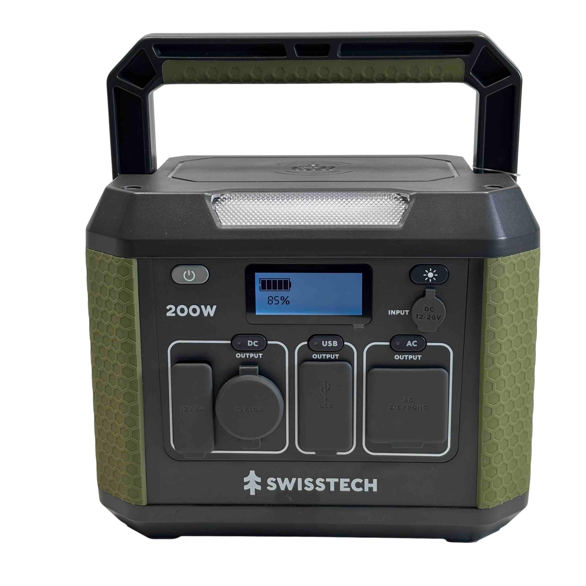 Stay powered anywhere with the SwissTech 200W Portable Power Station. Featuring multiple output options (DC, USB, and AC), an easy-carry handle, LED light, and compact rugged design, its perfect for camping, travel, or emergency backup. Enjoy reliable power on the go from a highly trusted brand.