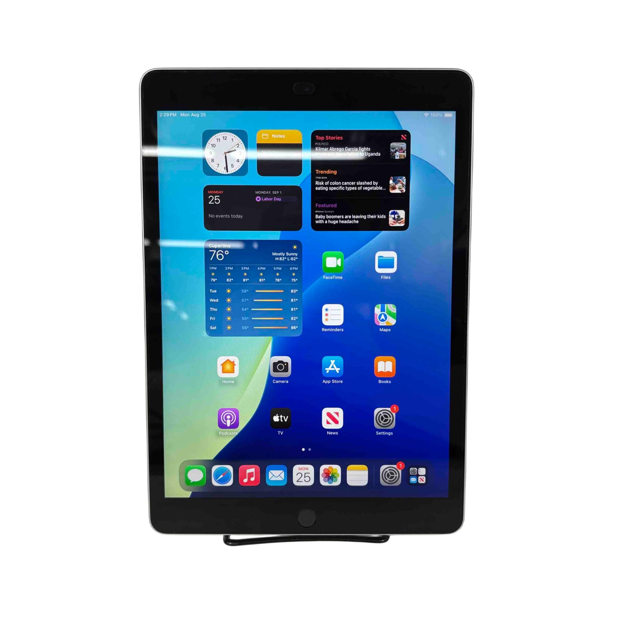 All iPad (9th Gen) tablets -- including this Wi-Fi-only model -- are housed in white and silver colored or black and medium toned "Space Gray" cases and feature a 10.2" 2160x1620 (264 ppi) LED-backlit IPS touch-sensitive "Retina" display with True Tone capability. Each has a "Touch ID" fingerprint sensor, supports the original Apple Pencil (A1603, MK0C2AM/A), and has a "Smart Connector" for use with an Apple Smart Keyboard, as well.
