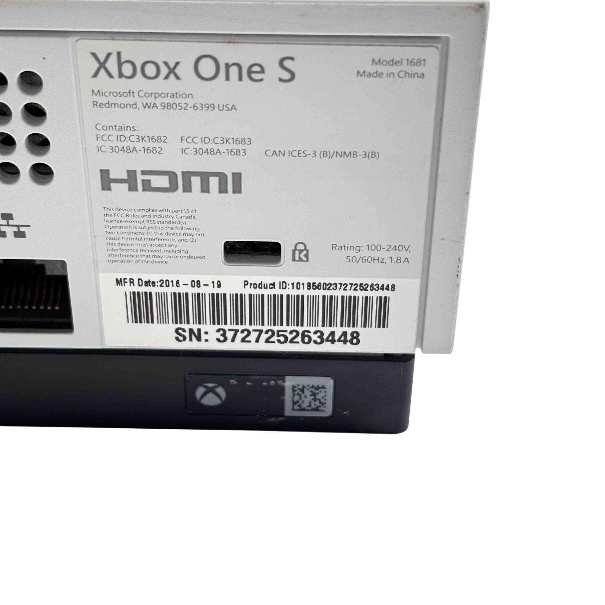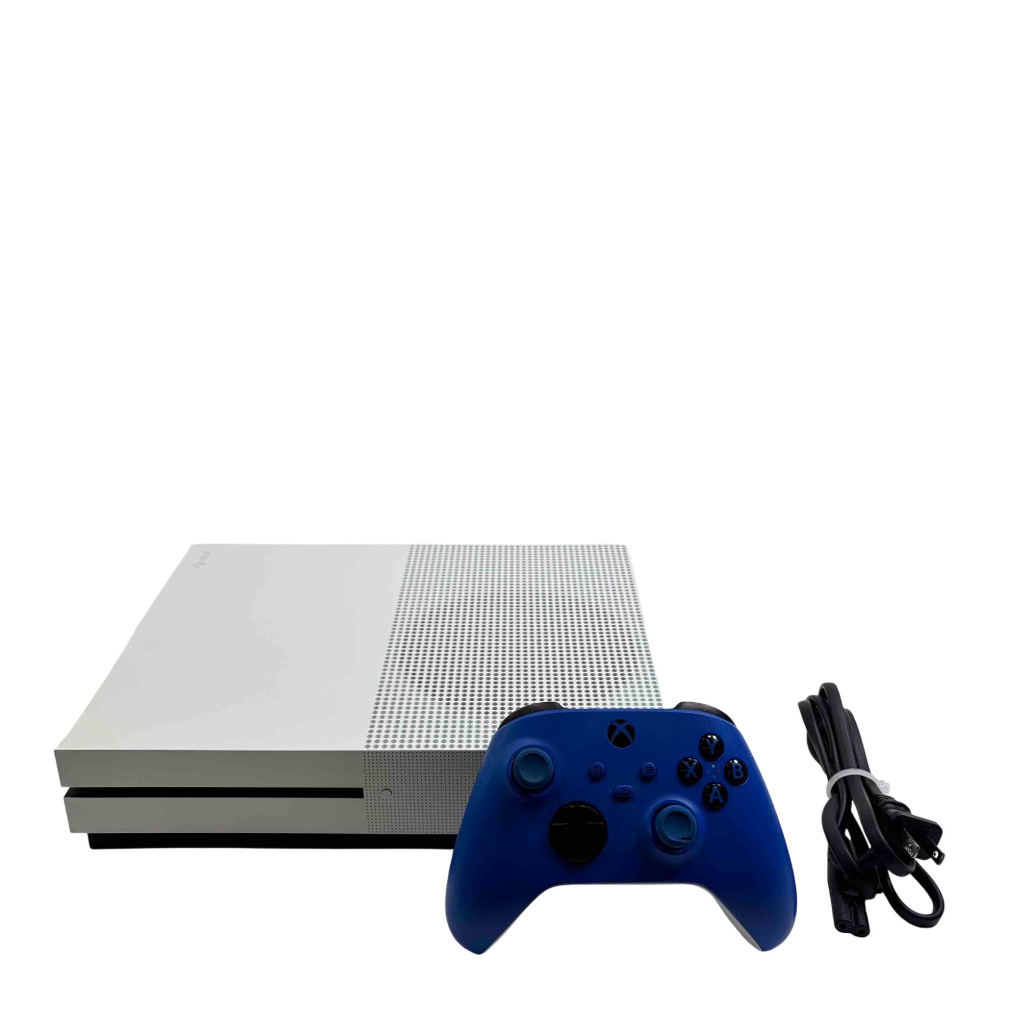 Experience immersive gaming with the Microsoft Xbox One S 1681, featuring a sleek white design and a high capacity 500GB hard drive. This bundle includes a vibrant blue wireless controller and a power cord, giving you everything you need to start playing your favorite titles right away. Perfect for gamers seeking reliable performance and modern style in a lightly used package.