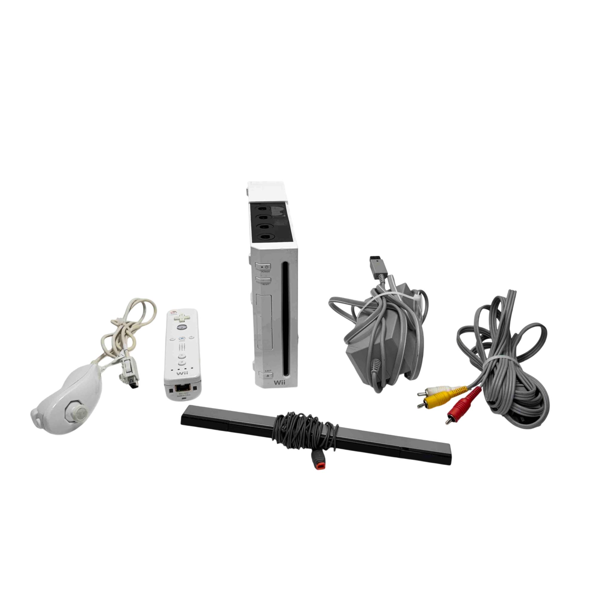 Experience family fun and interactive gaming with the Nintendo Wii Console (model RVL-001). This classic white bundle includes the Wii console, remote (Wiimote), Nunchuk, sensor bar, AV cables, and power supply—everything you need for an immersive gaming adventure. Perfect for parties or solo play, the Nintendo Wii’s intuitive controls and versatile game library make it a must-have for gamers of all ages.