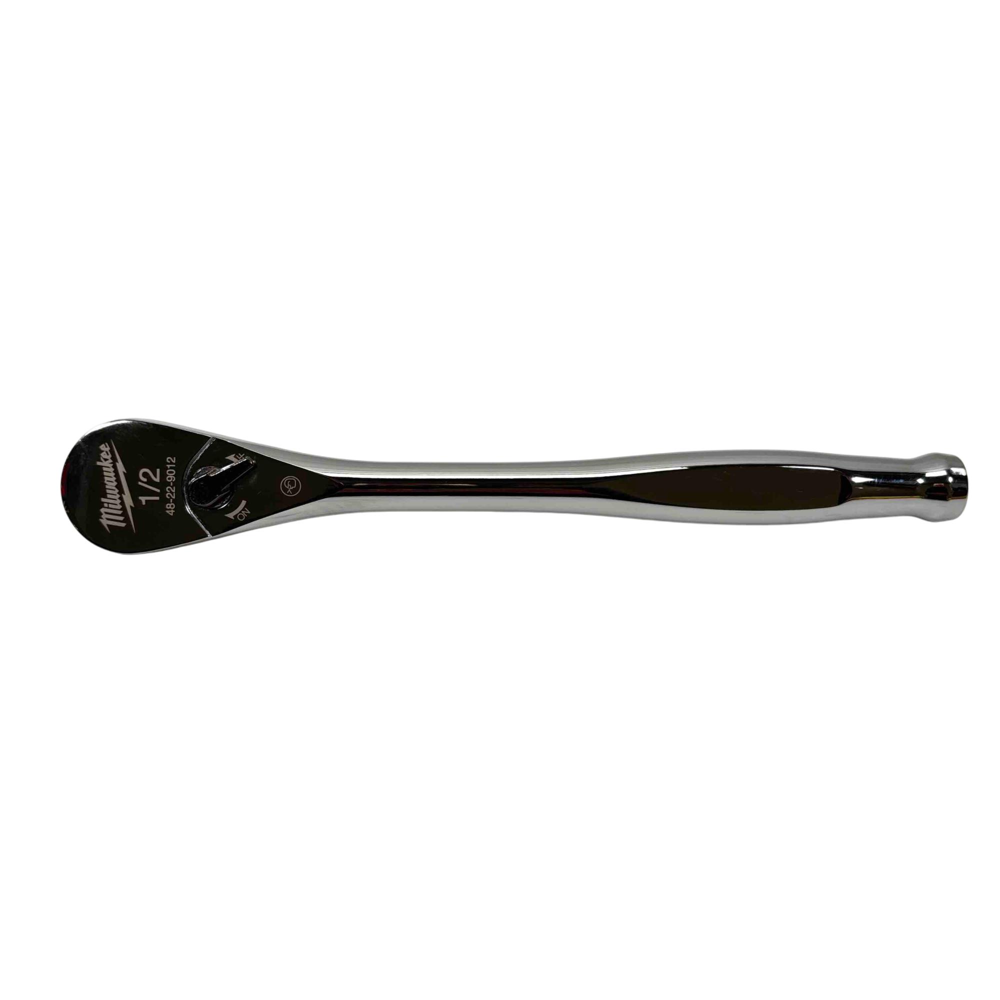 Experience superior performance with the Milwaukee 1/2-inch Drive Ratchet, model 48-22-9012. Designed with a durable chrome finish and engineered for heavy-duty use, this ratchet ensures reliability and a comfortable grip for demanding professional or DIY projects. Trusted for its robust construction and smooth ratcheting action, its a must-have tool for any mechanics collection.