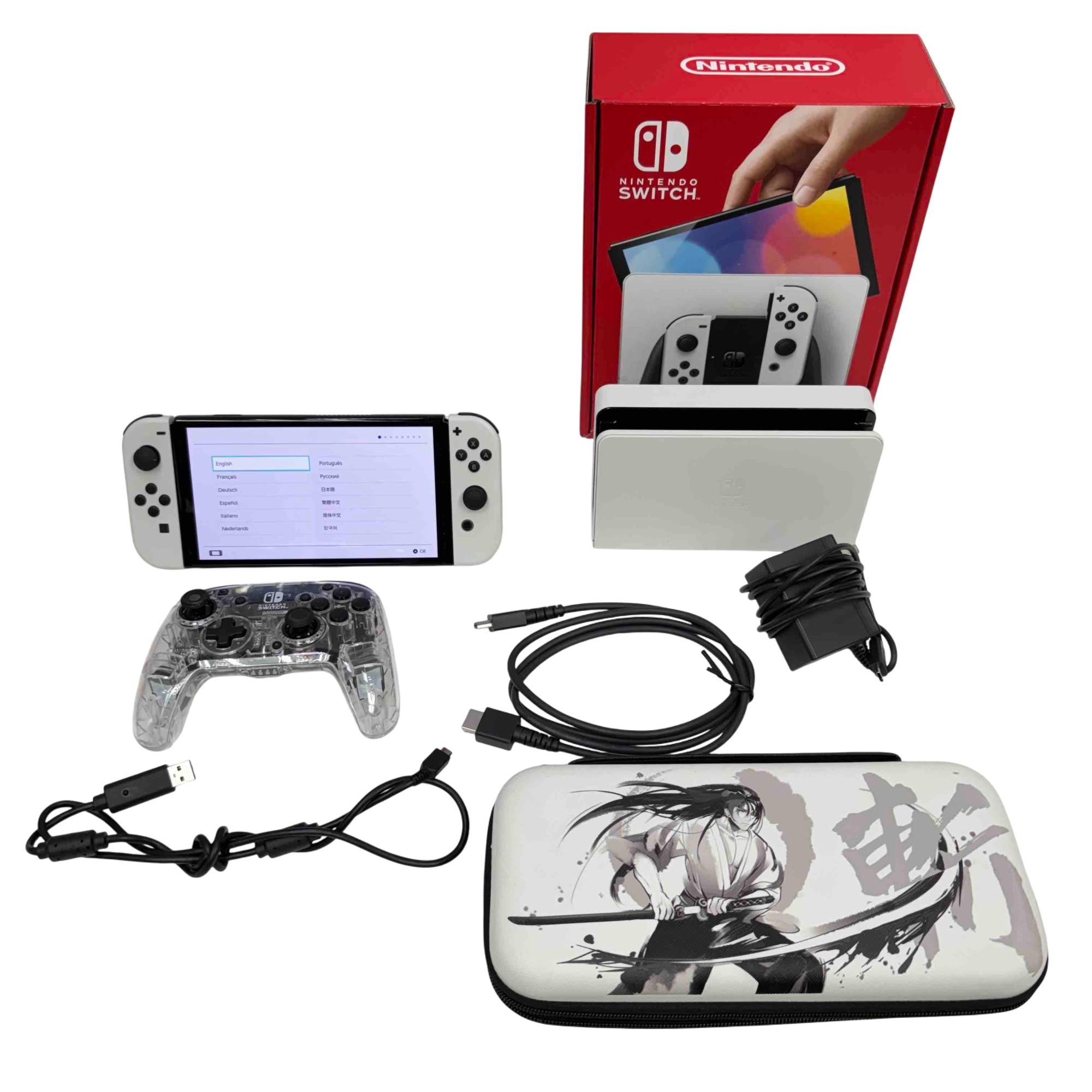 Experience gaming on the go or at home with the Nintendo Switch OLED Model, featuring a vibrant 7-inch OLED display and versatile play options. This lightly used console includes the stylish white Joy-Con controllers and is perfect for solo adventures or multiplayer fun. Enjoy immersive graphics, portability, and an ever-expanding library of must-play titles.