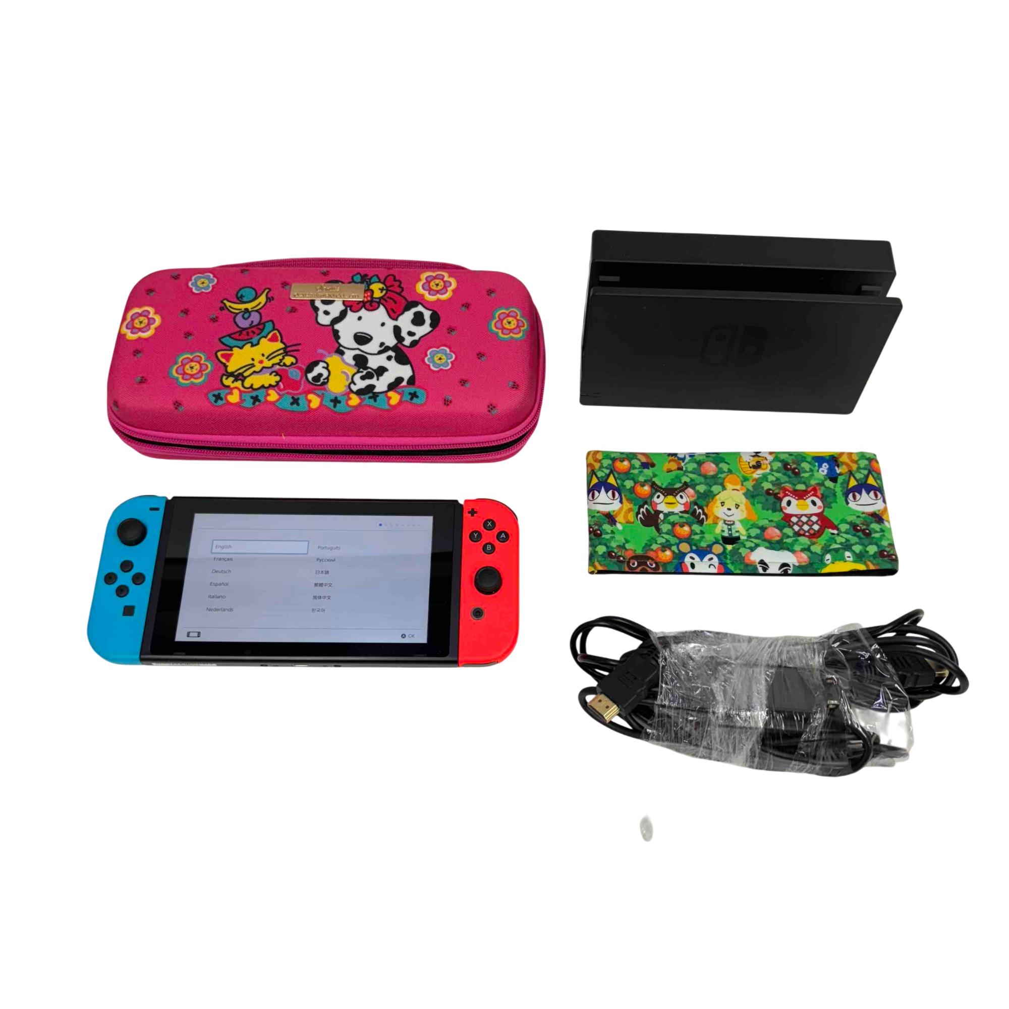 Experience versatile gaming with this Nintendo Switch console, bundled with vibrant Neon Blue and Neon Red Joy-Cons. This set includes a themed hard case and accessories featuring Animal Crossing characters, a Nintendo Switch dock, and all required cables—making it perfect for both at-home and on-the-go gaming. Lightly used and fully functional, this bundle is ideal for fans looking to jump right into their favorite games with extra flair.