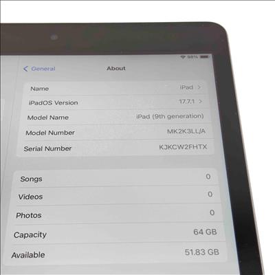 Model: iPad 9th Gen A2602 MK2K3LL/A