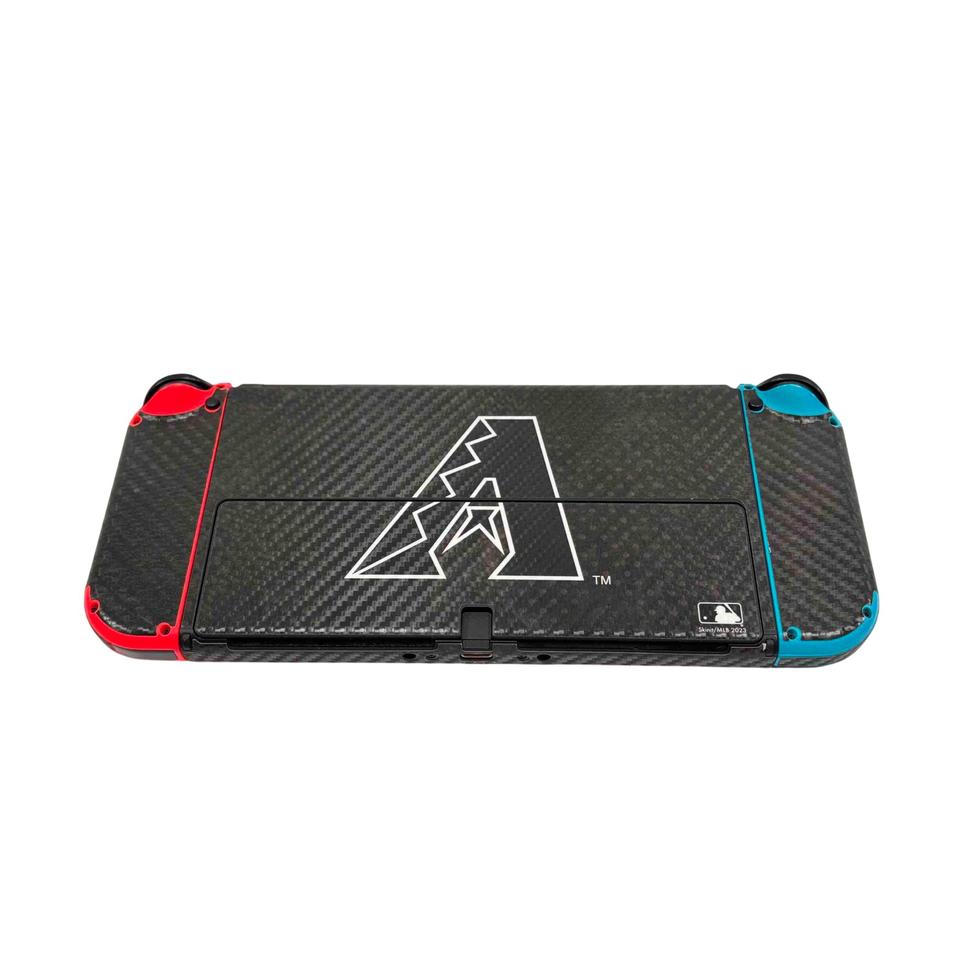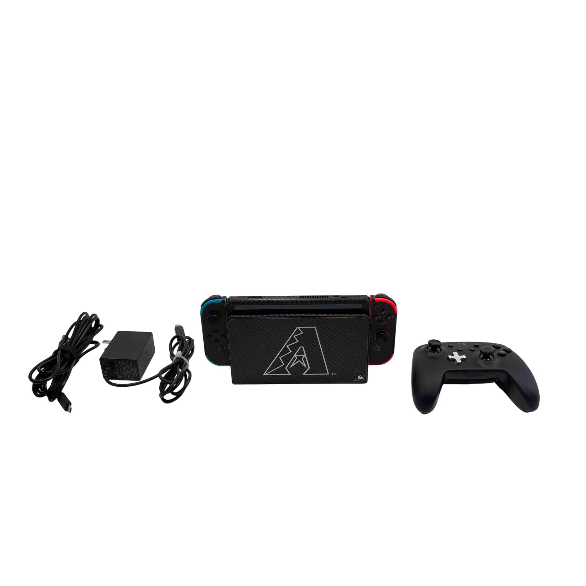 Upgrade your gaming setup with the Nintendo Switch OLED HEG-001, featuring vibrant OLED display and a custom Arizona Diamondbacks Skinit MLB dock skin for the ultimate fan touch. This lightly used bundle includes the Switch console, red and blue Joy-Con controllers, official Pro Controller, and all necessary power cords. Perfect for both casual and dedicated gamers who want style and performance in one complete package.