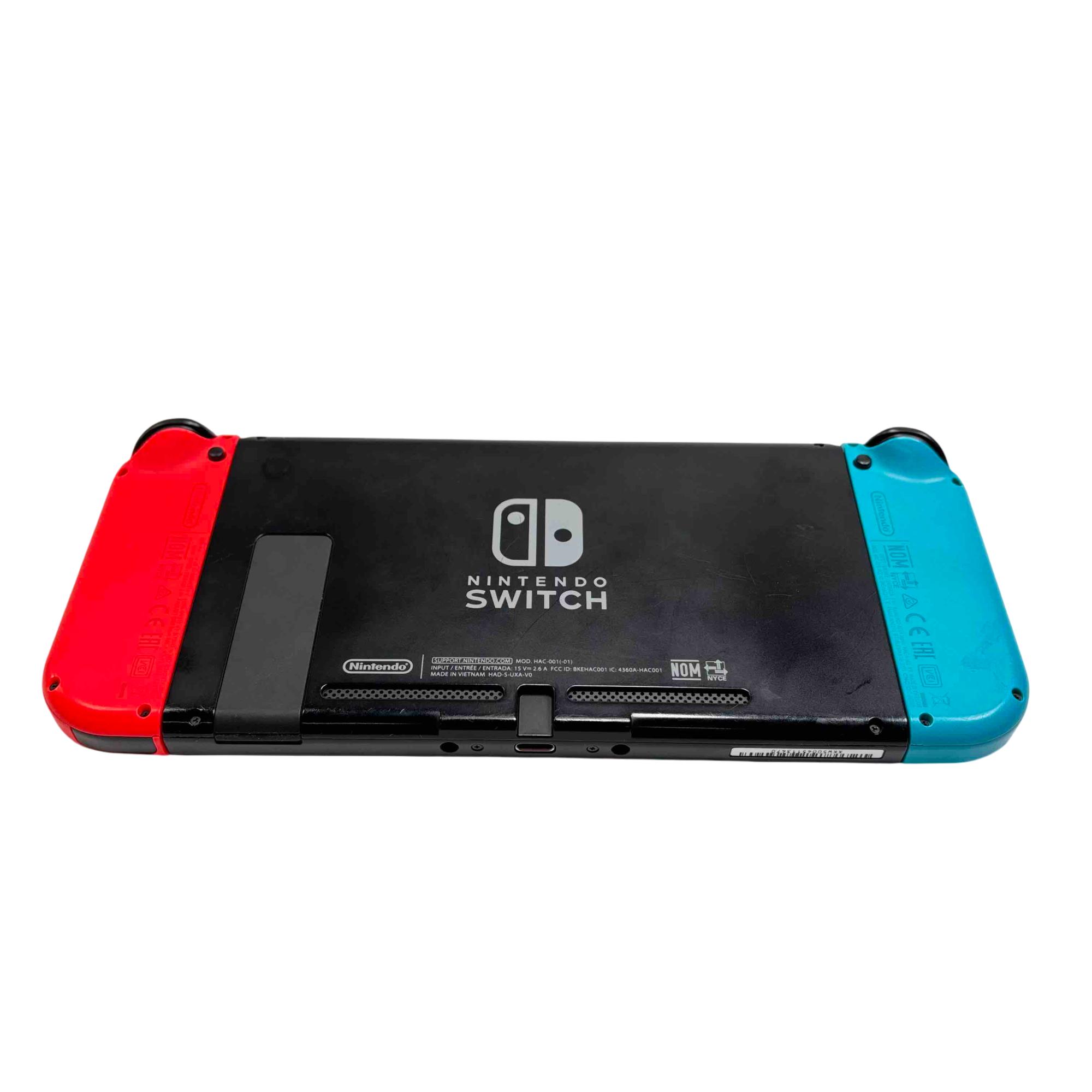 Experience versatile gaming at home or on the go with the Nintendo Switch HAC-001(-01). This set includes the iconic hybrid console with neon red and blue Joy-Con controllers, a docking station for TV play, charging adapter, and handy Joy-Con straps for enhanced grip and control. Enjoy an expansive library of games on a system celebrated for its portability and fun multiplayer experiences.