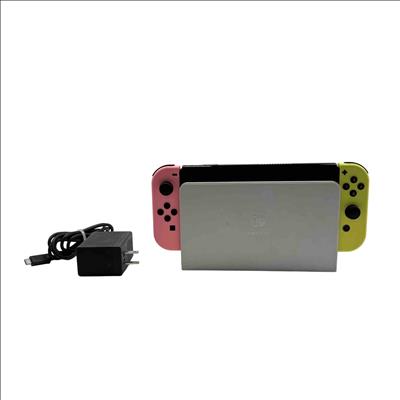 Experience gaming on the go or at home with the Nintendo Switch OLED HEG-001, featuring a vivid 7-inch OLED screen and versatile gameplay options. This set comes complete with eye-catching pink and yellow Joy-Con controllers, a sleek dock, and an official power adapter, giving you everything you need for immersive, high-quality entertainment. Perfect for both solo adventures and multiplayer gaming.