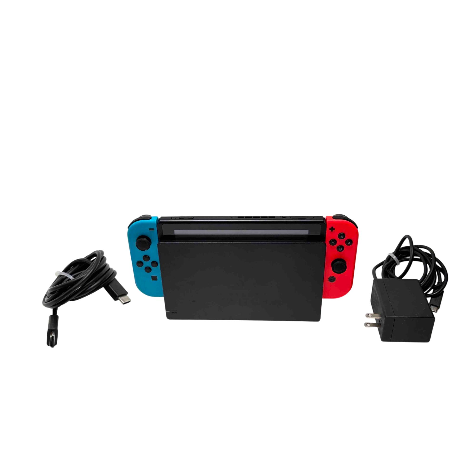 Experience gaming versatility with the Nintendo Switch Console (Model HAC-001-01), featuring vibrant Neon Red and Neon Blue Joy-Con controllers. This set includes the Switch console, dock, Joy-Cons, USB-C charging cable, and AC power adapter, giving you everything you need for gaming at home or on the go. Enjoy an extensive library of exclusive Nintendo titles and multiplayer fun in TV, tabletop, or handheld mode.