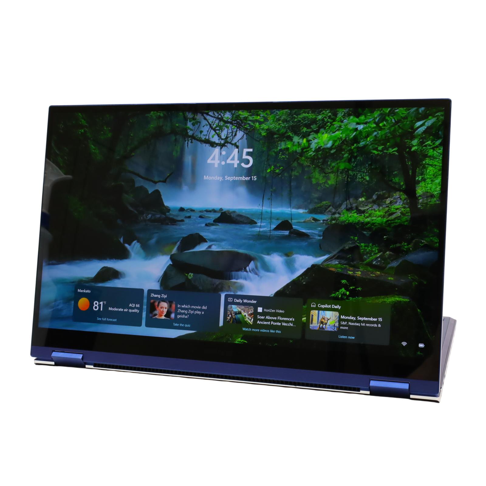 A 15.6-inch 2-in-1 laptop featuring a Full HD QLED touchscreen with a 360° hinge for use in multiple modes. It runs on a 10th Gen Intel Core i7-1065G7 quad-core processor with 12GB of LPDDR4X RAM and a 512GB PCIe SSD for fast performance and storage. Graphics are handled by integrated Intel Iris Plus, and the system includes built-in AKG stereo speakers, an HD webcam with dual microphones, a backlit keyboard, and a fingerprint reader. Connectivity options include two Thunderbolt 3 ports, a headphone/microphone combo jack, Wi-Fi 6, Bluetooth, and a microSD/UFS card reader.