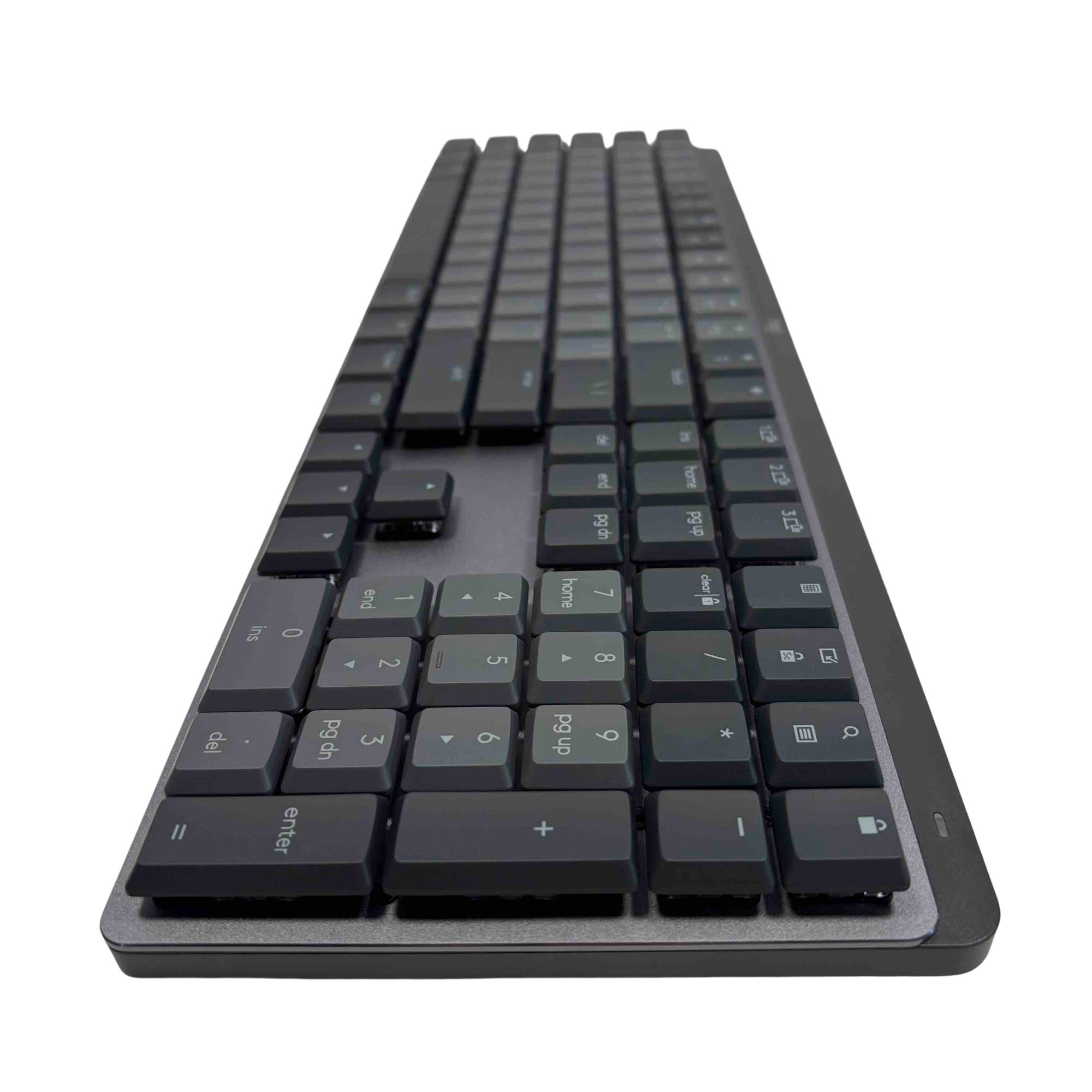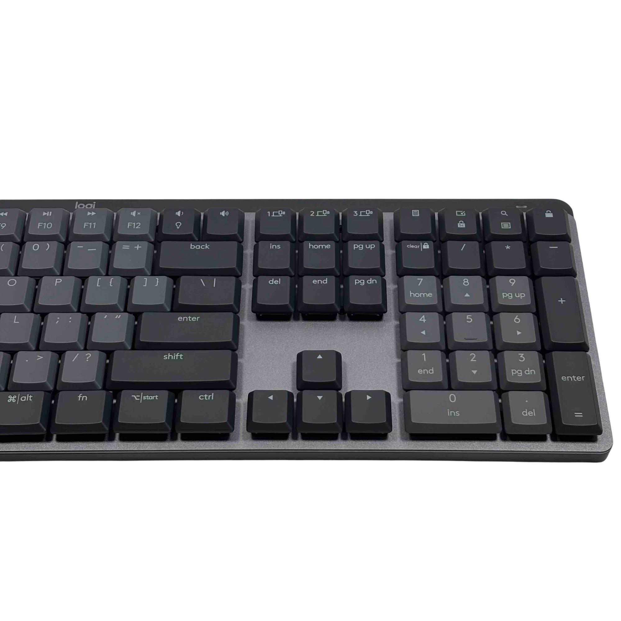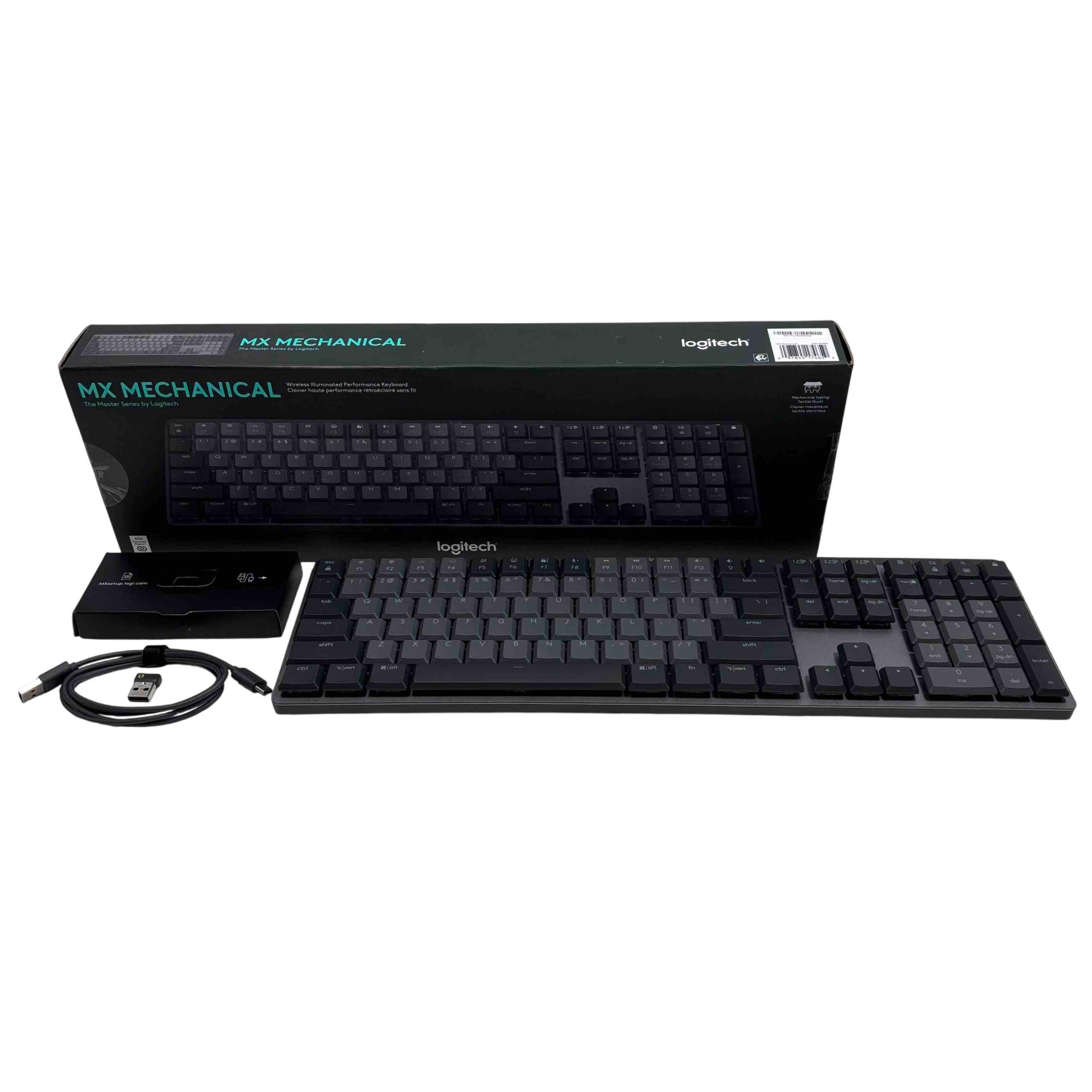 Experience ultimate typing comfort and precision with the Logitech 920-010547 MX Mechanical Wireless Illuminated Performance Keyboard. Designed for productivity, it features quiet tactile switches, smart backlighting, and robust Bluetooth or USB receiver connectivity. Elevate your workspace with this premium, full-size mechanical keyboard, optimized for both performance and quiet operation.