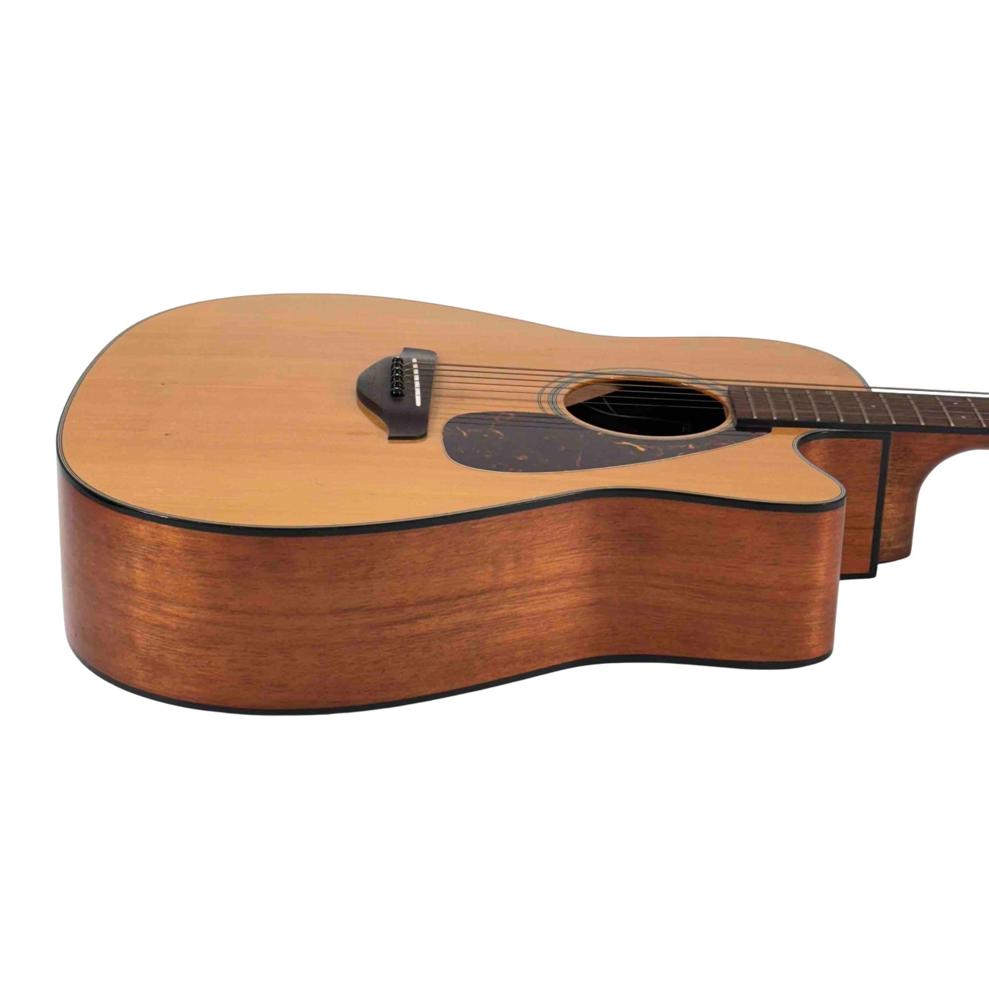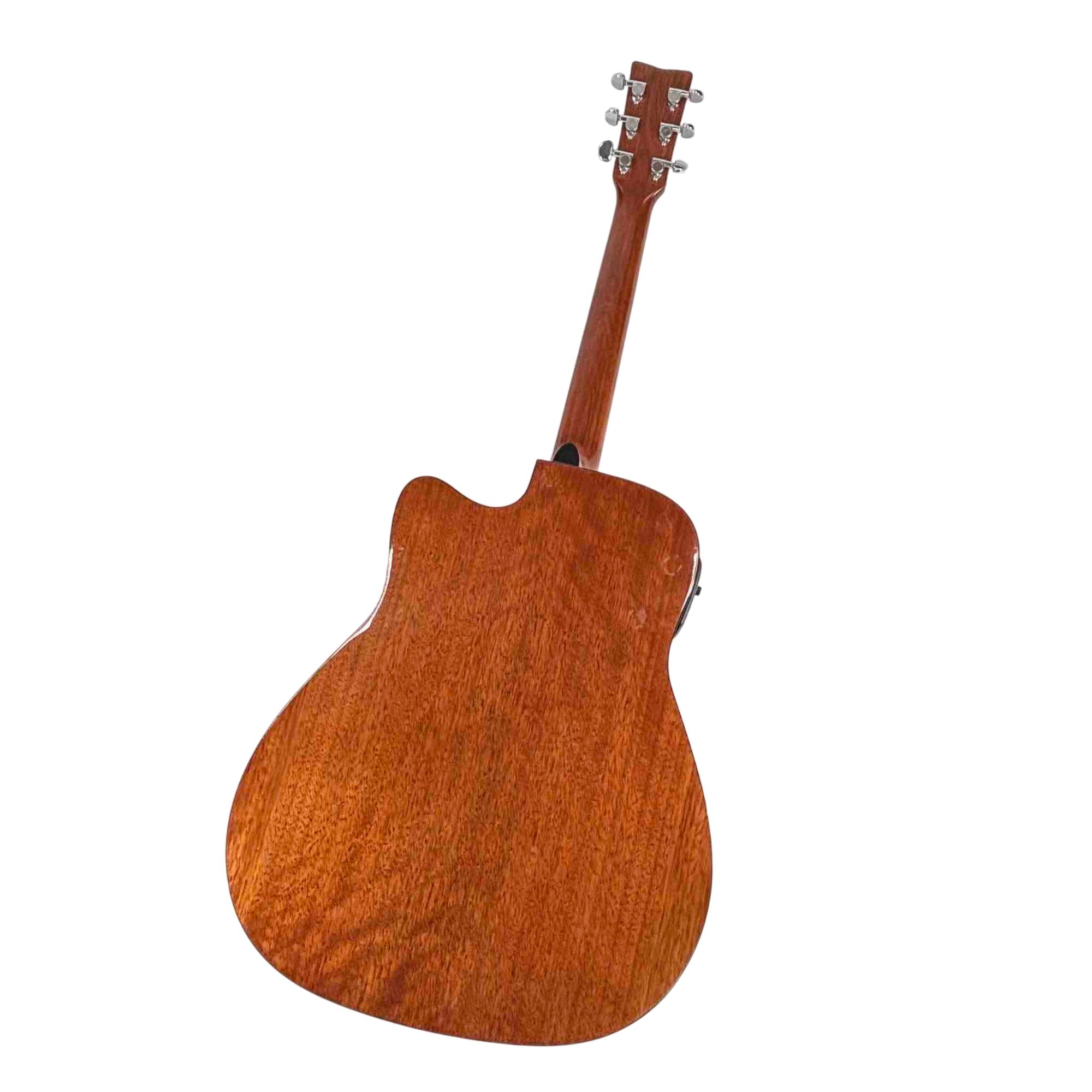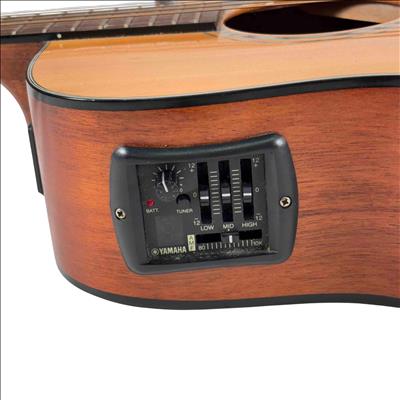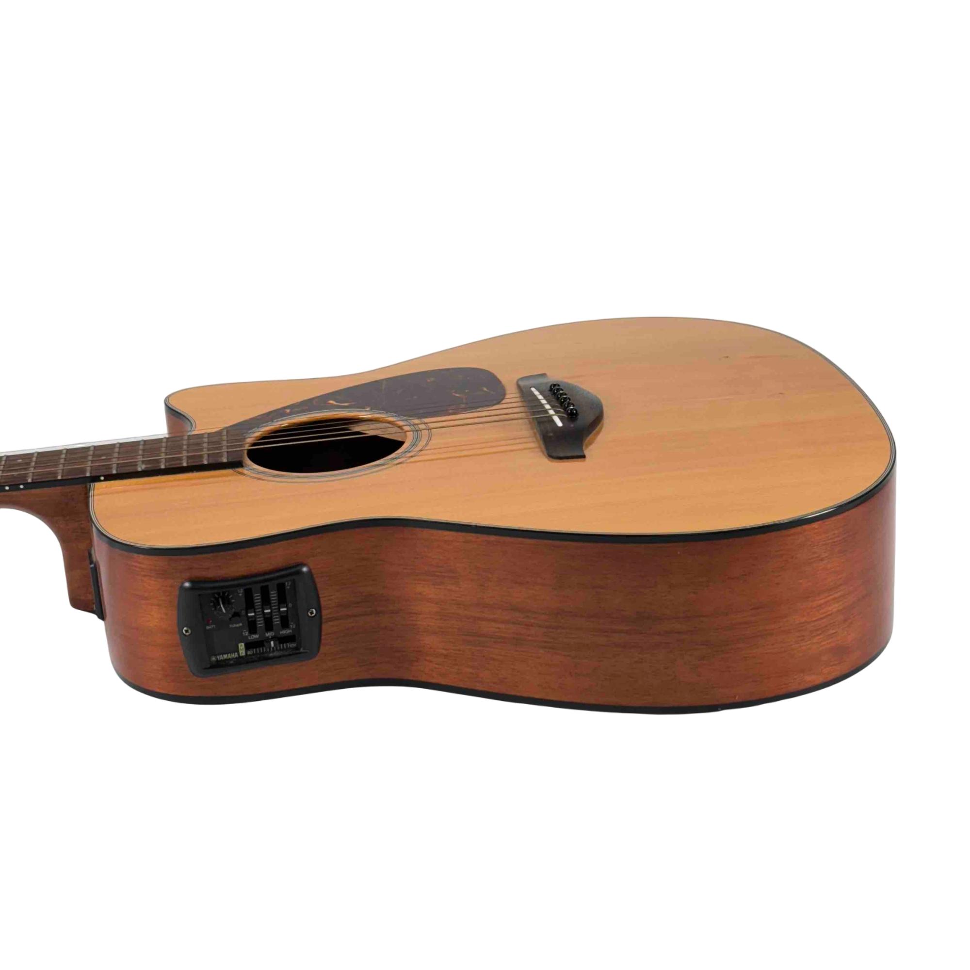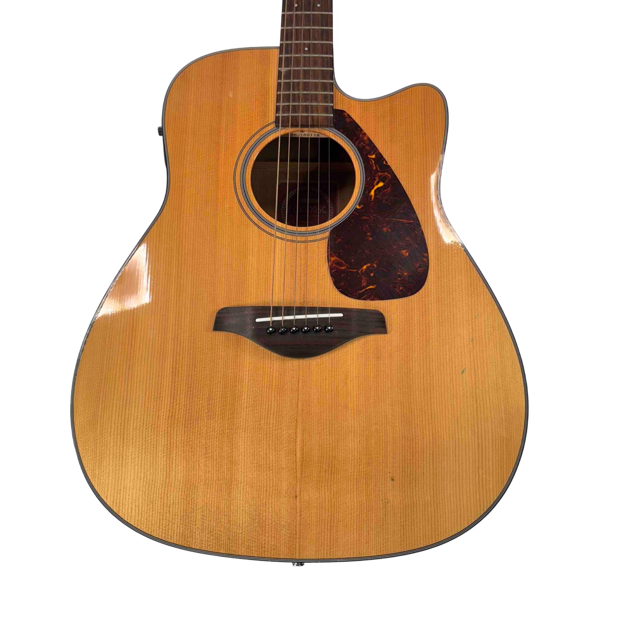 The Yamaha FGX700SC is a right-handed dreadnought cutaway acoustic electric guitar with a solid Sitka spruce top and nato mahogany back, sides, and neck. It features a rosewood fingerboard and bridge, dovetail neck joint, and a low-profile C-shaped neck with 20 frets and a 1-11/16" nut width. With a 25-9/16" scale length, die-cast chrome tuners, and chrome hardware, it delivers reliable performance and tuning stability. The System55T pickup and preamp with tuner, 3-band EQ, and adjustable mid frequency provide versatile amplified sound. Finished in a natural high-gloss style, this guitar combines classic looks with modern functionality.