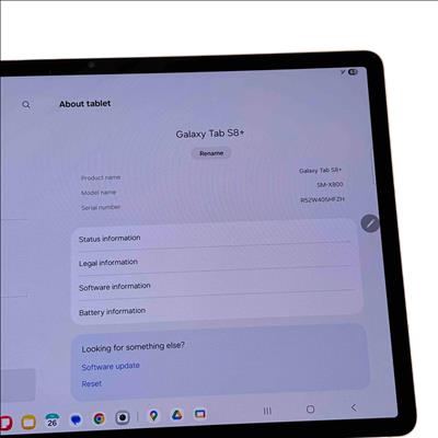 The Samsung Galaxy Tab S8+ SM-X800 features a 12.4-inch Super AMOLED touchscreen with 120Hz refresh rate and HDR10+ for stunning visuals. Powered by the Snapdragon 8 Gen 1 processor with 8GB of RAM and 128GB of storage, it delivers smooth performance on Android 12 with One UI 4.1. It includes a 13MP + 6MP dual rear camera setup, a 12MP front camera, Bluetooth 5.2, USB-C 3.2, and Wi-Fi connectivity in a sleek, SIM-free design.