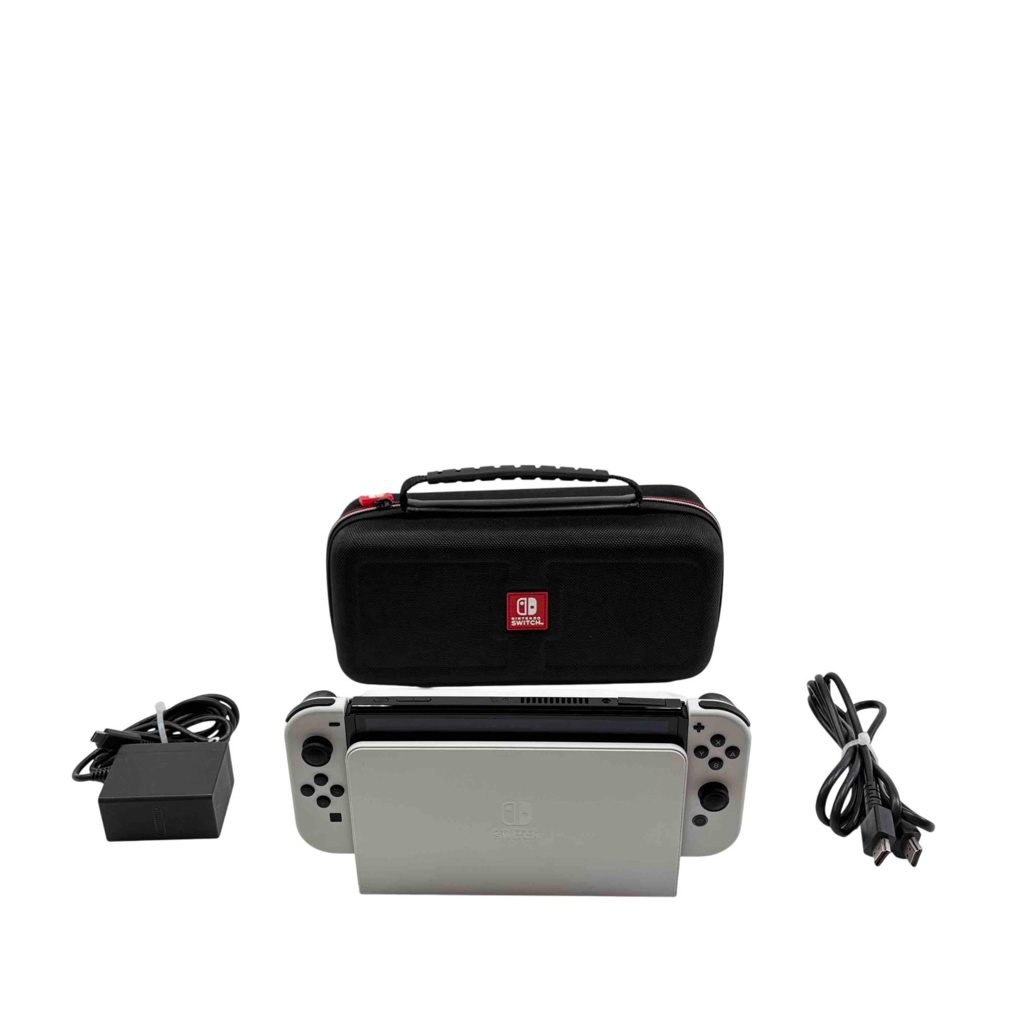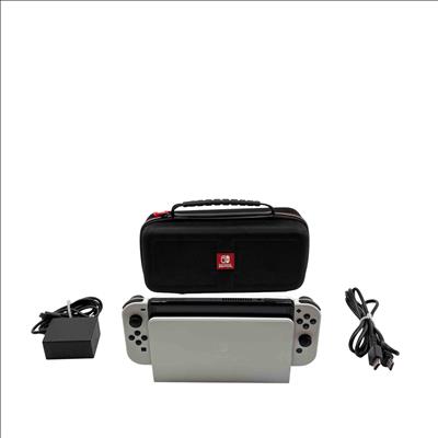 Experience premium gaming on the go or at home with the Nintendo Switch OLED Model HEG-001, featuring vibrant visuals on its 7-inch OLED display. This bundle includes the switch console with white Joy-Con controllers, a secure dock for TV play, charging accessories, HDMI cable, and a sturdy protective carrying case, ensuring you have everything you need to play and travel with ease. Unlock hours of entertainment with a sleek, modern design and unbeatable portability.