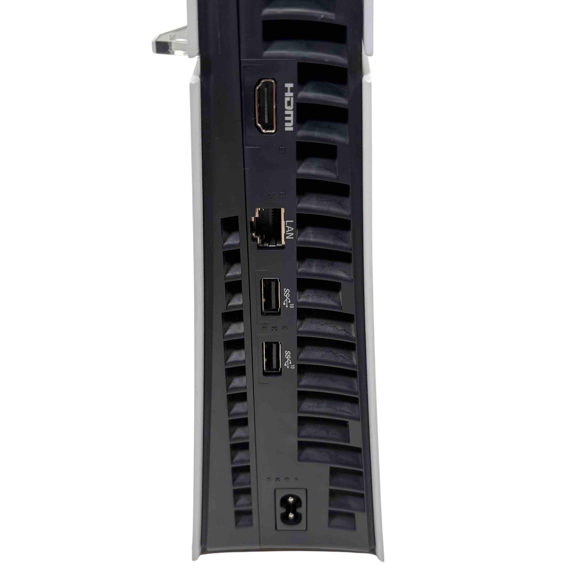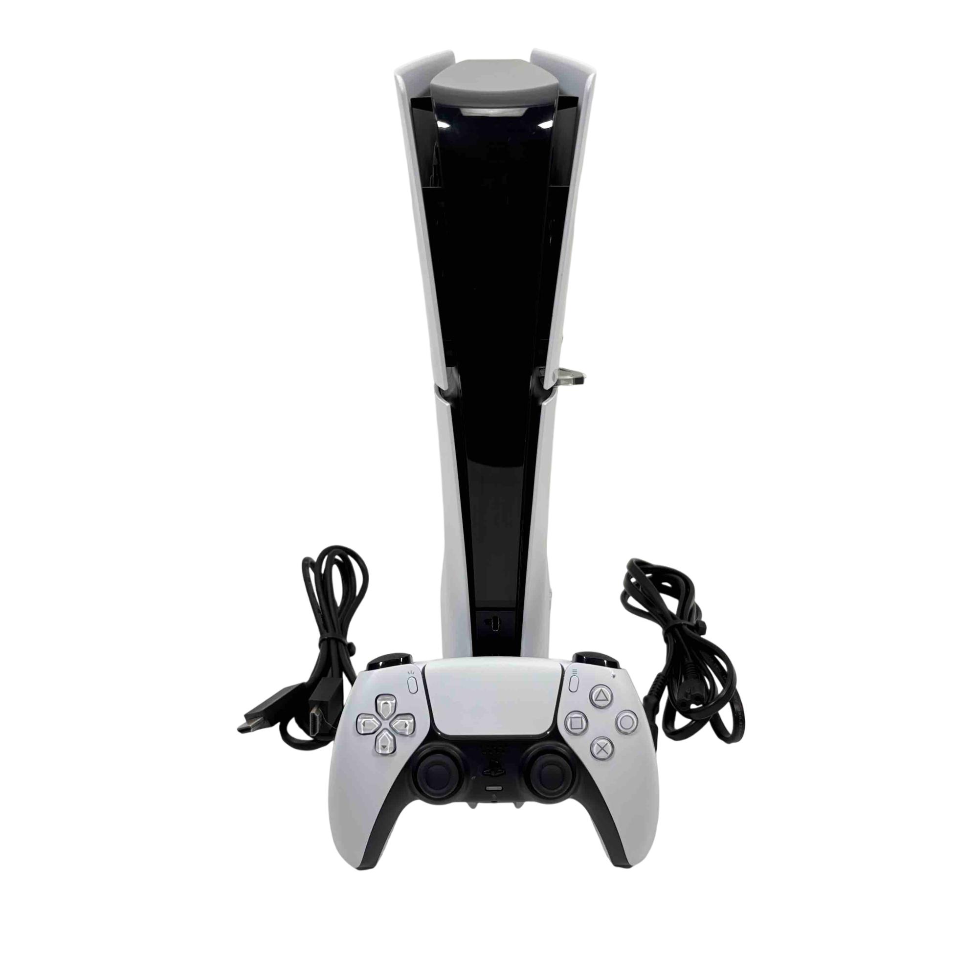 This Sony PlayStation 5 Slim is previously owned and in very good condition. Light wear from use, light scratches and stains on the casing. This game console has been tested and works well.