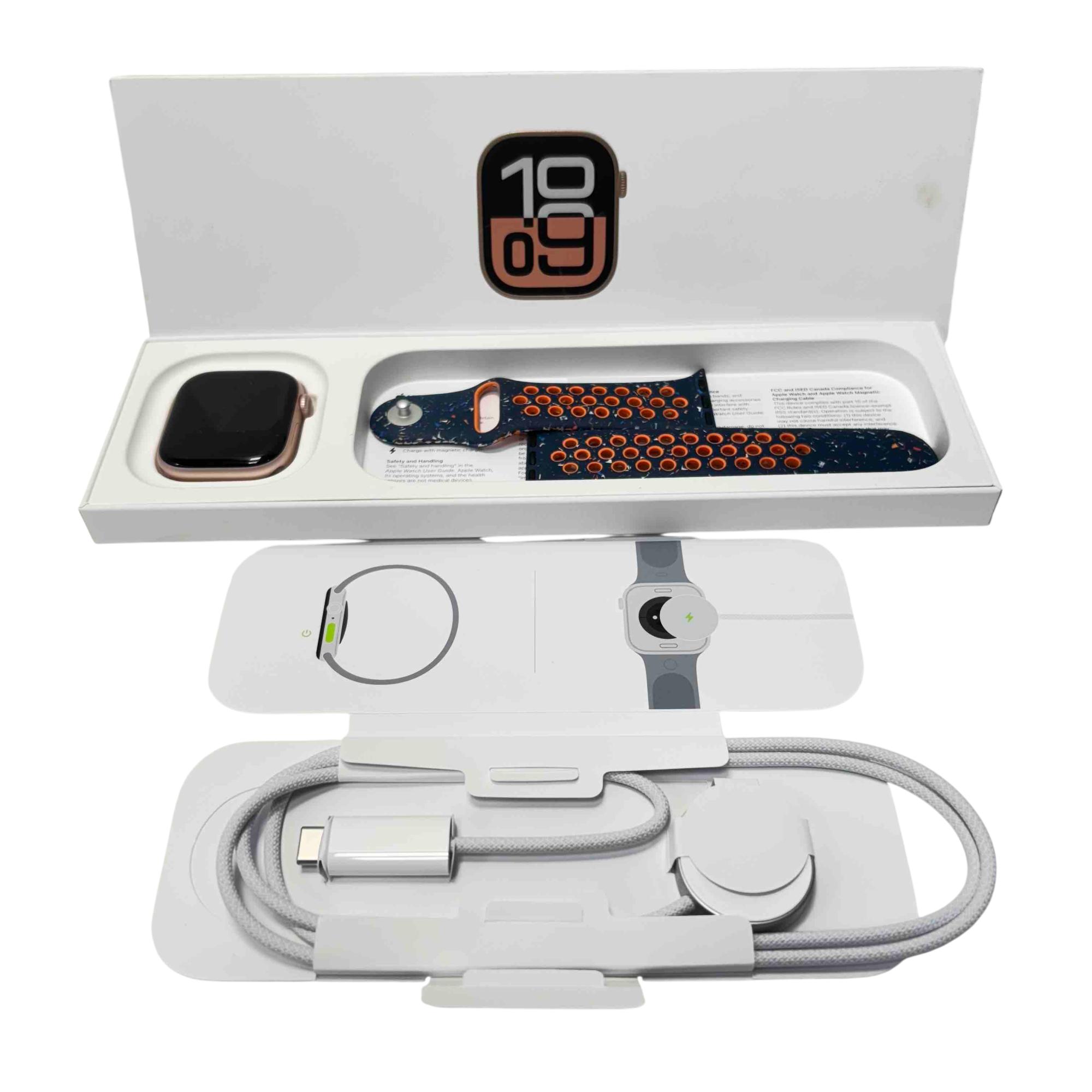 Experience cutting-edge technology and stylish design with the Apple Watch Series 10. This model features GPS + Cellular connectivity, a durable 42mm gold aluminum case, and a unique Blue Flame Nike Sport Band that offers both comfort and flair. Perfect for fitness enthusiasts and tech-savvy users alike, this smartwatch keeps you connected, healthy, and on the move.
