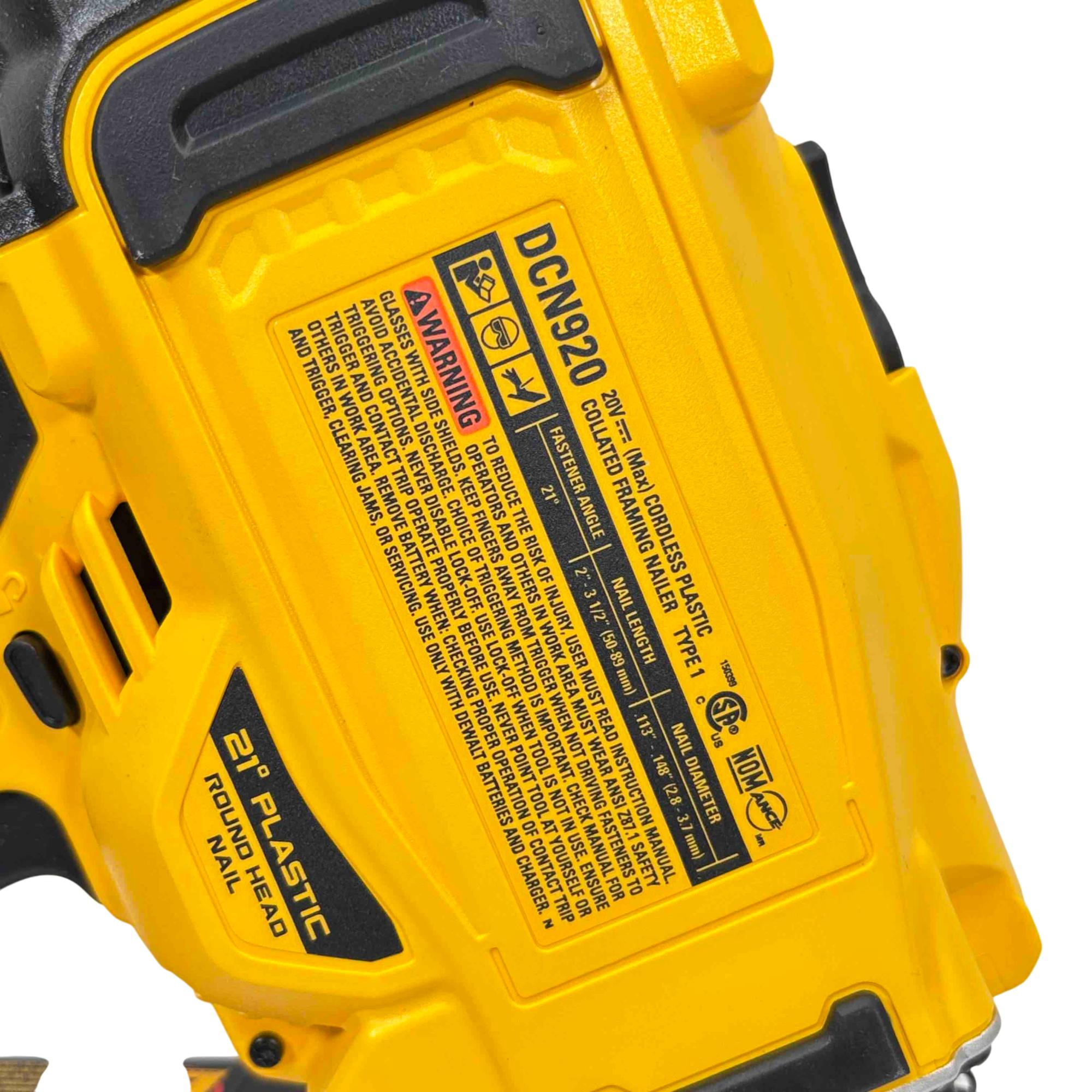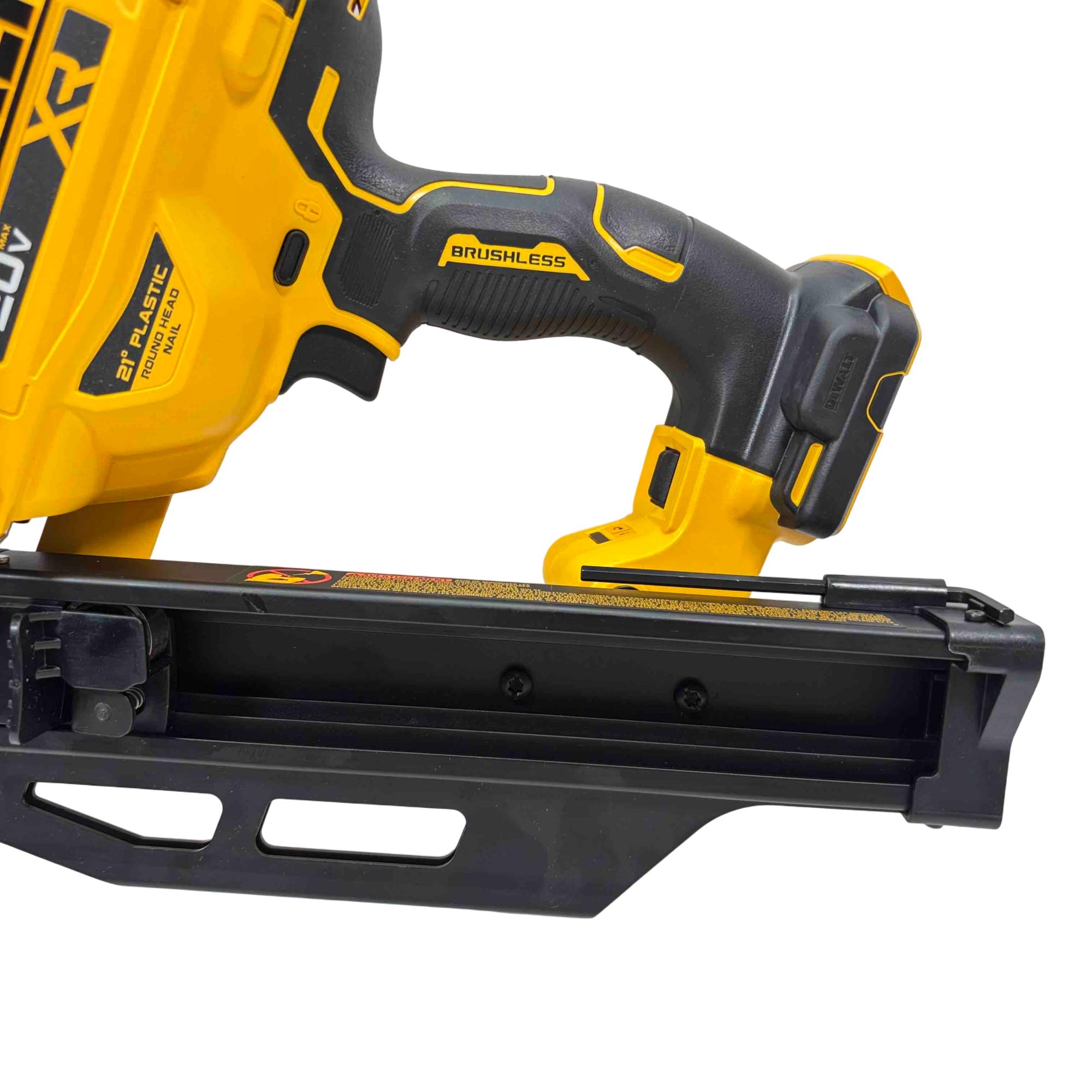 Experience unmatched power and precision with the DEWALT DCN920 20V MAX XR Brushless 21-Degree Cordless Framing Nailer. Designed to handle tough jobs, this professional-grade tool runs on DeWalts reliable 20V battery system and features a brushless motor for longer runtime, increased efficiency, and less maintenance. Perfect for framing, it accepts 21-degree plastic collated nails and is built for durability, helping you work faster and smarter on any site.