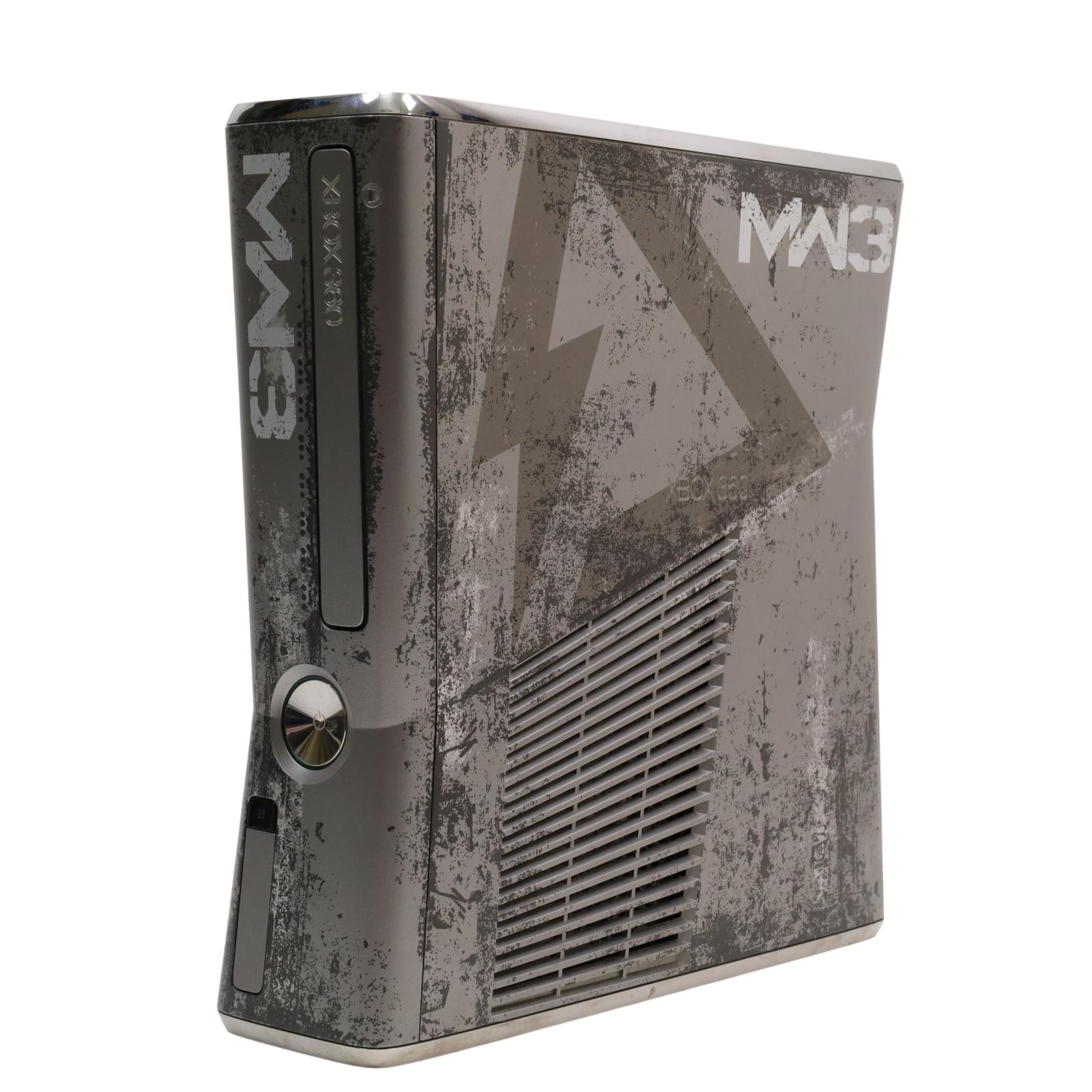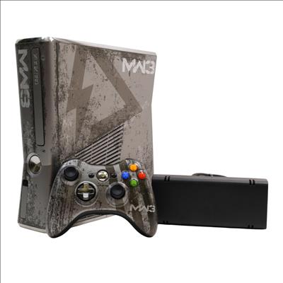 A specialized version of the popular gaming console, featuring a unique design inspired by the "Call of Duty: Modern Warfare 3" game. This model comes equipped with a substantial 320GB hard drive, providing ample storage for games, downloadable content, and media. At its core, the console is powered by a 3.2 GHz Triple Core IBM PowerPC processor, ensuring smooth gameplay and efficient handling of complex gaming environments. The Xbox 360 S also boasts enhanced connectivity options and a sleek design, making it a desirable choice for gaming enthusiasts seeking a blend of performance and style.