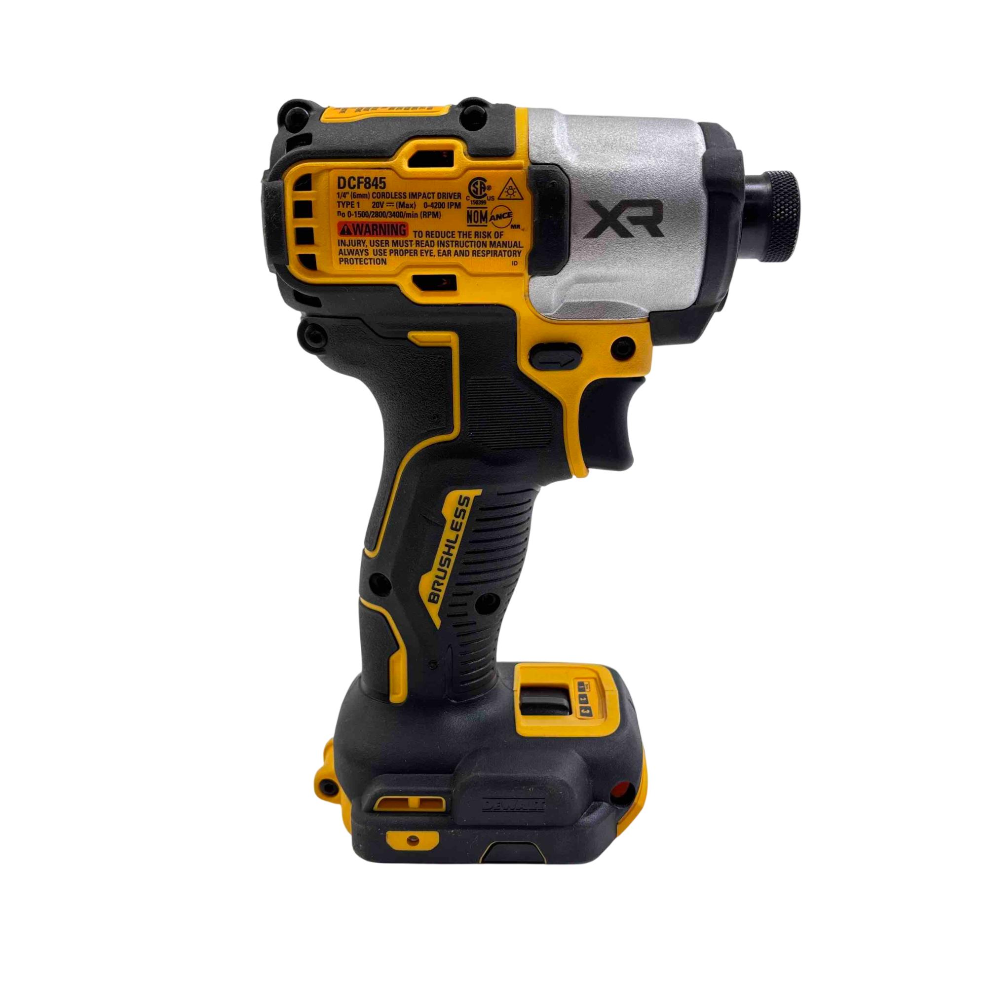 Take on demanding fastening jobs with the DeWalt DCF845 20V MAX XR Brushless Impact Driver. Featuring a powerful brushless motor, three speed settings, and a compact, ergonomic design, this tool is a must-have for both professionals and avid DIYers. Battery and charger sold separately perfect for those already invested in the DeWalt 20V ecosystem.