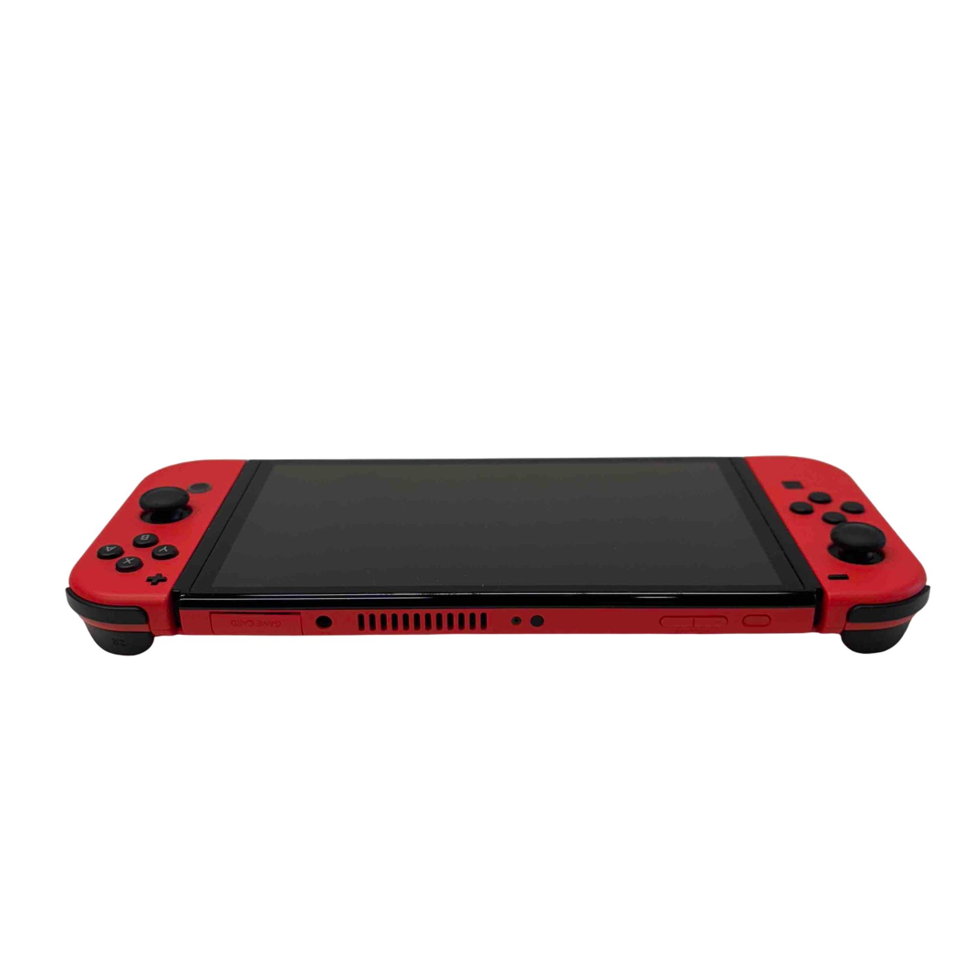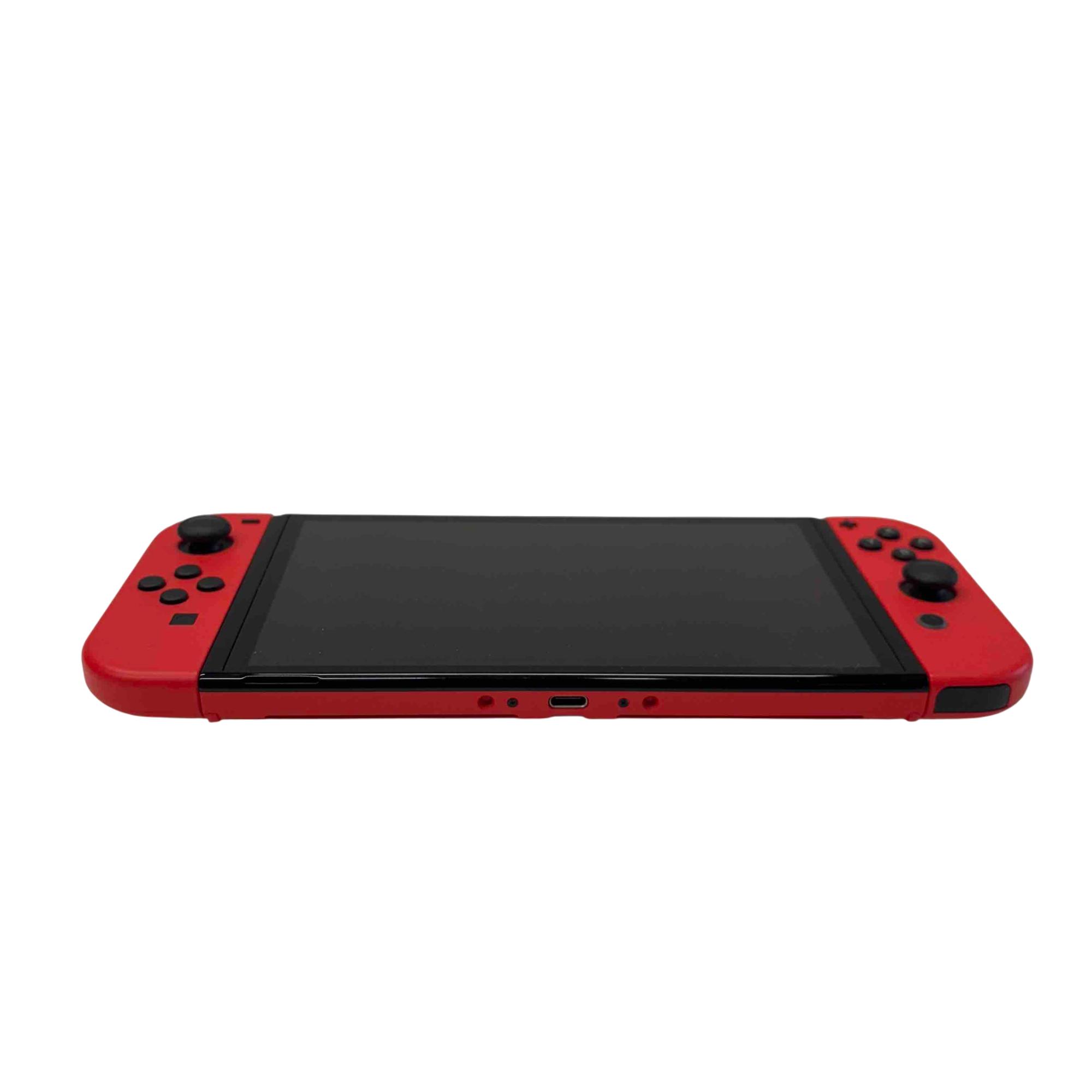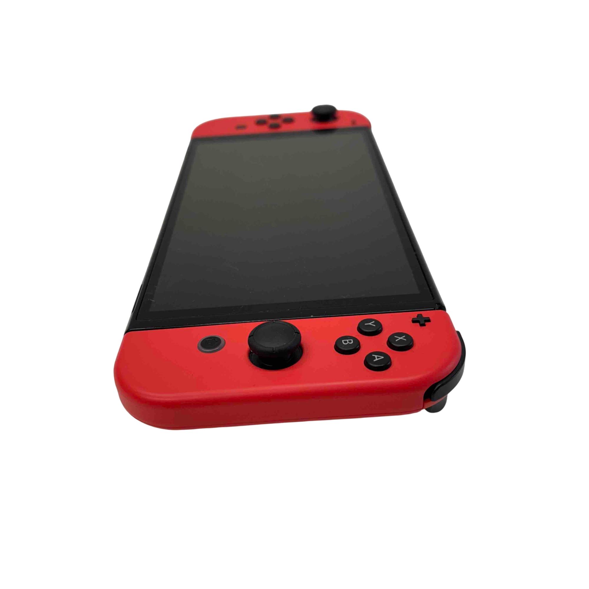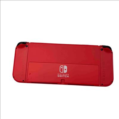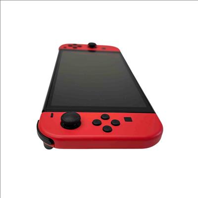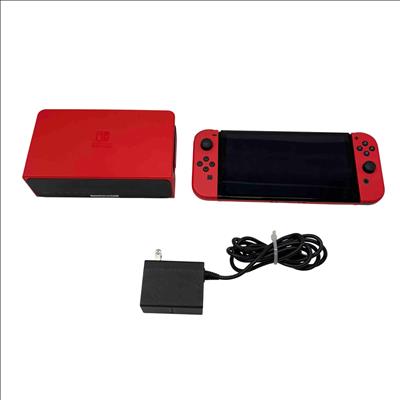 Nintendo Switch OLED Model - Mario Red Edition (HEG-001) with Dock and Charger features a vibrant 7-inch OLED screen for stunning visuals and enhanced gameplay. This limited edition console includes red Joy-Con controllers and a matching dock, delivering a premium gaming experience with 64GB built-in storage and versatile handheld or docked play options.