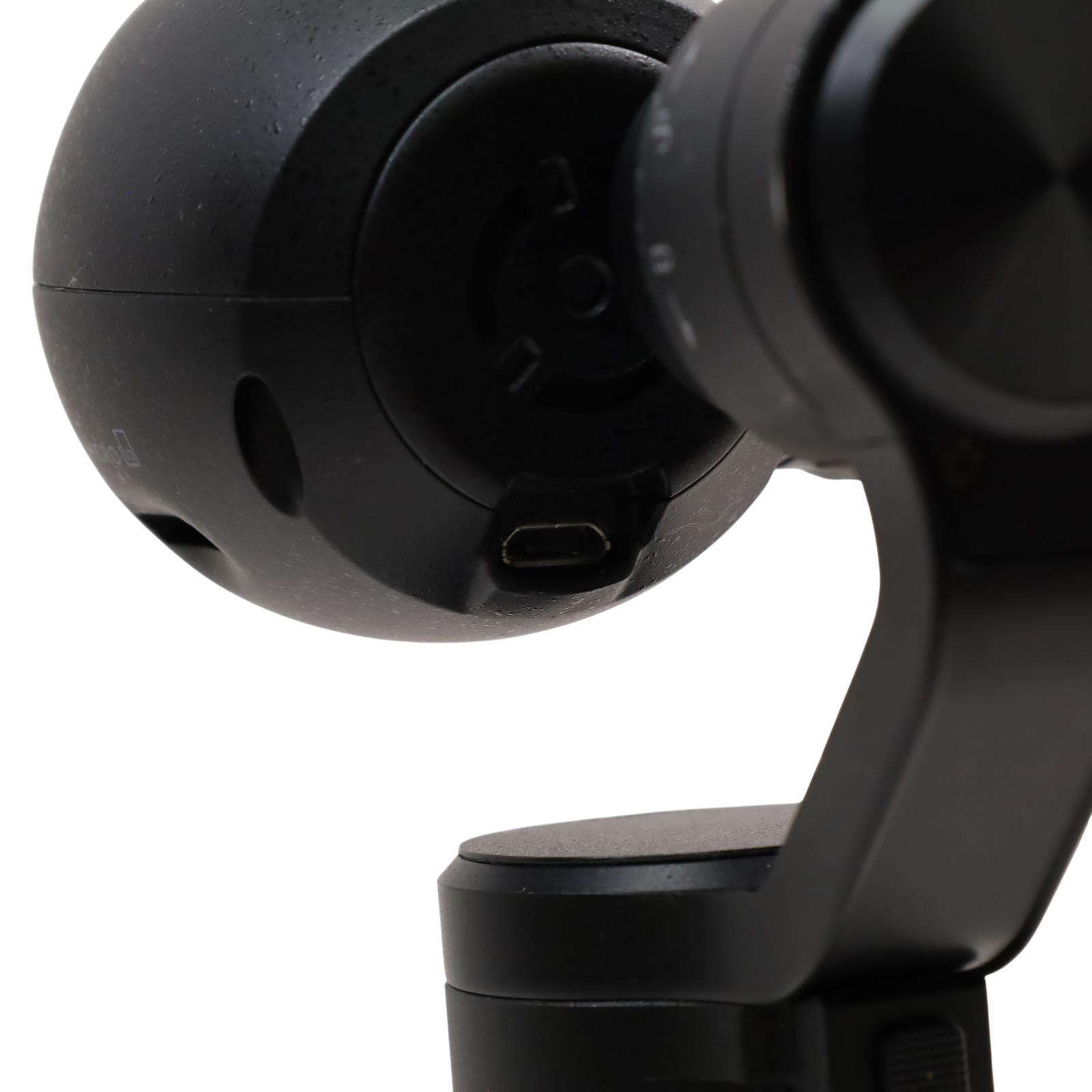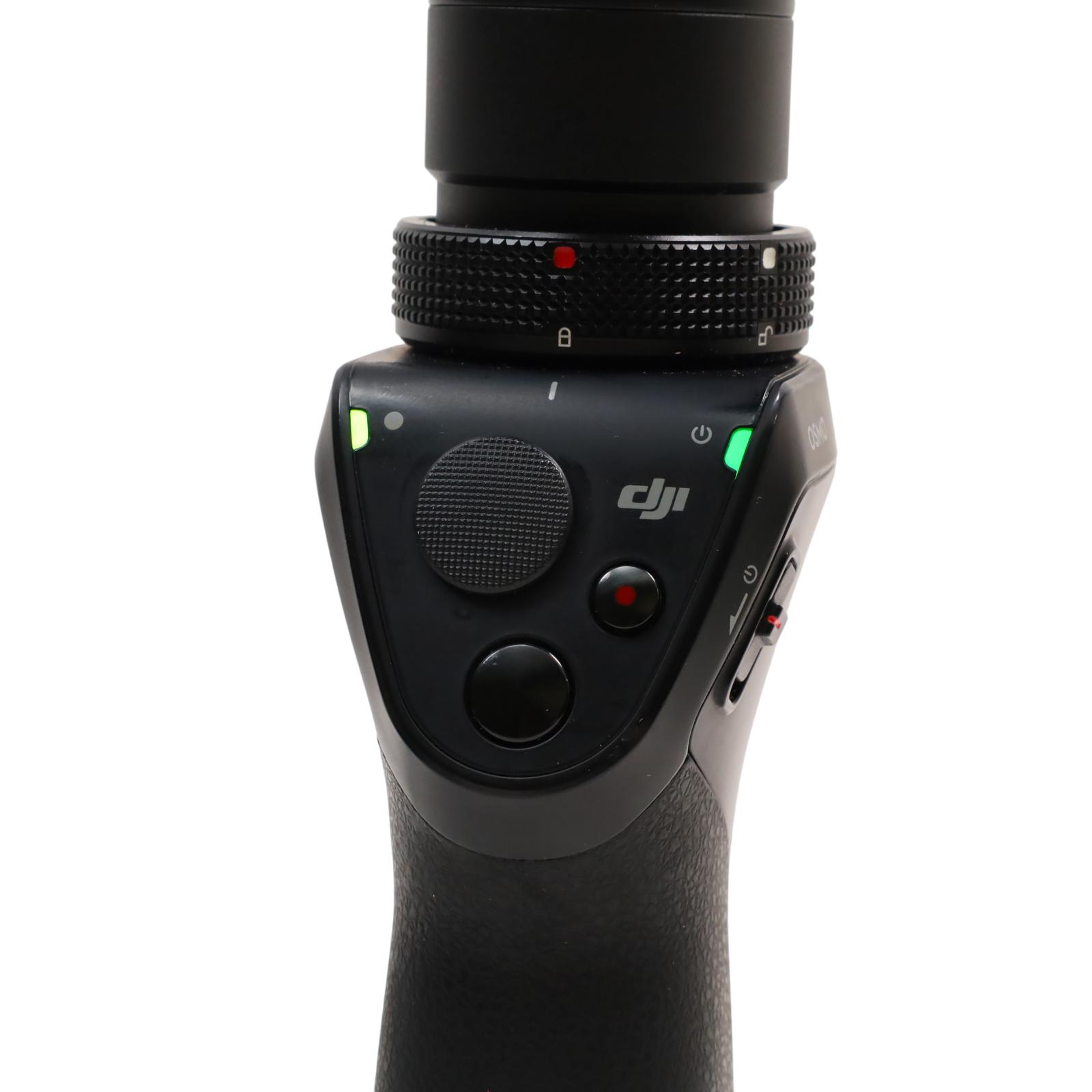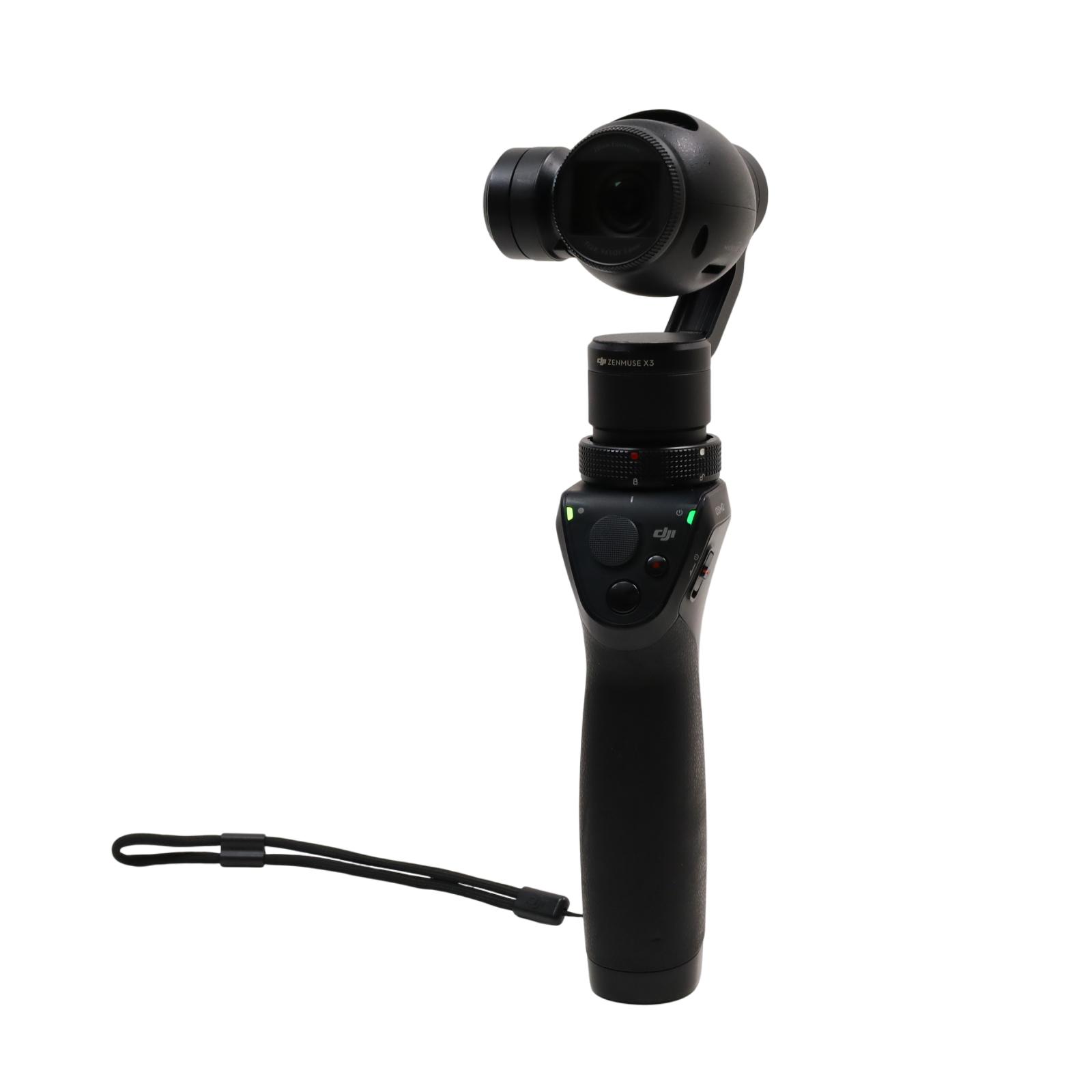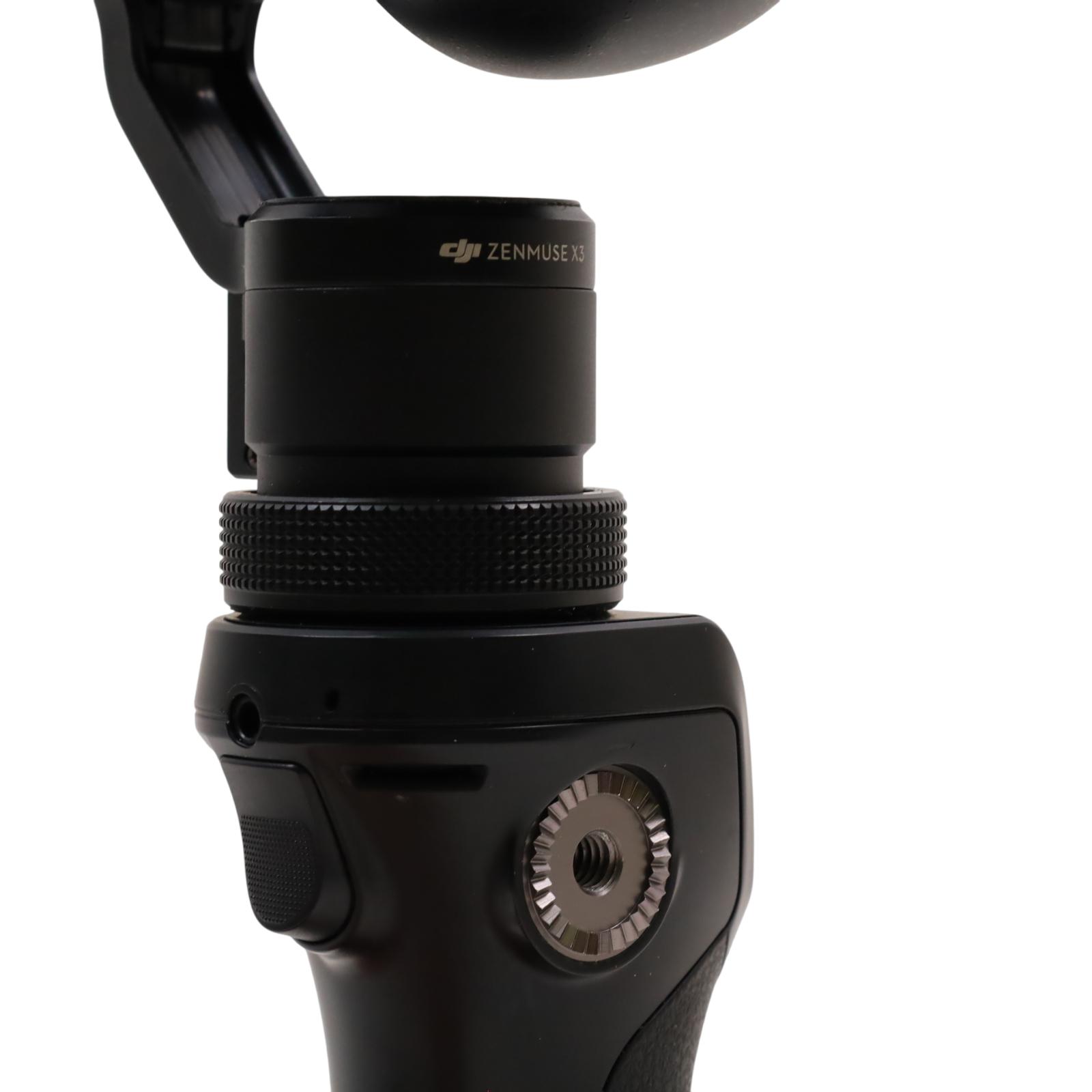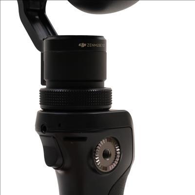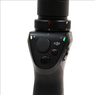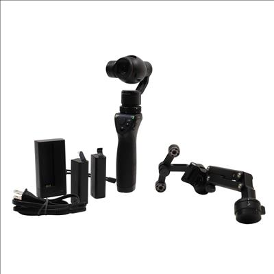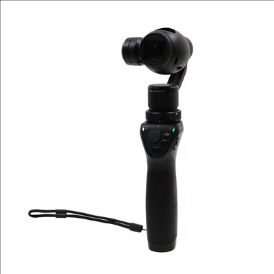 A handheld 3-axis gimbal camera system featuring a 1/2.3" CMOS sensor capable of recording 4K (4096 x 2160) video at 24 or 25 frames per second and capturing 12MP still images in JPEG or DNG RAW formats. It offers Full HD recording up to 120 fps for slow-motion footage and includes photo burst, panorama, and time-lapse modes. The ergonomic handle integrates a joystick for pan and tilt control, a trigger for mode switching, and buttons for recording and shutter release. Wi-Fi connectivity allows remote control and live monitoring through the DJI GO app for iOS and Android, with a detachable smartphone holder included for convenient on-device viewing. The 3-axis gimbal provides smooth stabilization and supports a wide motion range for precise framing, while the 3.5mm input enables external microphone use for enhanced audio capture.