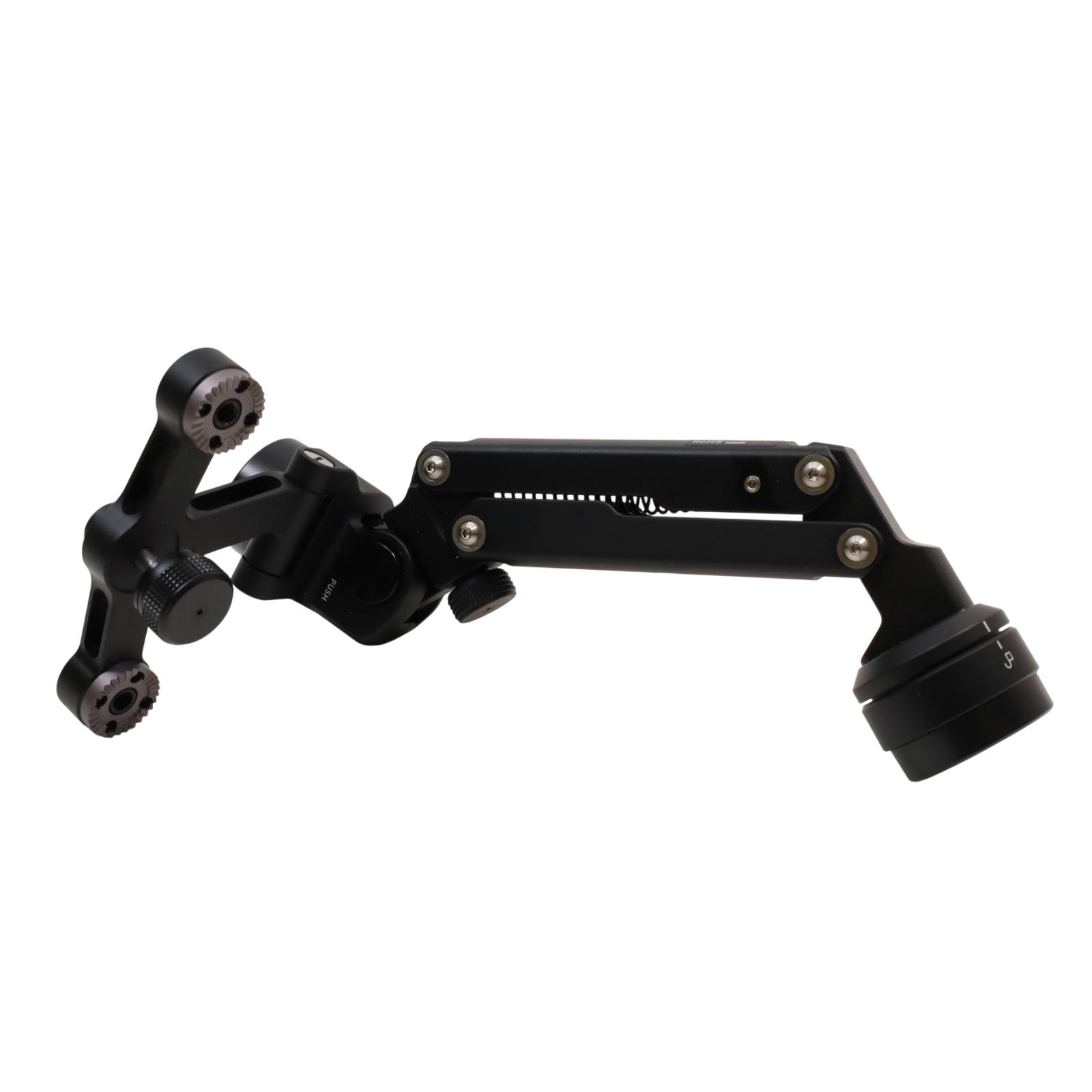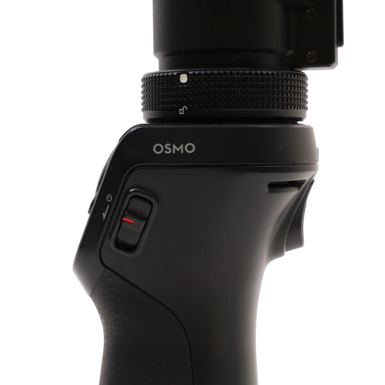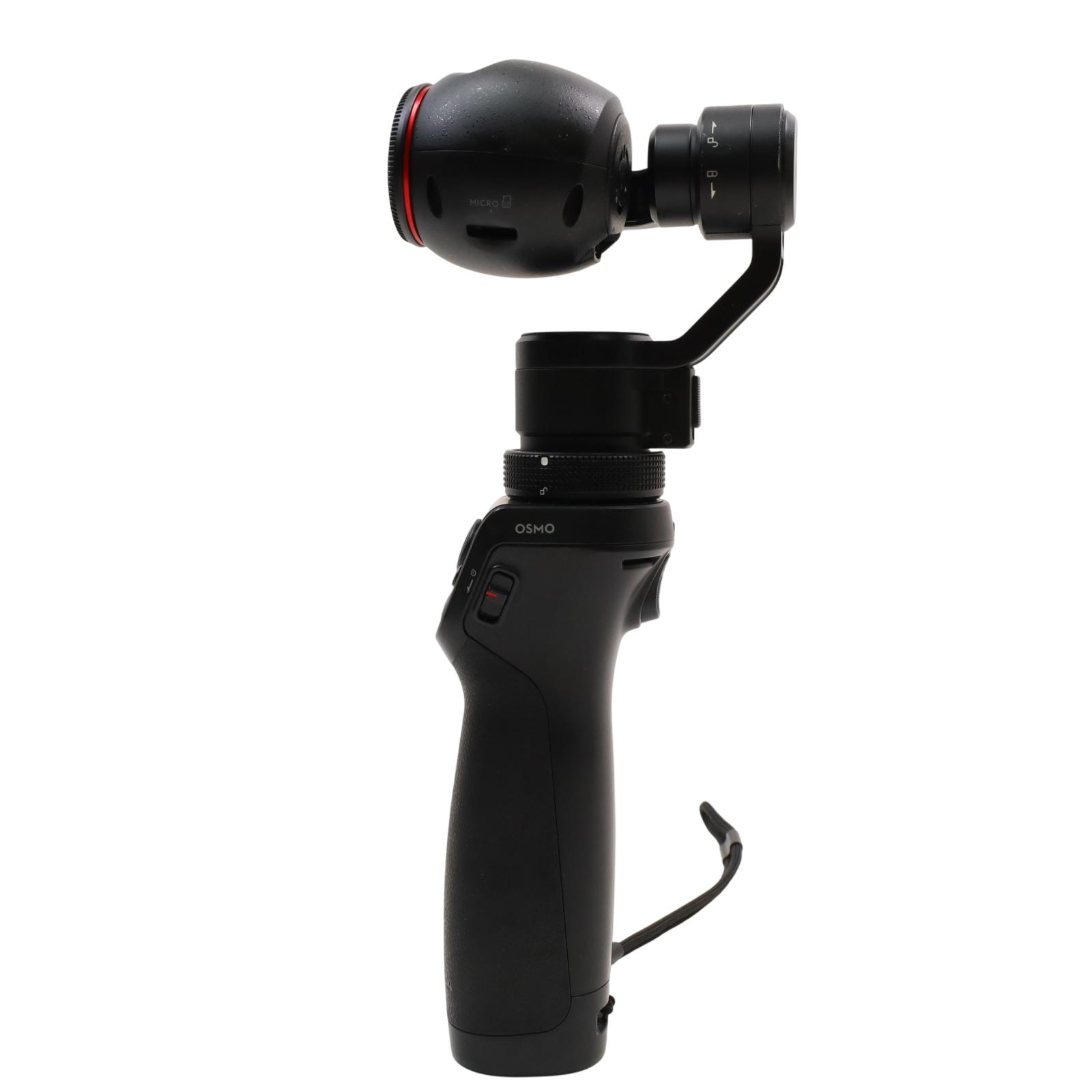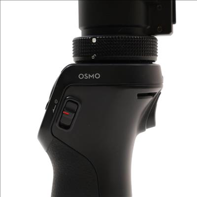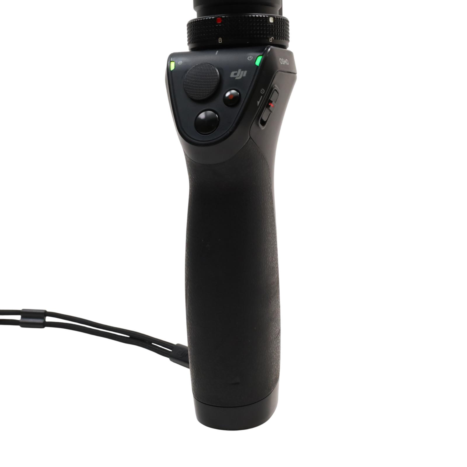 A handheld 3-axis gimbal camera system featuring a 1/2.3" CMOS sensor capable of recording 4K (4096 x 2160) video at 24 or 25 frames per second and capturing 12MP still images in JPEG or DNG RAW formats. It offers Full HD recording up to 120 fps for slow-motion footage and includes photo burst, panorama, and time-lapse modes. The ergonomic handle integrates a joystick for pan and tilt control, a trigger for mode switching, and buttons for recording and shutter release. Wi-Fi connectivity allows remote control and live monitoring through the DJI GO app for iOS and Android, with a detachable smartphone holder included for convenient on-device viewing. The 3-axis gimbal provides smooth stabilization and supports a wide motion range for precise framing, while the 3.5mm input enables external microphone use for enhanced audio capture.