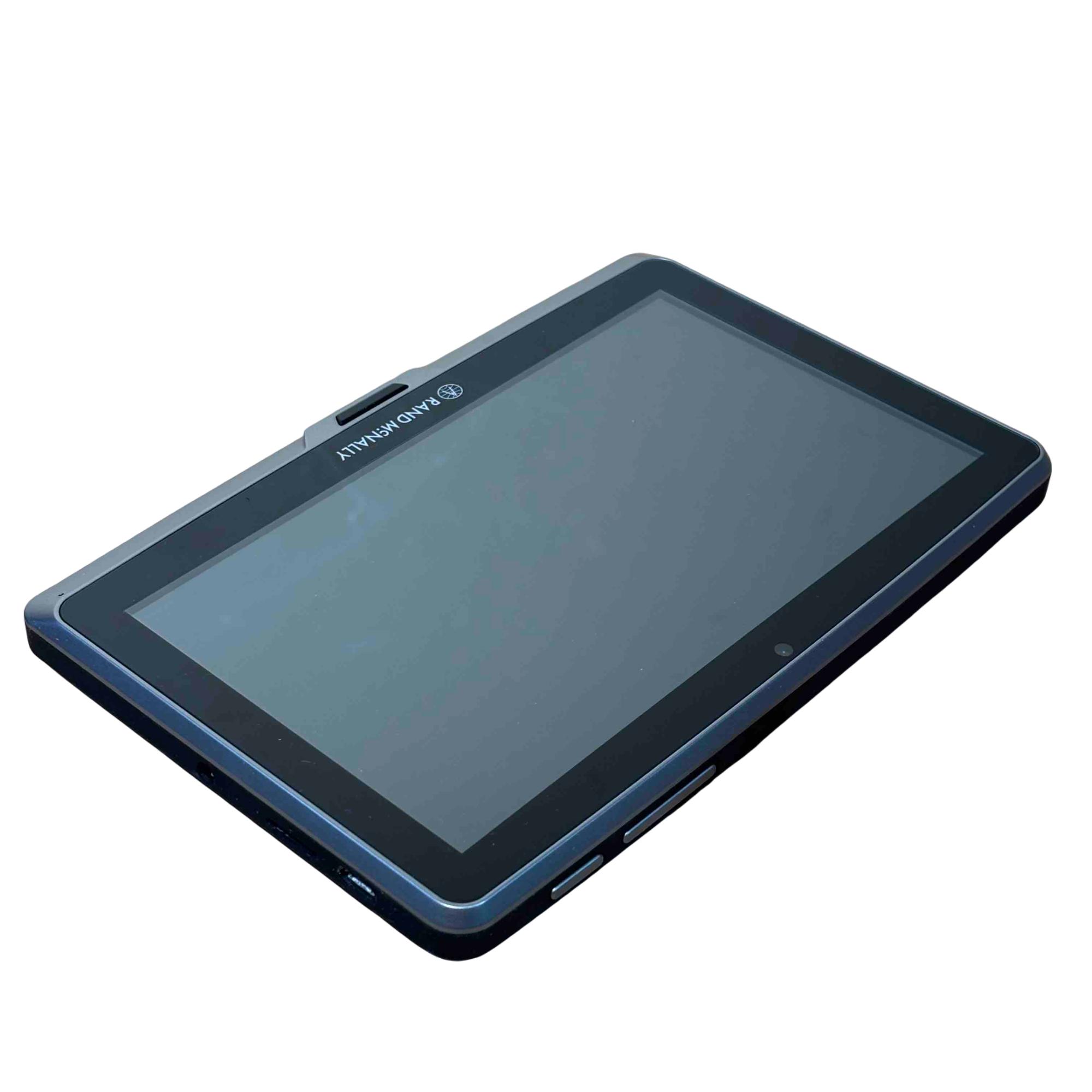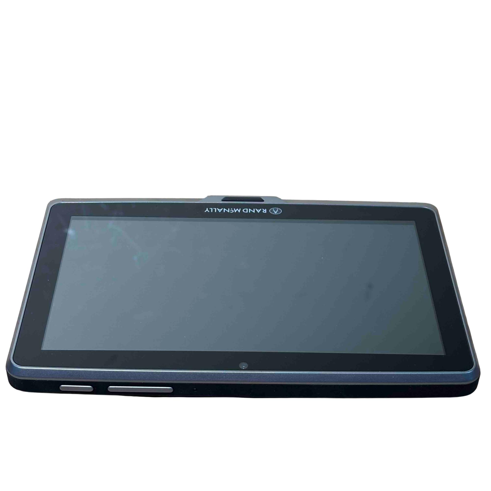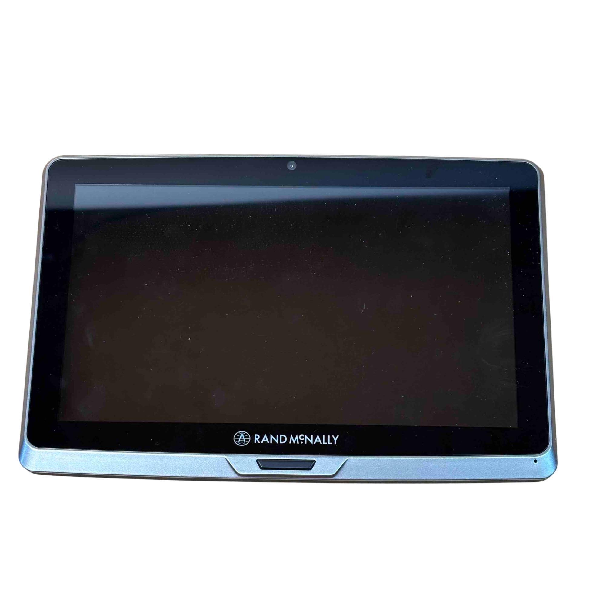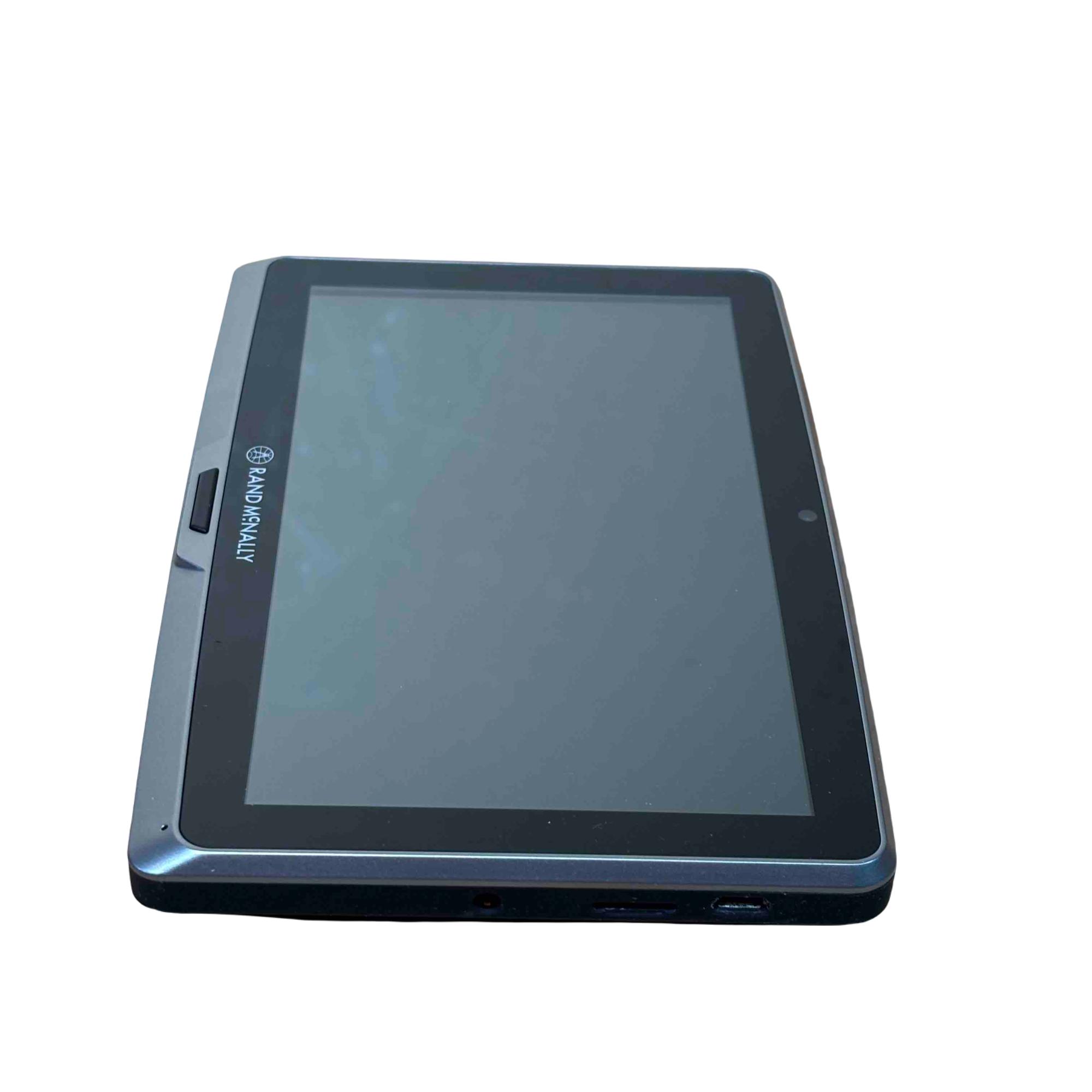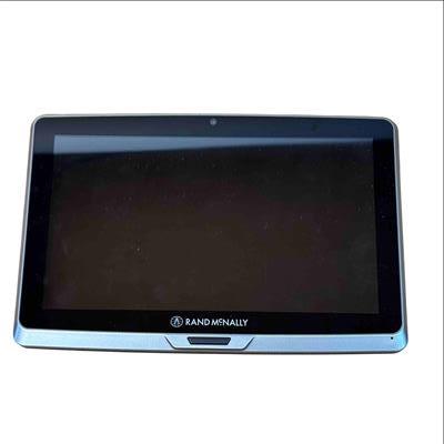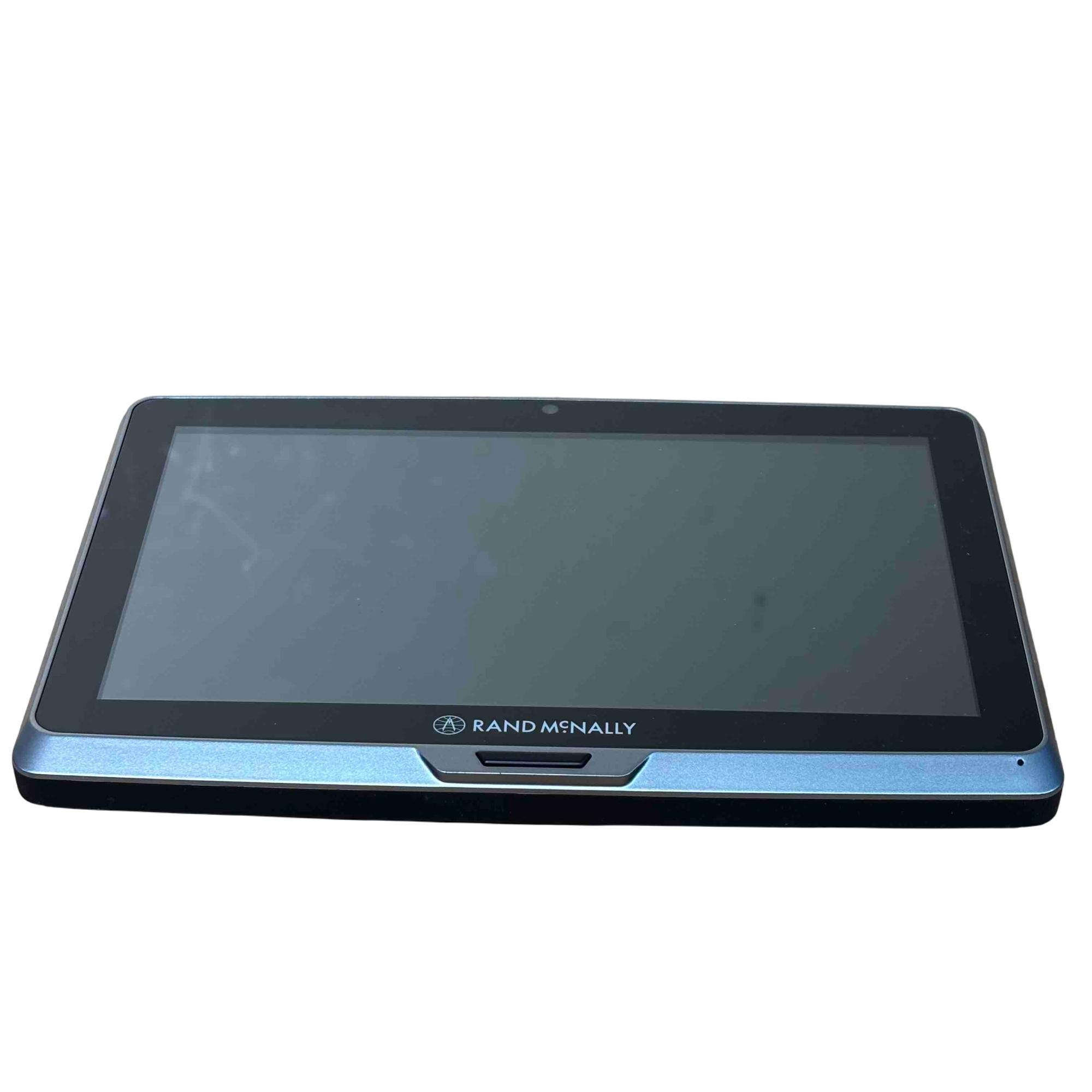 The Rand McNally TND Tablet 70 (TNDT70) features a 7-inch, 1024x600 IPS LCD capacitive touchscreen, an Android operating system, 16GB of internal storage, and a 2500 mAh battery. Key specifications include a Quad-core processor, Wi-Fi 802.11 a/b/g connectivity, Bluetooth 4.0, a 5MP front-facing camera, a 0.3MP self-facing camera, and a built-in dashcam. It also includes pre-loaded truck-specific navigation features, a microSD slot, and a magnetic mount with GPS boost.