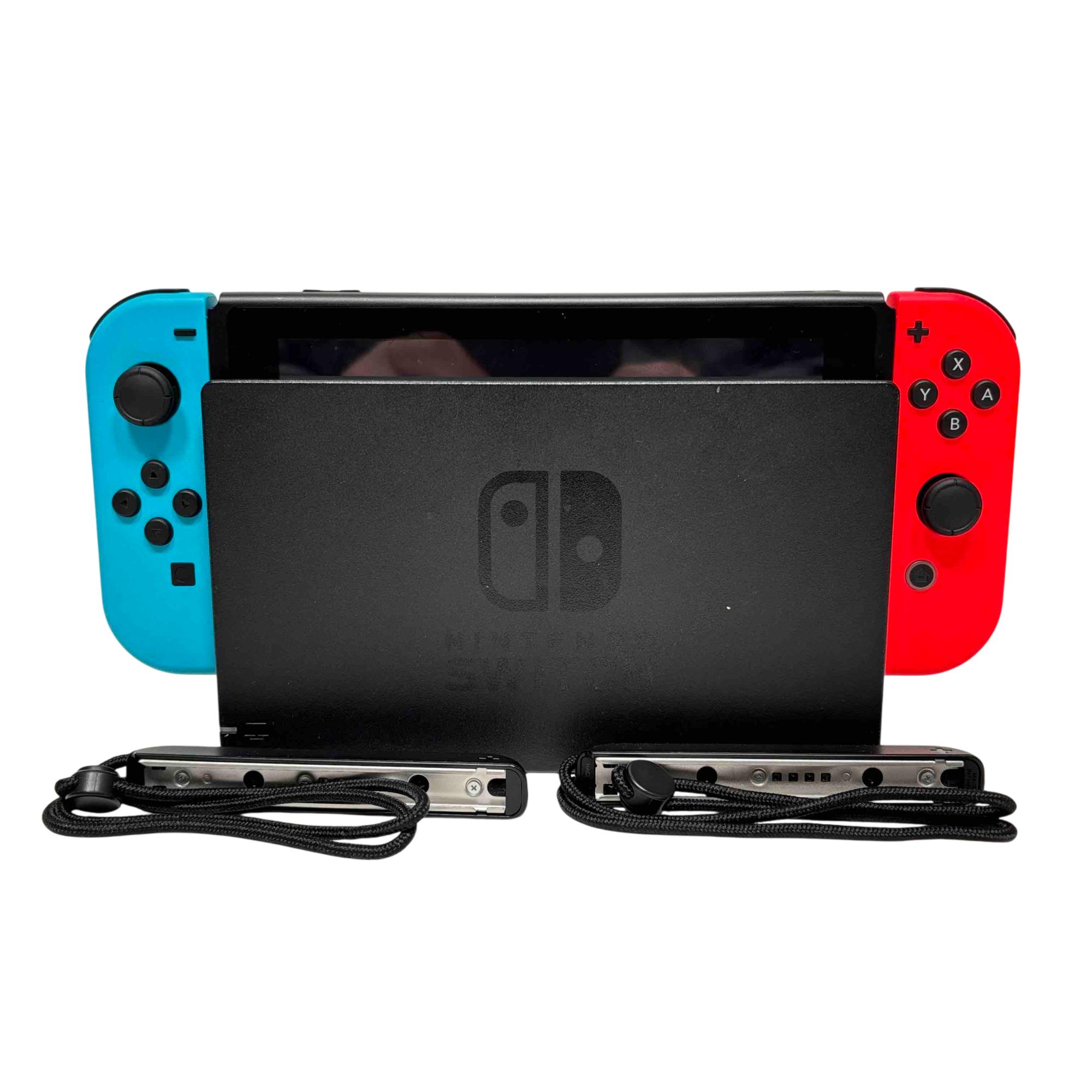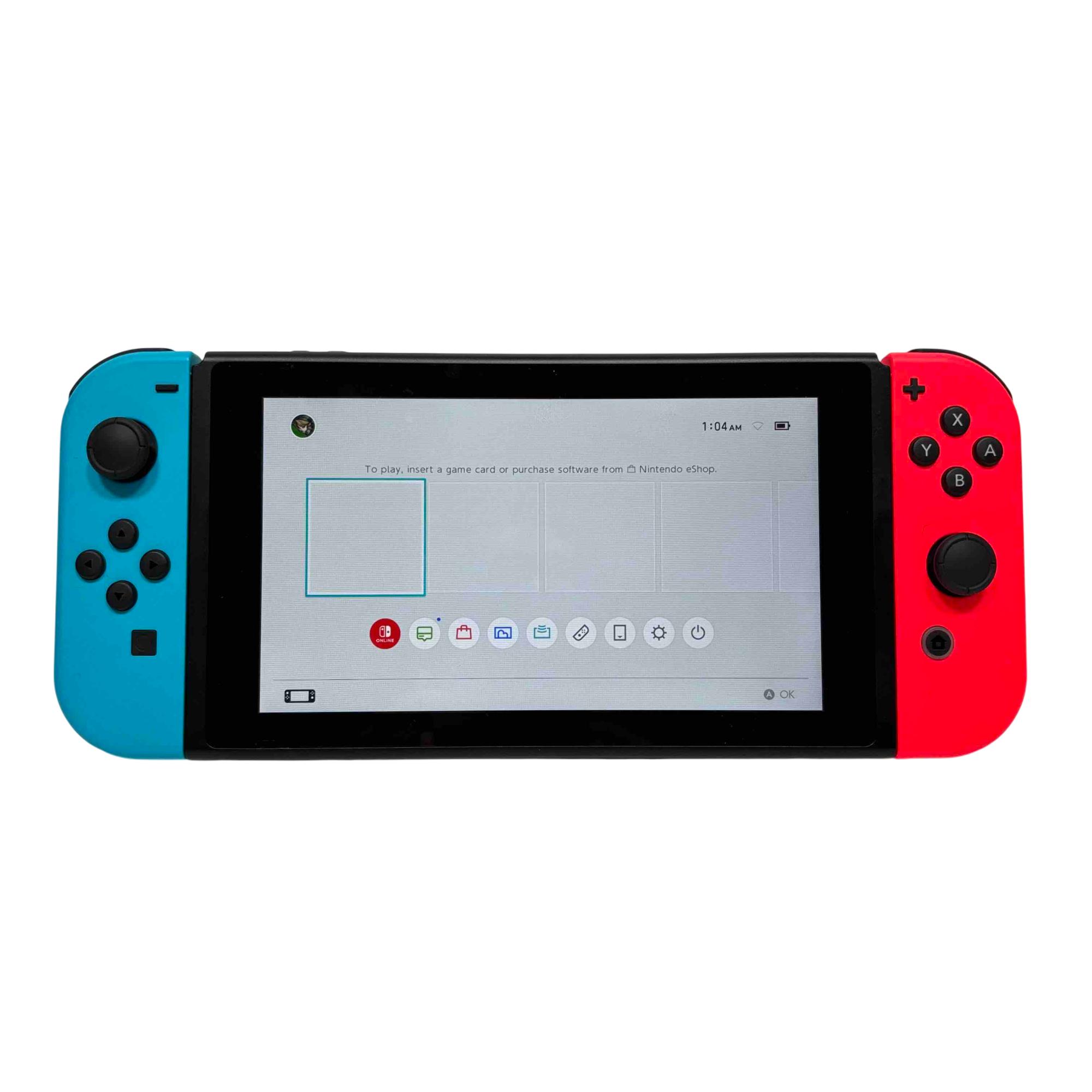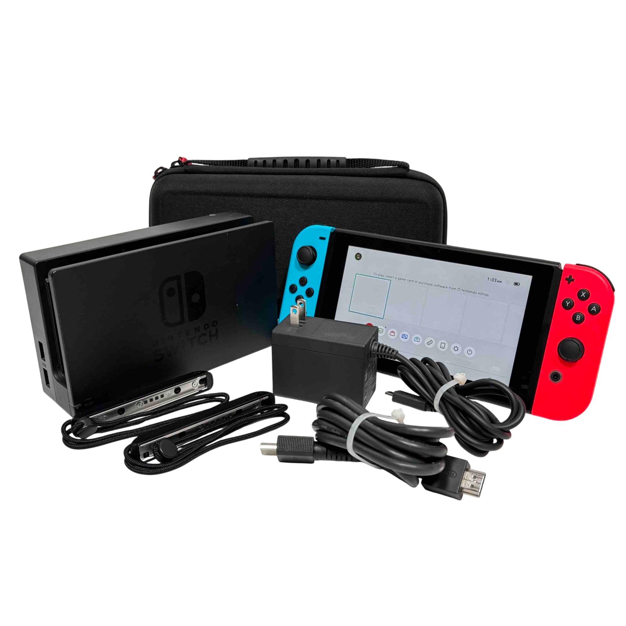 Nintendo Switch HAC-001 handheld console features a 6.2-inch touchscreen display and versatile play modes for any setting. Connect it to your TV for HD gaming, use tabletop mode for shared play, or enjoy gaming on the go in handheld mode with attached Joy-Con controllers.