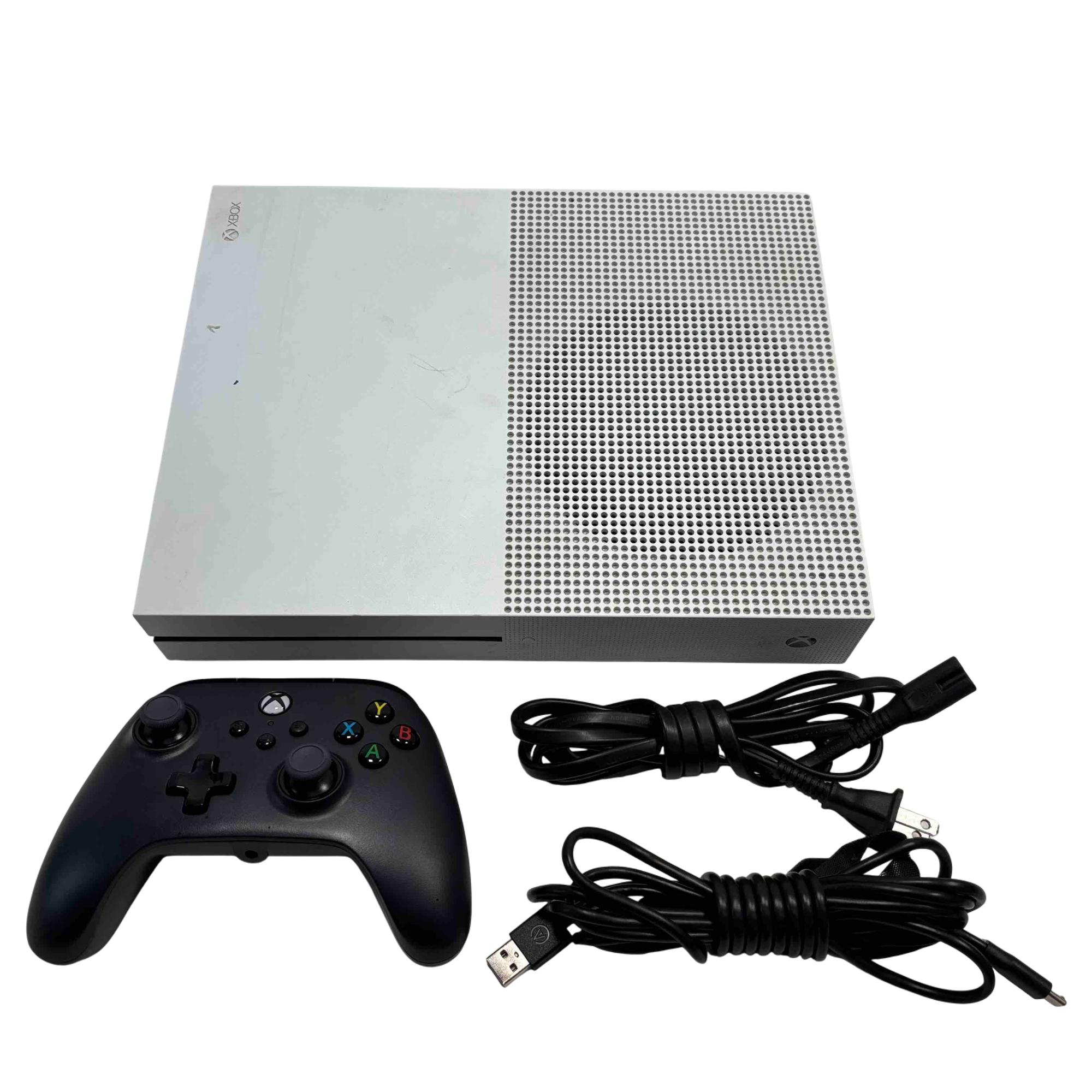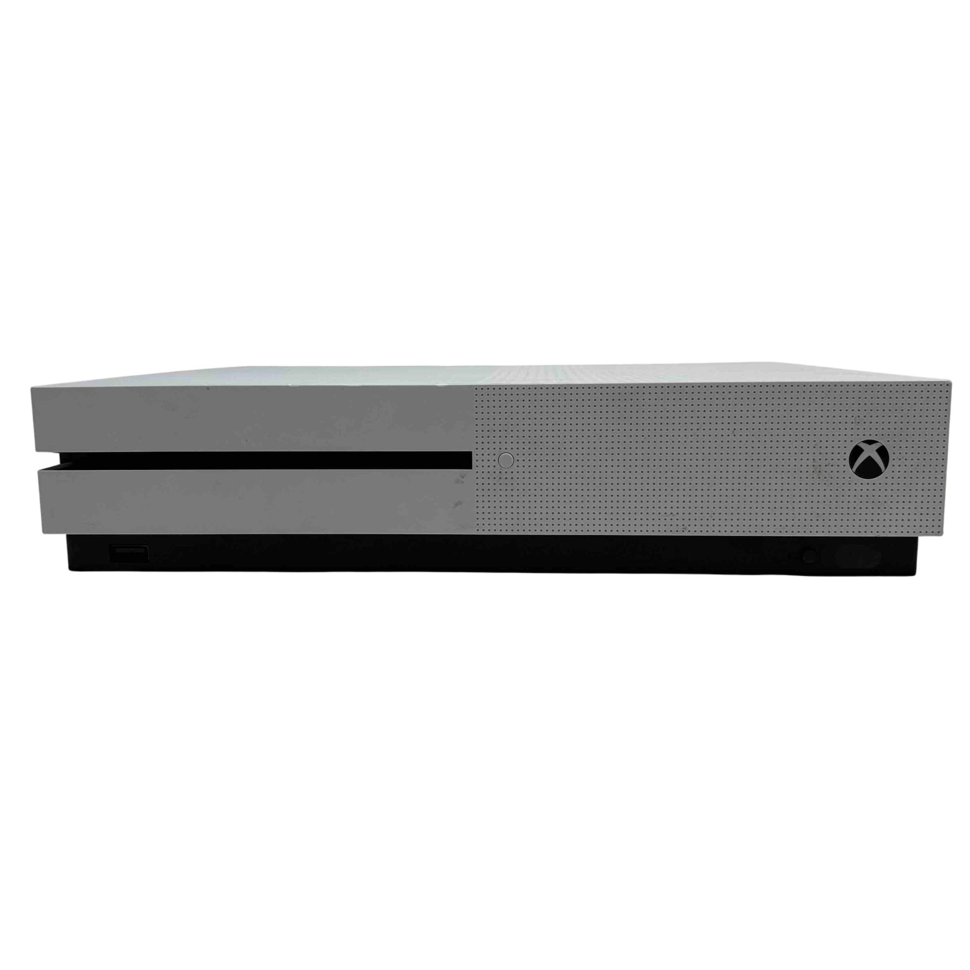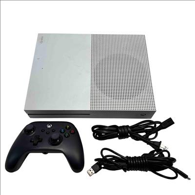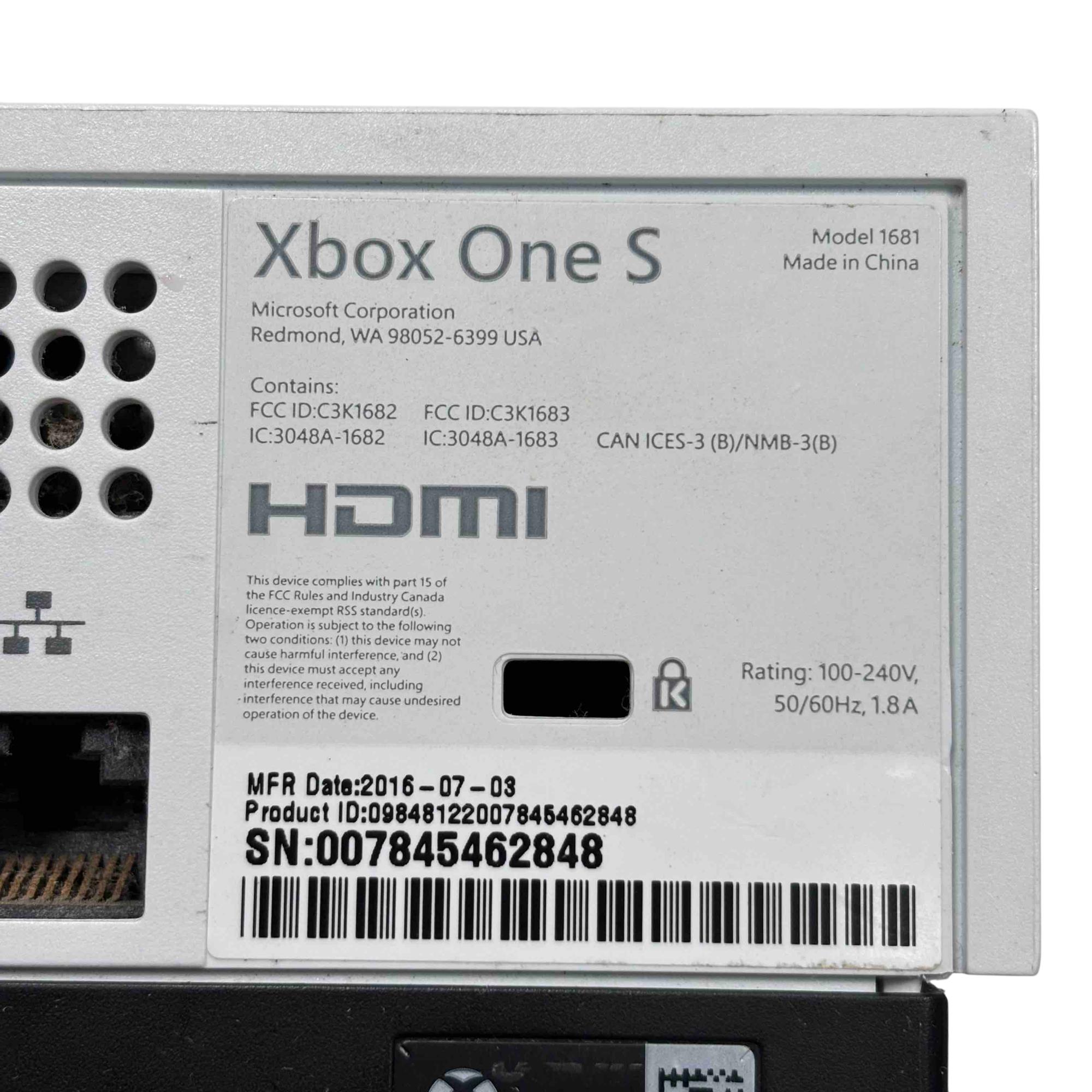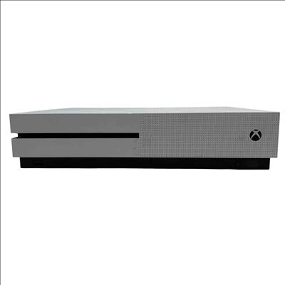 The Microsoft Xbox One S 1681 video game console features a sleek white and black rectangular design. This console offers 500GB of storage and a compact form factor, making it an ideal choice for gamers seeking both style and performance.
