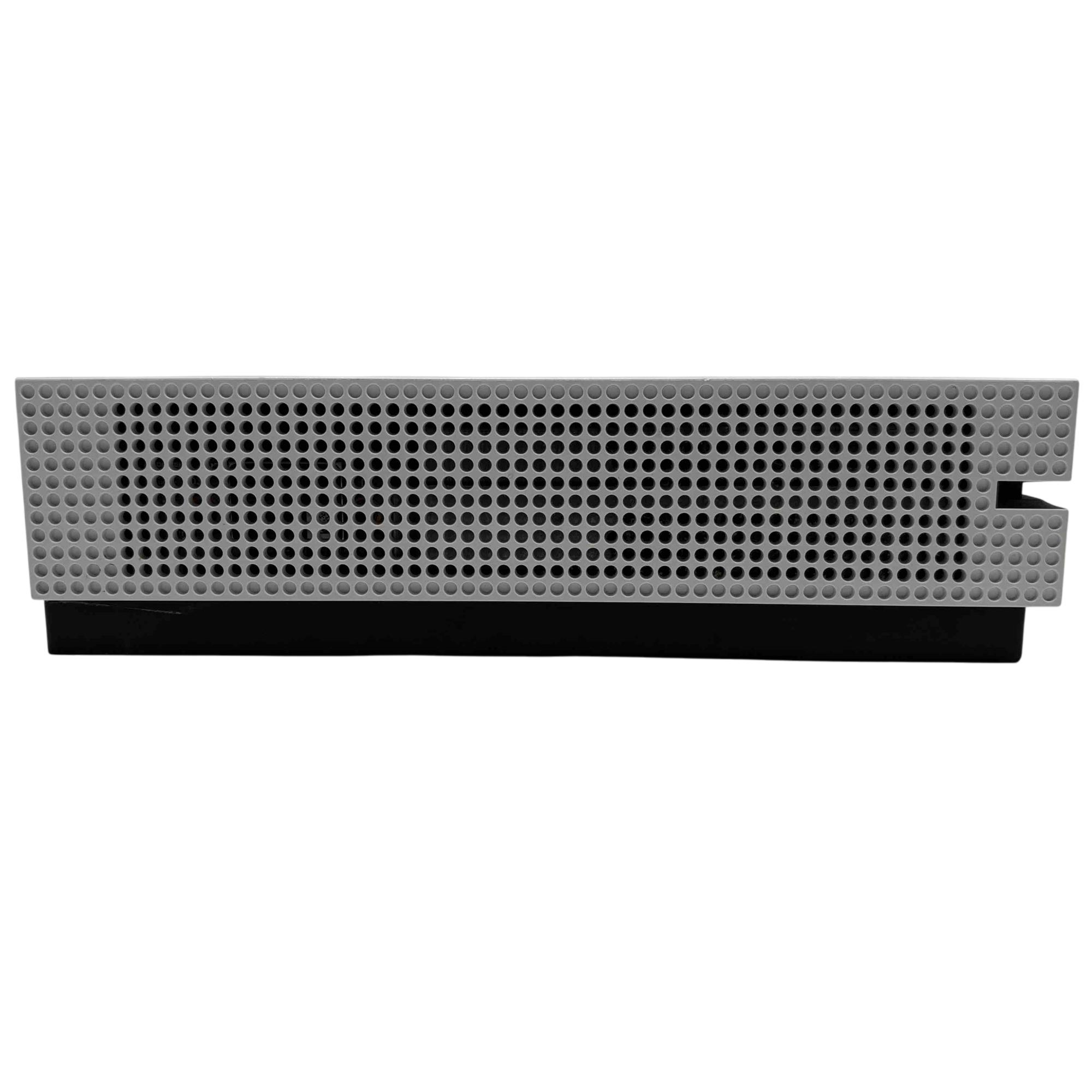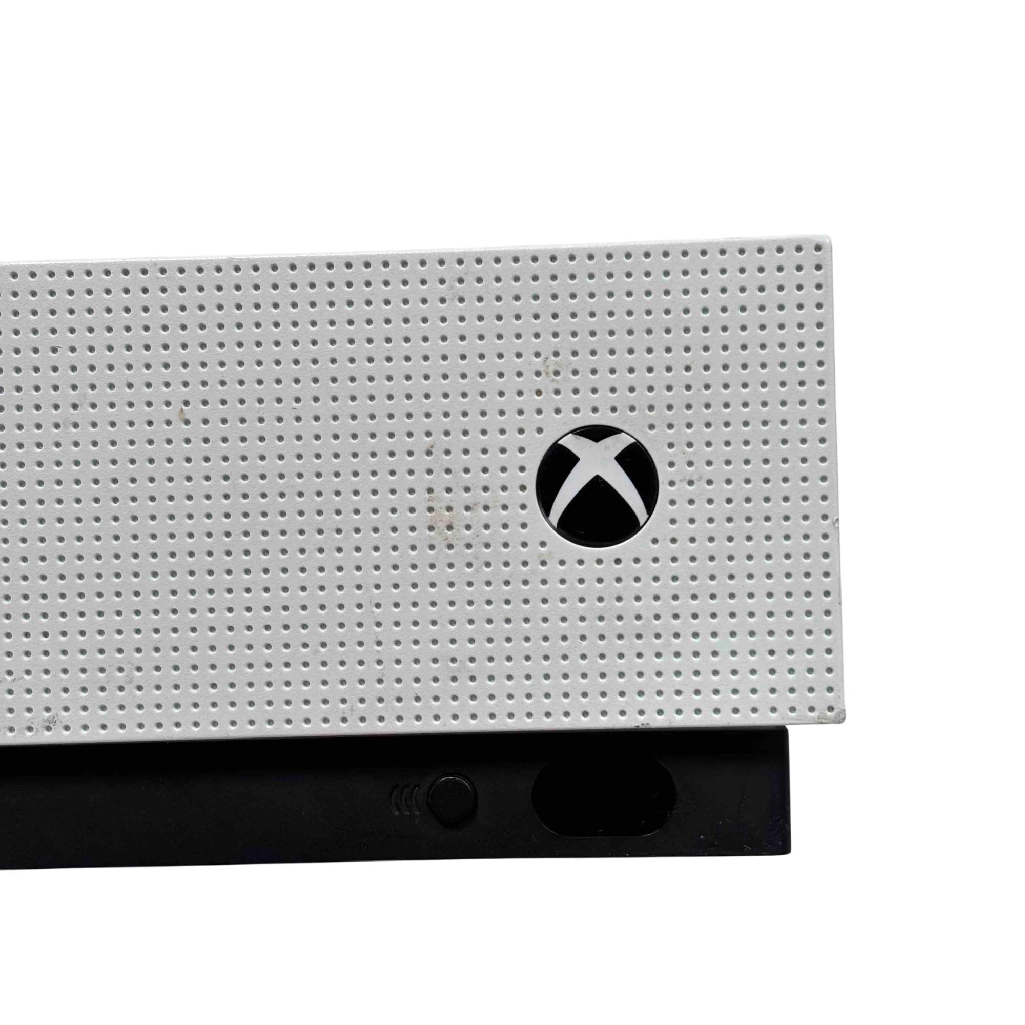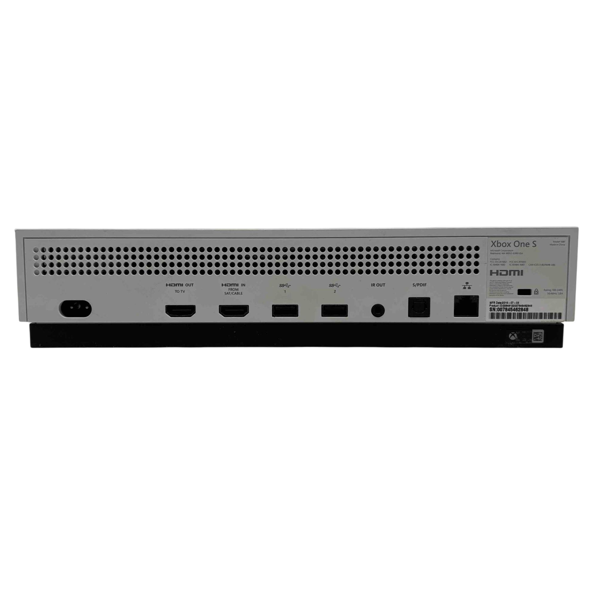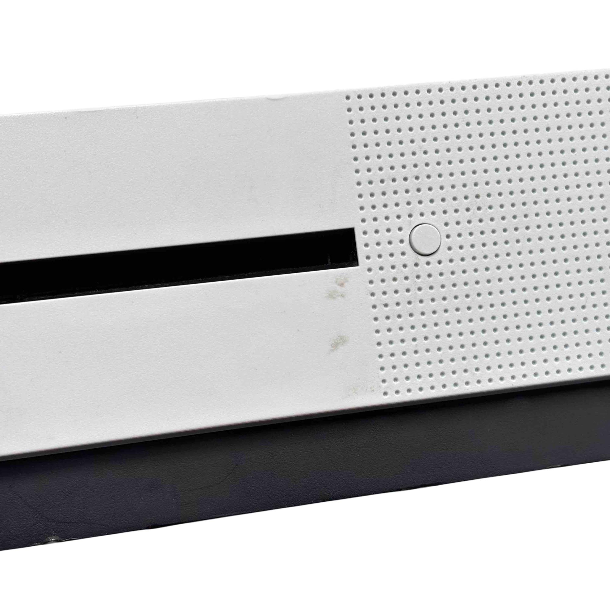 The Microsoft Xbox One S 1681 video game console features a sleek white and black rectangular design. This console offers 500GB of storage and a compact form factor, making it an ideal choice for gamers seeking both style and performance.