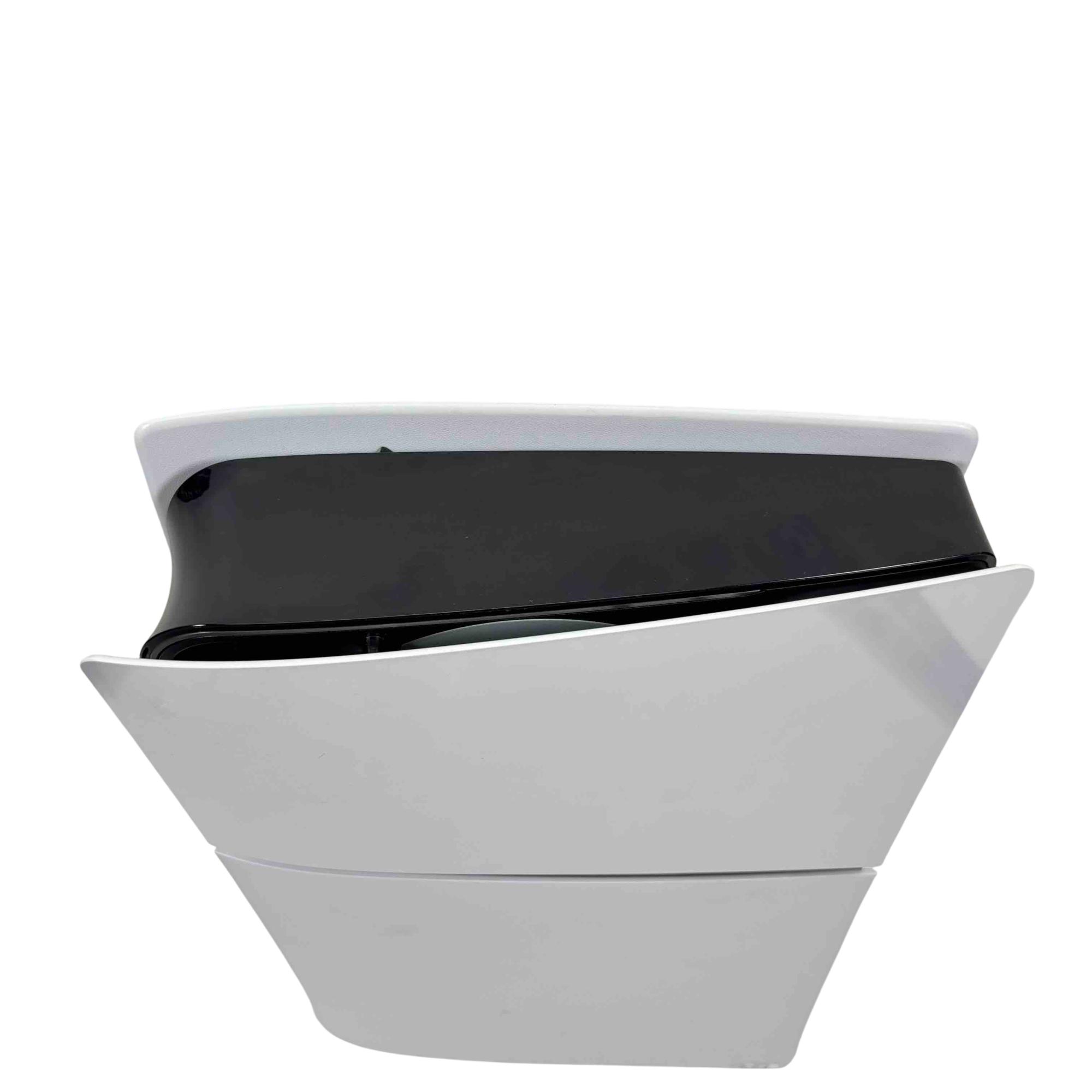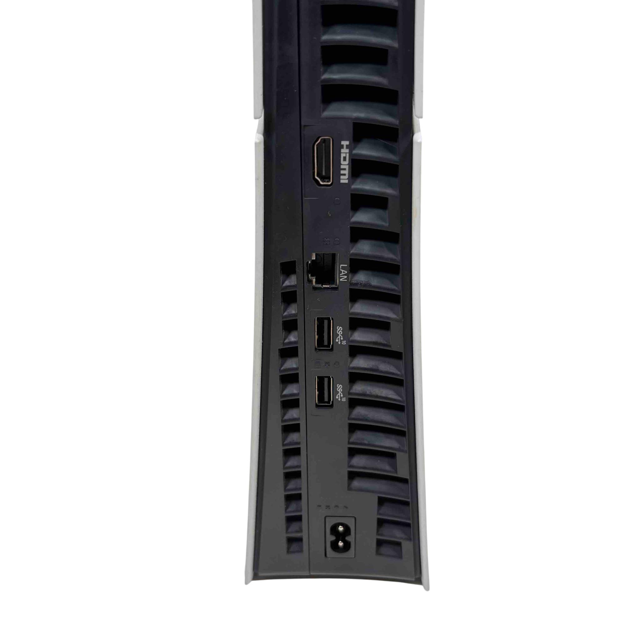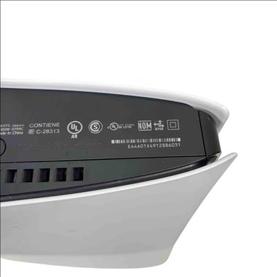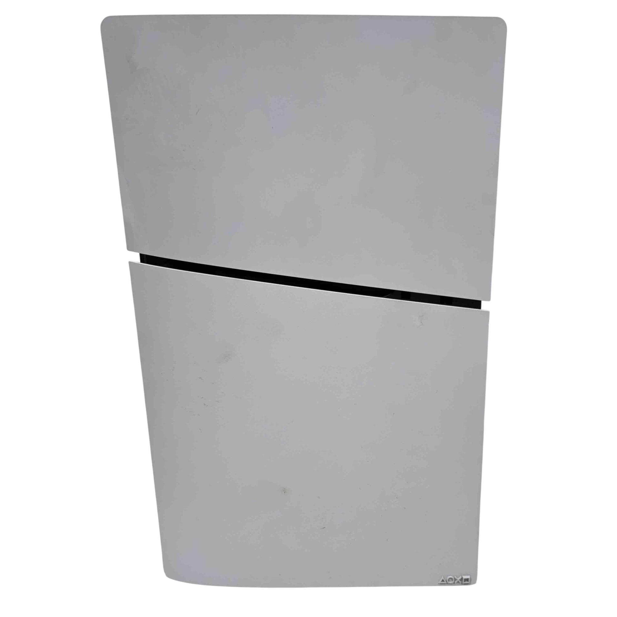 Sony PlayStation 5 Digital Edition Slim (Model CFI-2015) Console Bundle features a sleek white and black design with a streamlined rectangular shape and a black strip accent. This next-generation gaming console includes a powerful 1TB SSD and supports digital-only gameplay, offering fast load times and high-fidelity graphics for an immersive gaming experience.