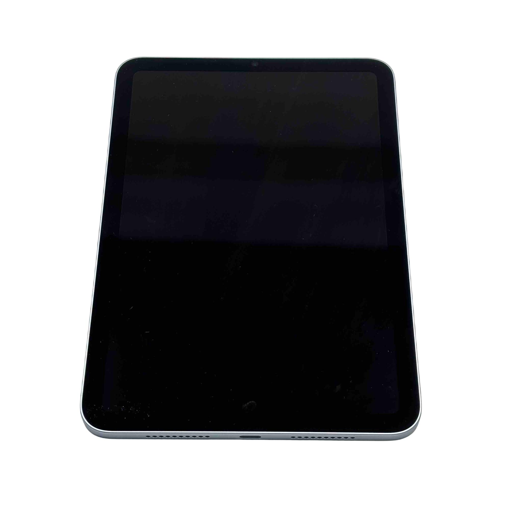 Previously owned. This Apple iPad mini (A17 Pro) has been tested and it works well. The screen has some light scratches to the left of the center near the left edge, but it does not have any cracks. The back of the tablet has a line mark on the bottom left corner. The power button has two brown spots on the right side of it. See photos for details.