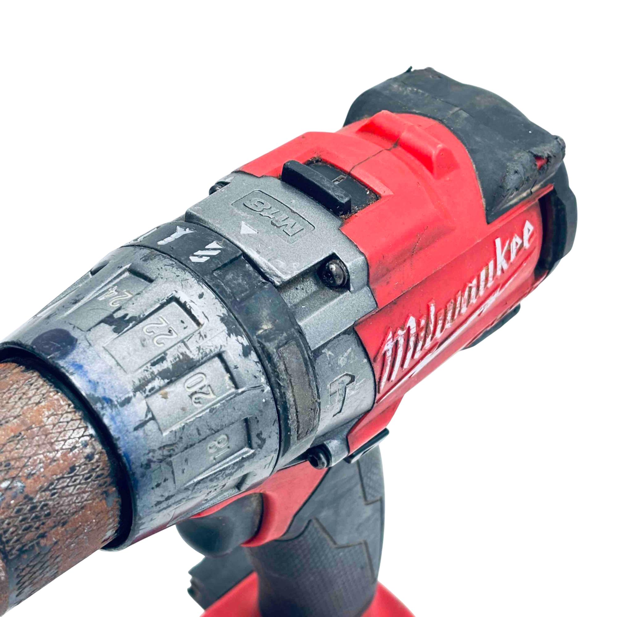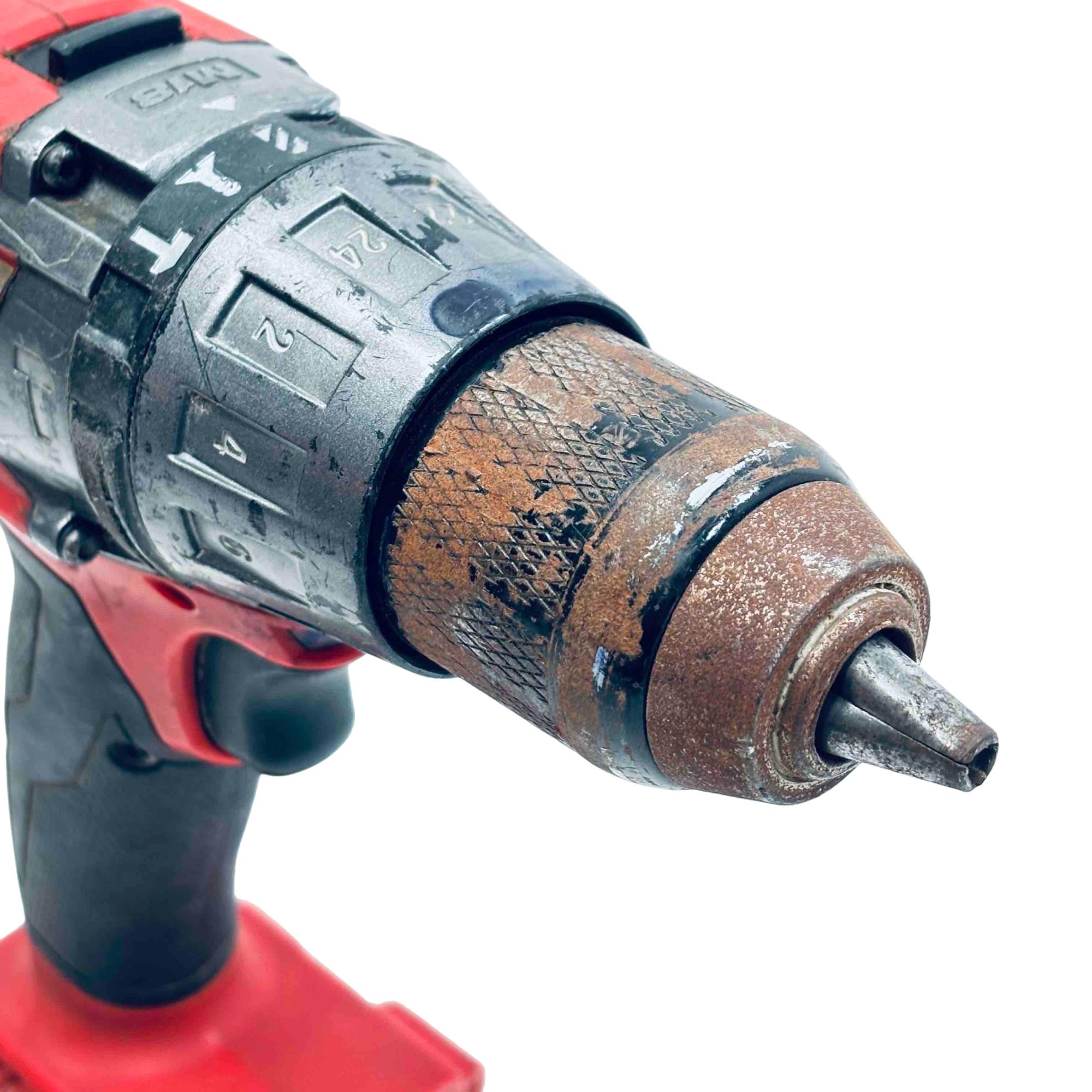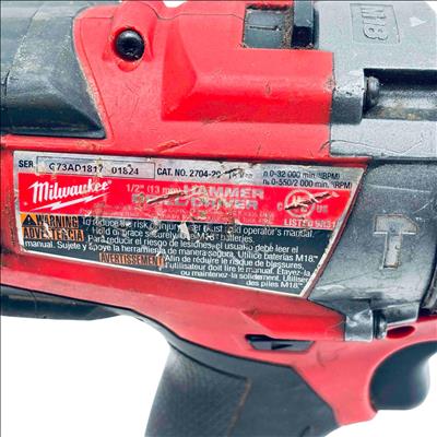 Milwaukee M18 Fuel 1/2" Hammer Drill/Driver 2704-20 Cordless Tool delivers high performance with its brushless motor and robust hammer drill functionality. Designed for heavy-duty applications, this cordless drill features an ergonomic red and black design for comfort and durability on the job. Ideal for professionals, it offers precision and power in a handheld power tool optimized for drilling and driving tasks.