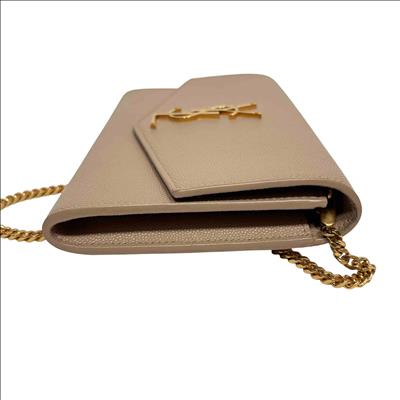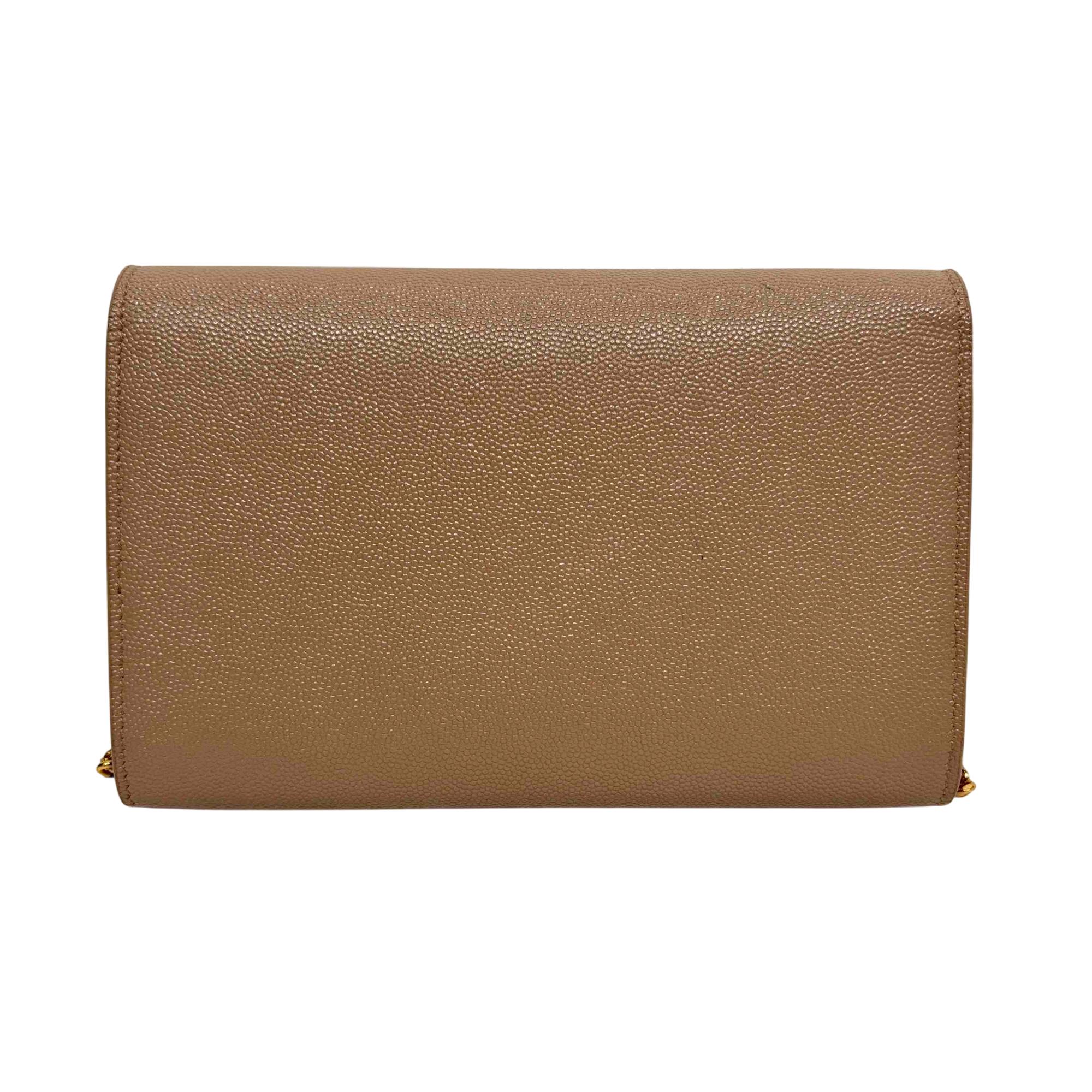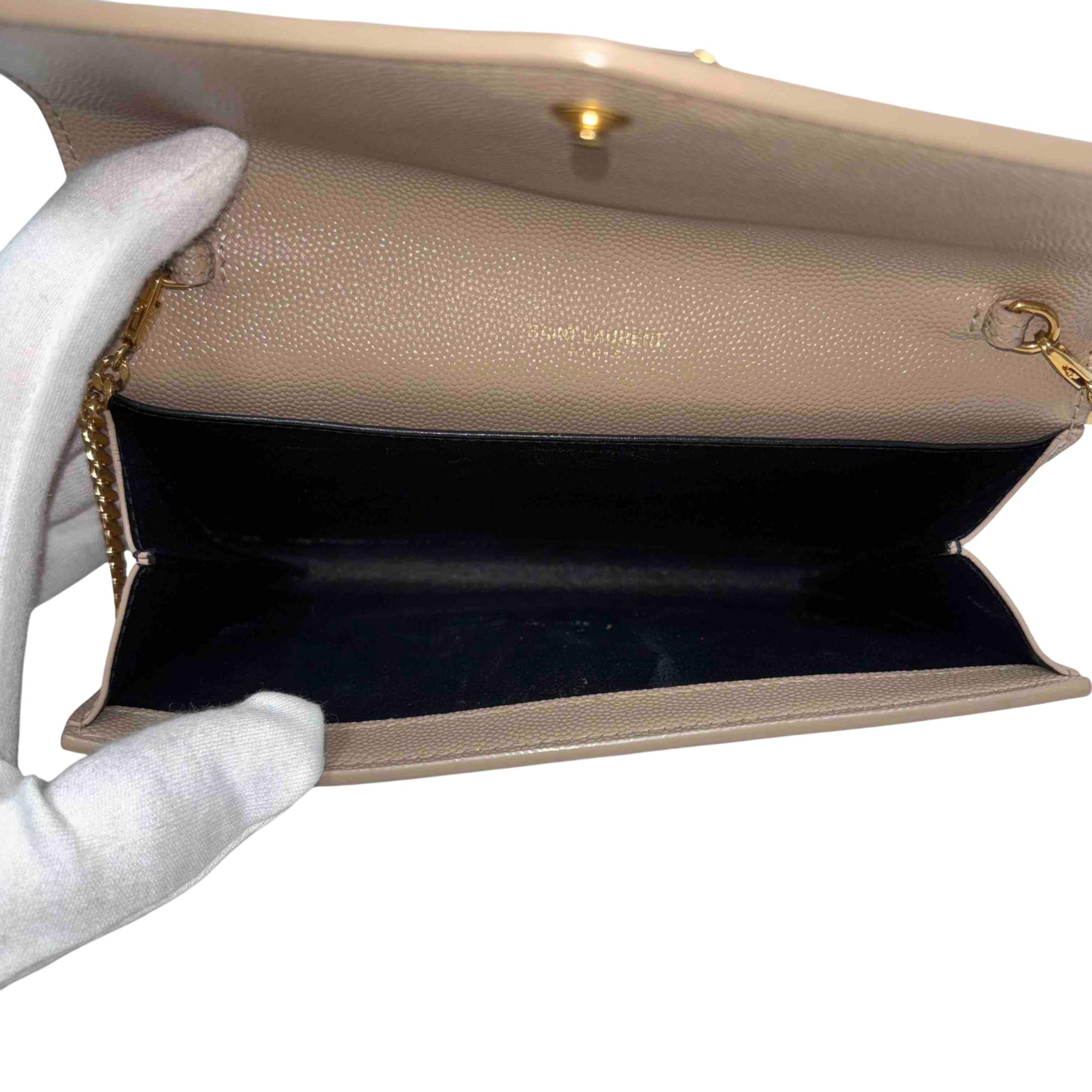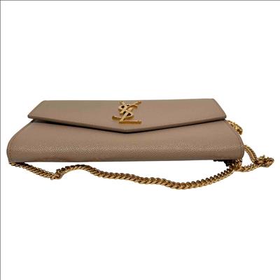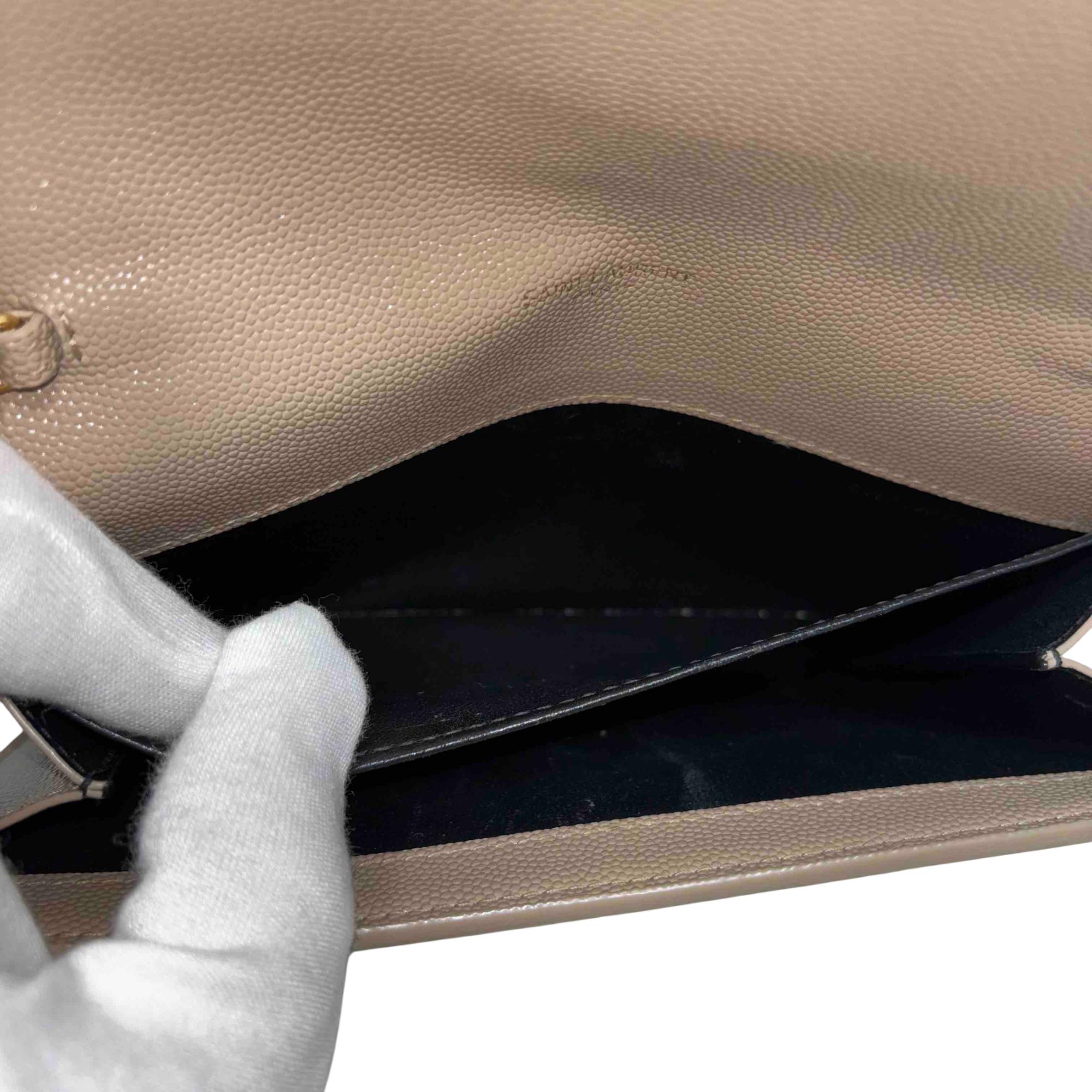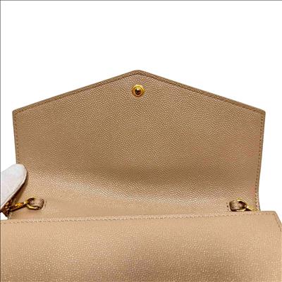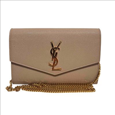Saint Laurent Uptown Beige Leather Crossbody features premium tan leather with a smooth, finely grained texture and a distinctive square pocket design. This elegant rectangular accessory combines timeless beige tones with high-quality craftsmanship, perfect for sophisticated everyday use or special occasions.