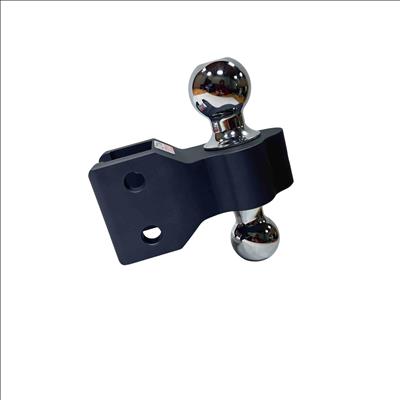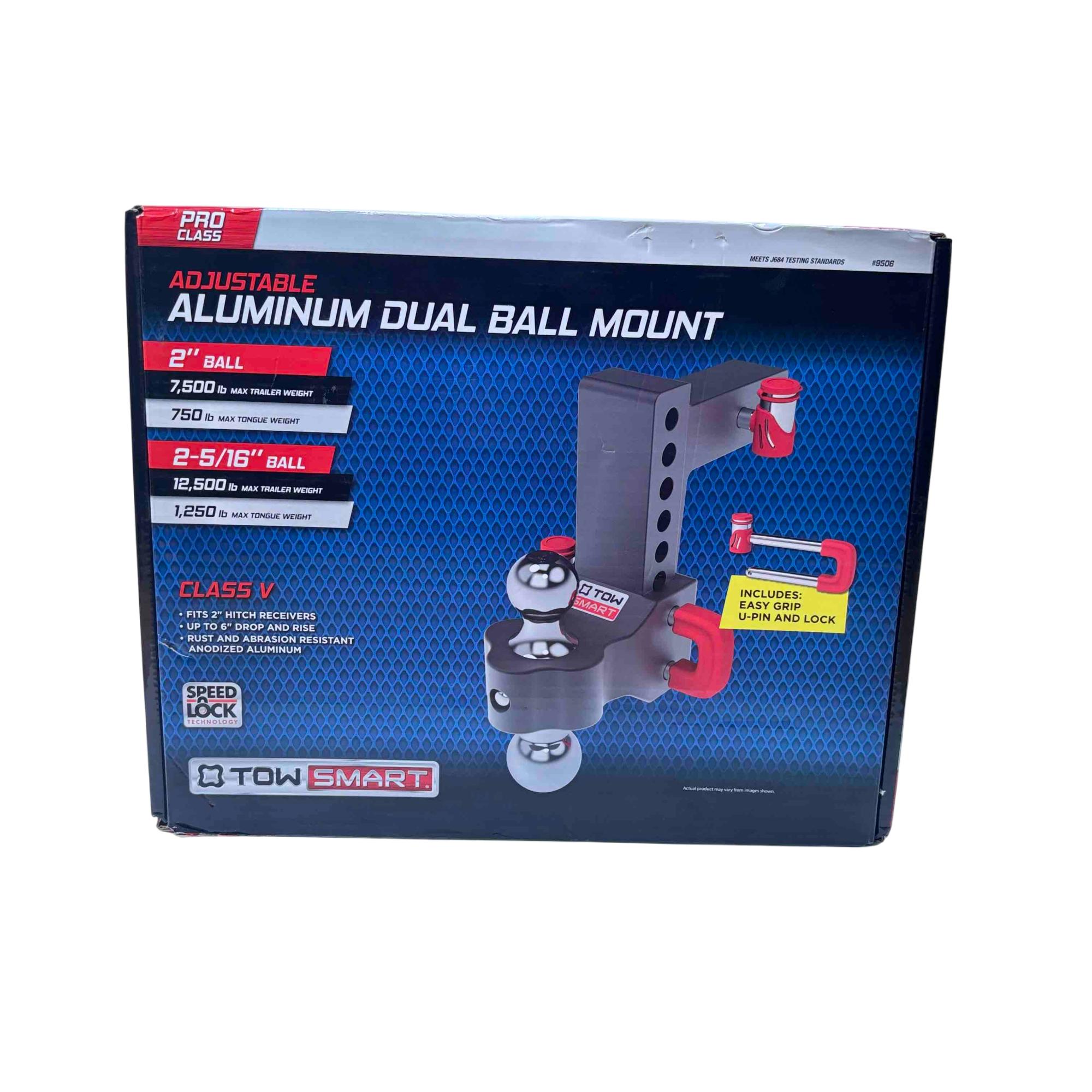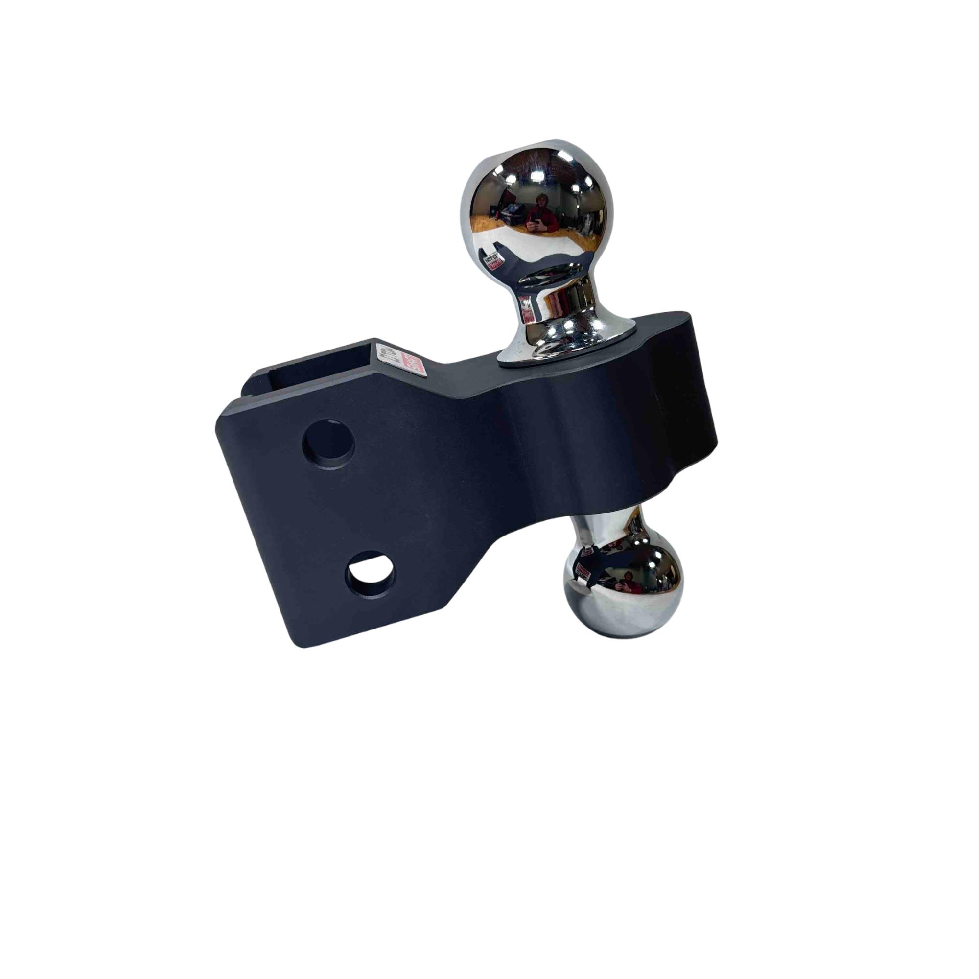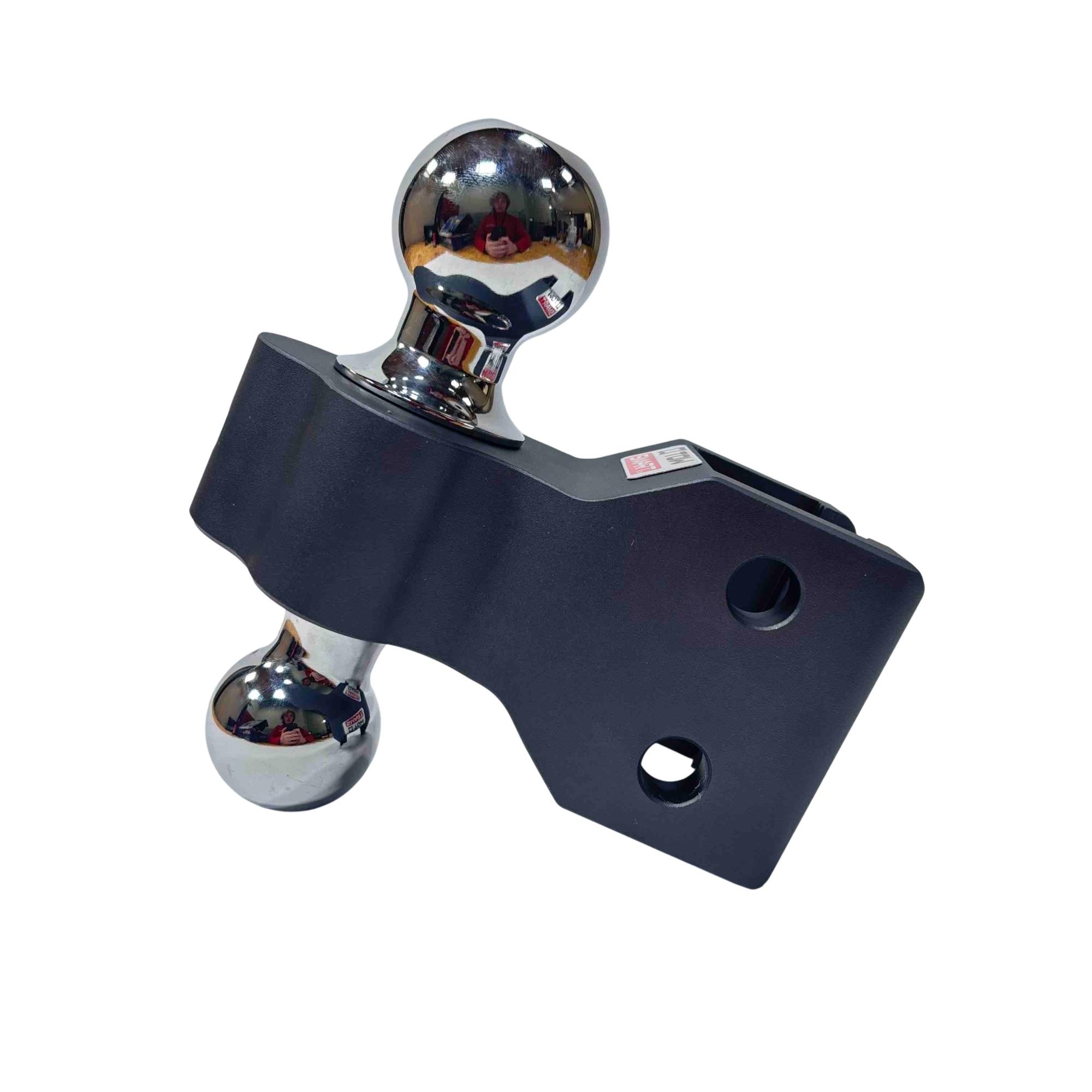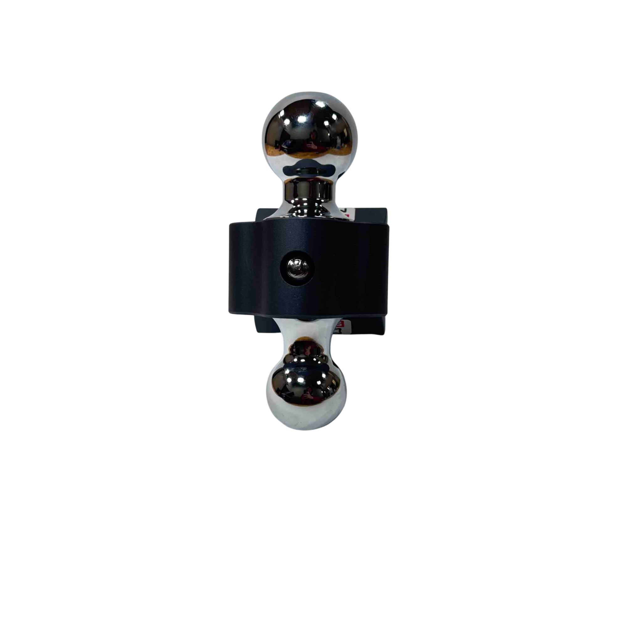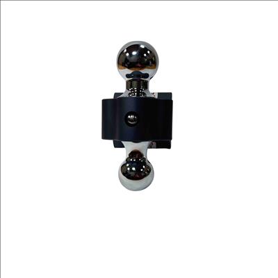 Draw-Tite 63076 Dual-Ball Trailer Hitch Ball Mount features a durable black and silver metal design with two towing balls measuring 2 inches. This high-quality hitch ball mount is engineered for towing versatility and strength, fitting a variety of trailer types for secure connections. Ideal for heavy-duty towing, it comes packaged in a foam-lined box with necessary tools for installation.