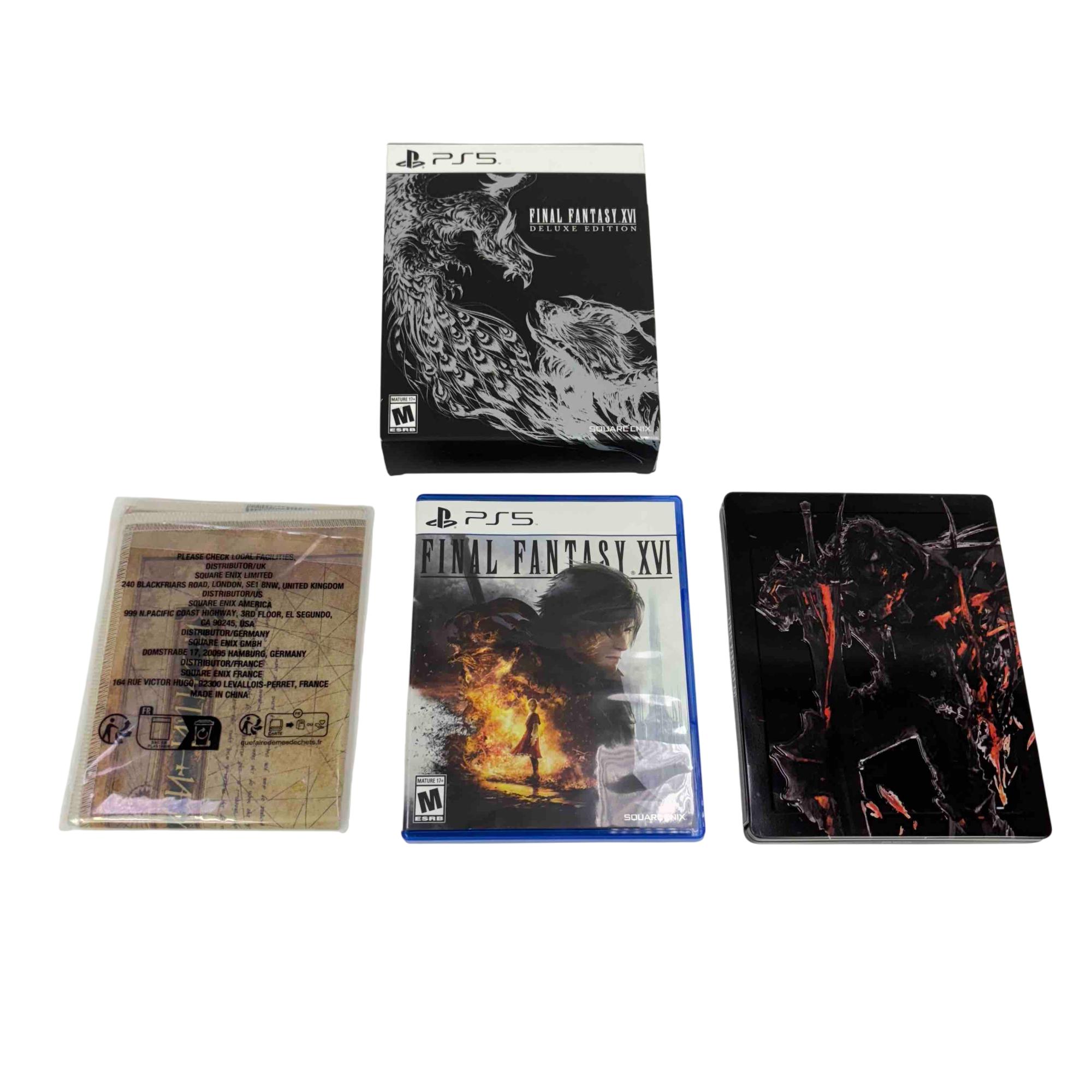 The Final Fantasy XVI Deluxe Edition for PlayStation 5 includes the base game, a special steelbook case featuring the protagonist Clive Rosfield, and a cloth world map of the game's setting, Valisthea. Get your copy today!