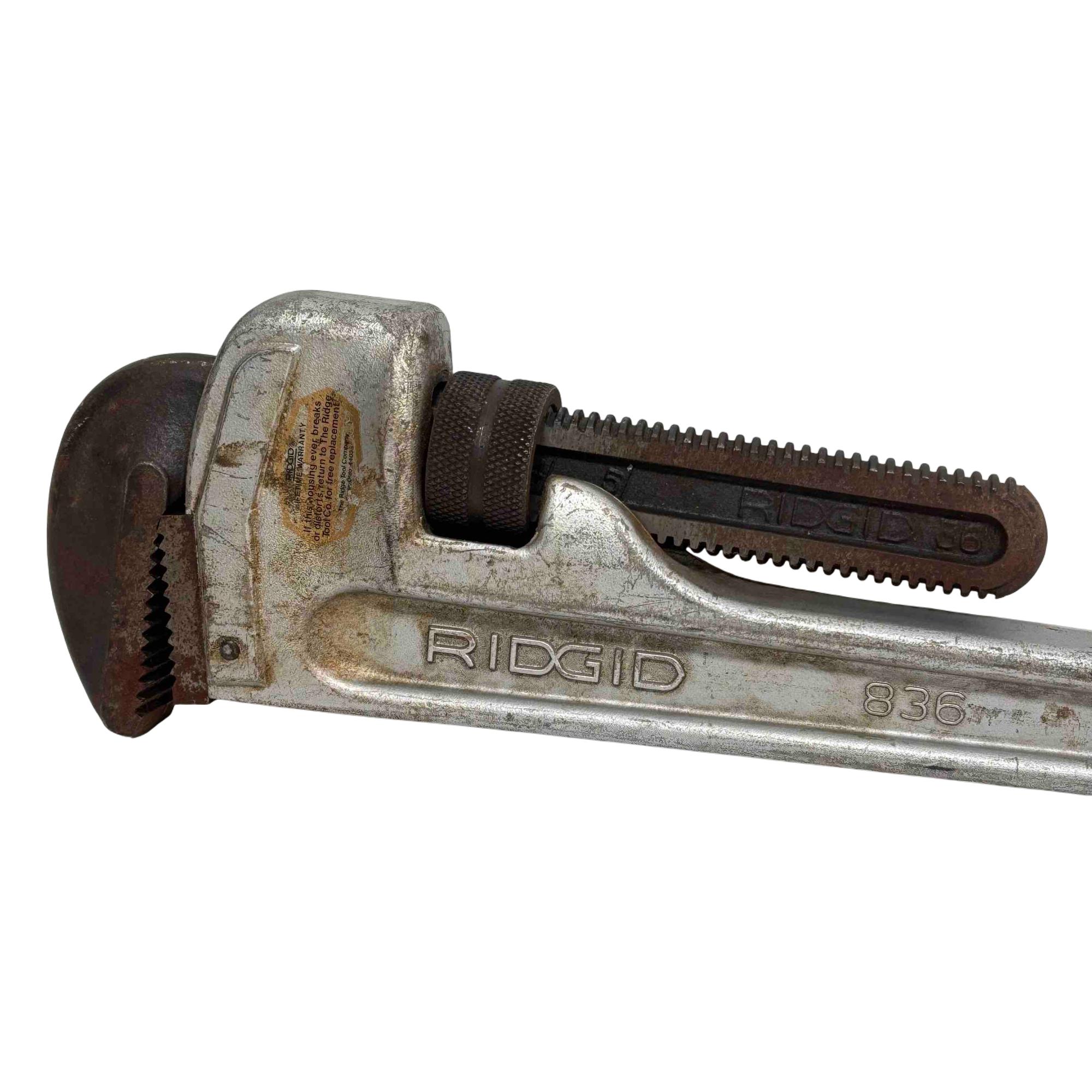 RIDGID 36" Aluminum Heavy Duty Pipe Wrench is a durable, high-quality wrench designed for heavy-duty pipe work. Made from corrosion-resistant aluminum, this 36-inch (900mm) tool provides excellent leverage and strength for plumbing and industrial applications. Its robust construction ensures reliable performance on tough jobs requiring precise grip and torque.
