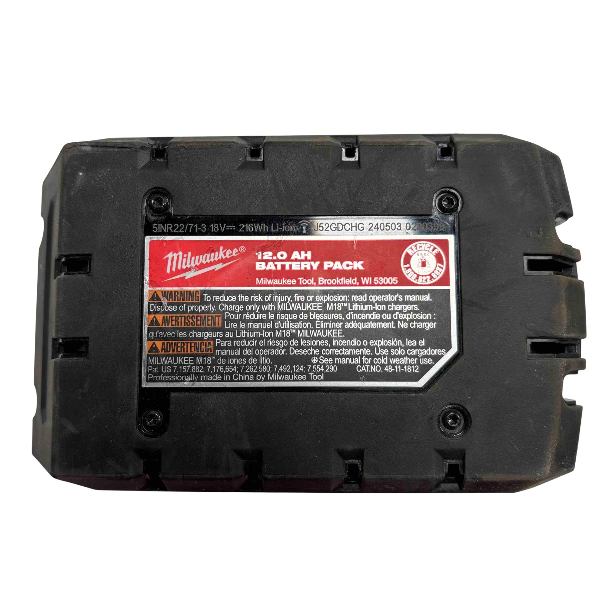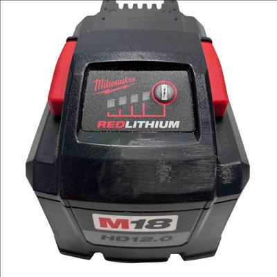 The Milwaukee 48-11-1812 M18 REDLITHIUM HIGH OUTPUT HD12.0 18V 12.0Ah Battery delivers superior power for M18 cordless tools. Featuring advanced high output technology, this battery pack ensures maximum performance and durability for demanding applications.