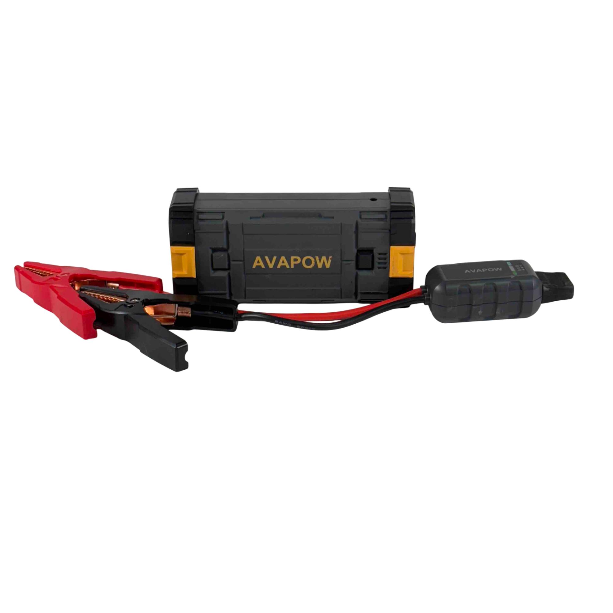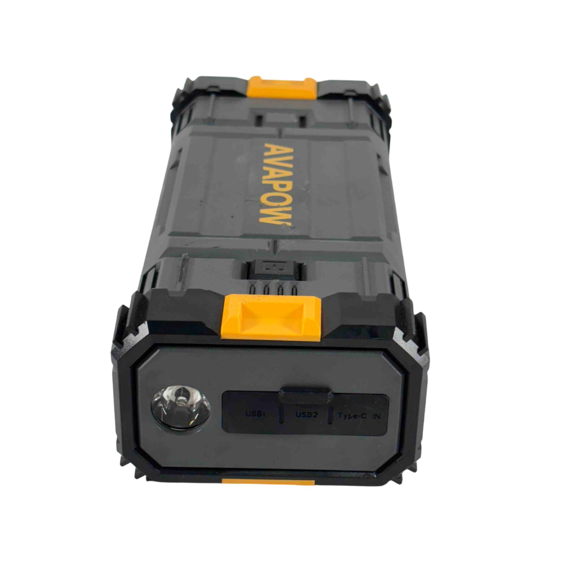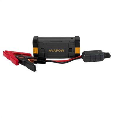AVAPOW Car Jump Starter is a powerful and compact device designed to jump-start vehicles up to 12V with a peak current of 4000A. It features dual USB outputs for quick charging, supporting 5V/3A, 9V/2A, and 12V/1.5A outputs, making it ideal for emergency use and on-the-go power needs.
