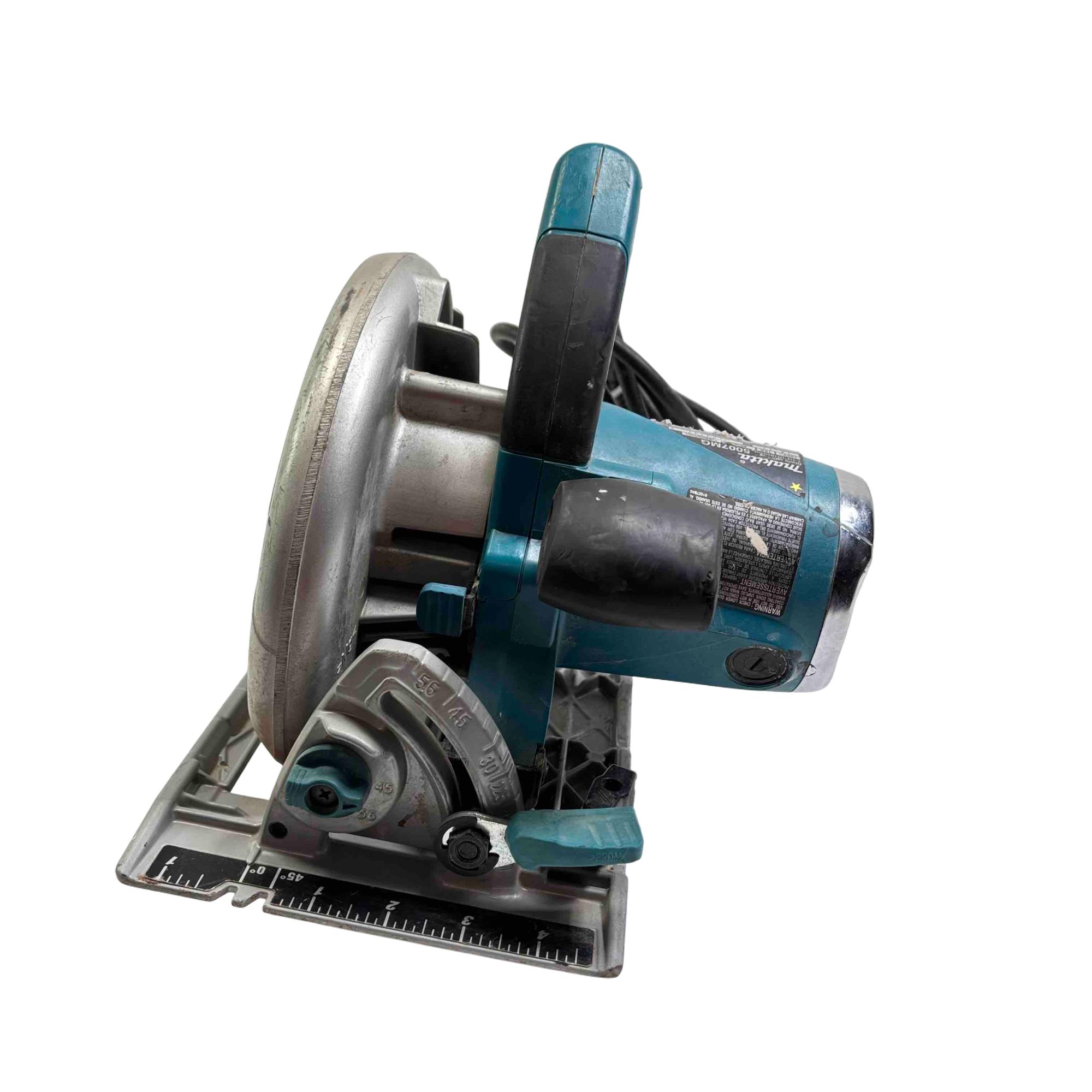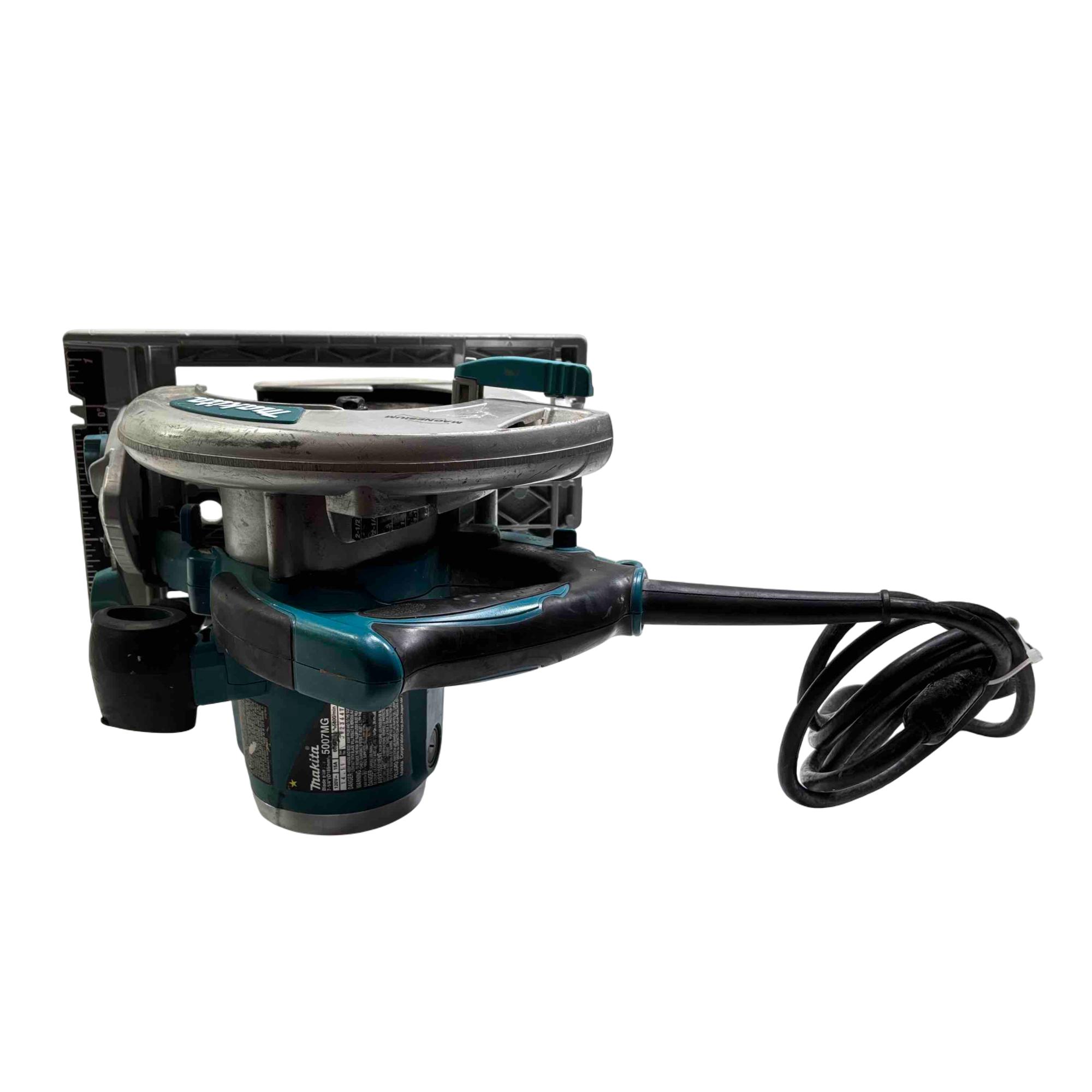 Makita 5007MG Magnesium 7-1/4-Inch Circular Saw features a durable magnesium frame and a powerful motor designed for precise cutting. This corded circular saw includes a 7-1/4-inch blade and ergonomic handle for comfortable use, making it ideal for woodworking and construction projects.