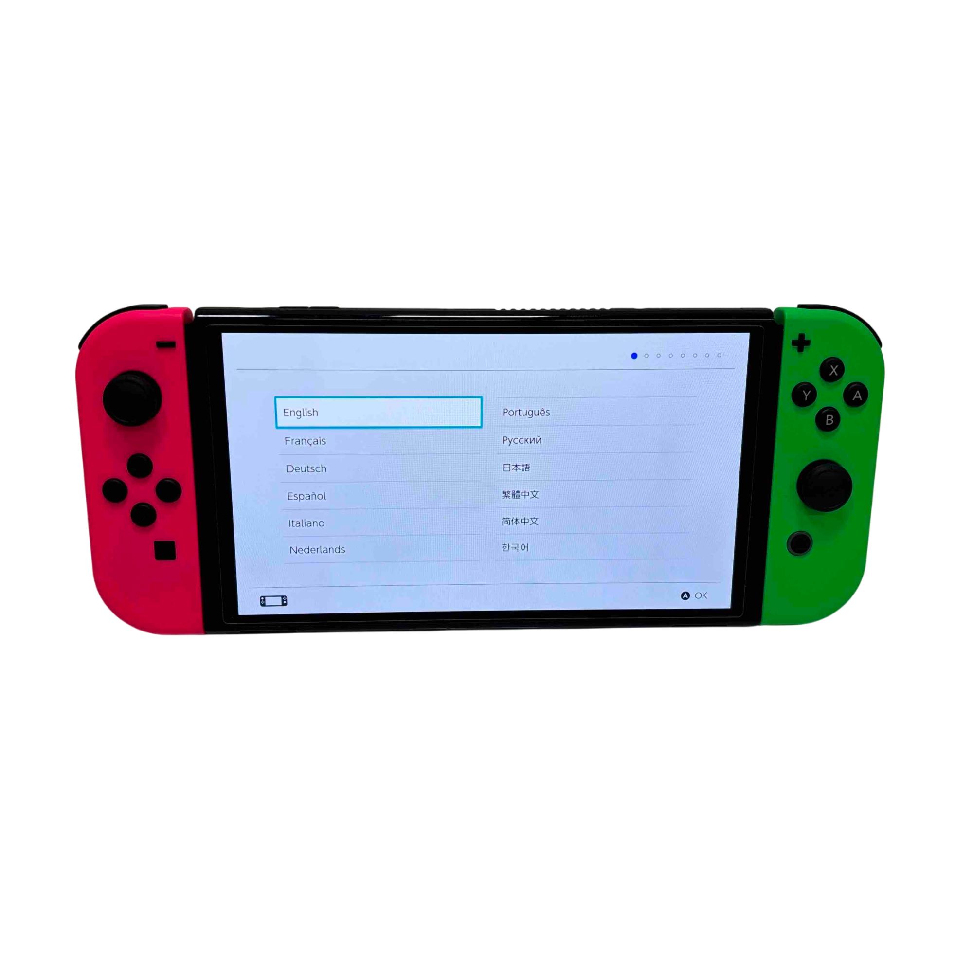 The Nintendo Switch OLED HEG-001 features a vibrant 7-inch OLED touchscreen for stunning visuals and crisp contrast. Its wide adjustable stand ensures comfortable viewing in Tabletop mode, while the dock’s LAN port offers a stable wired internet connection in TV mode. Enhanced audio delivers rich sound through onboard speakers in Handheld and Tabletop modes, and the console supports all Joy-Con controllers for versatile gameplay.
