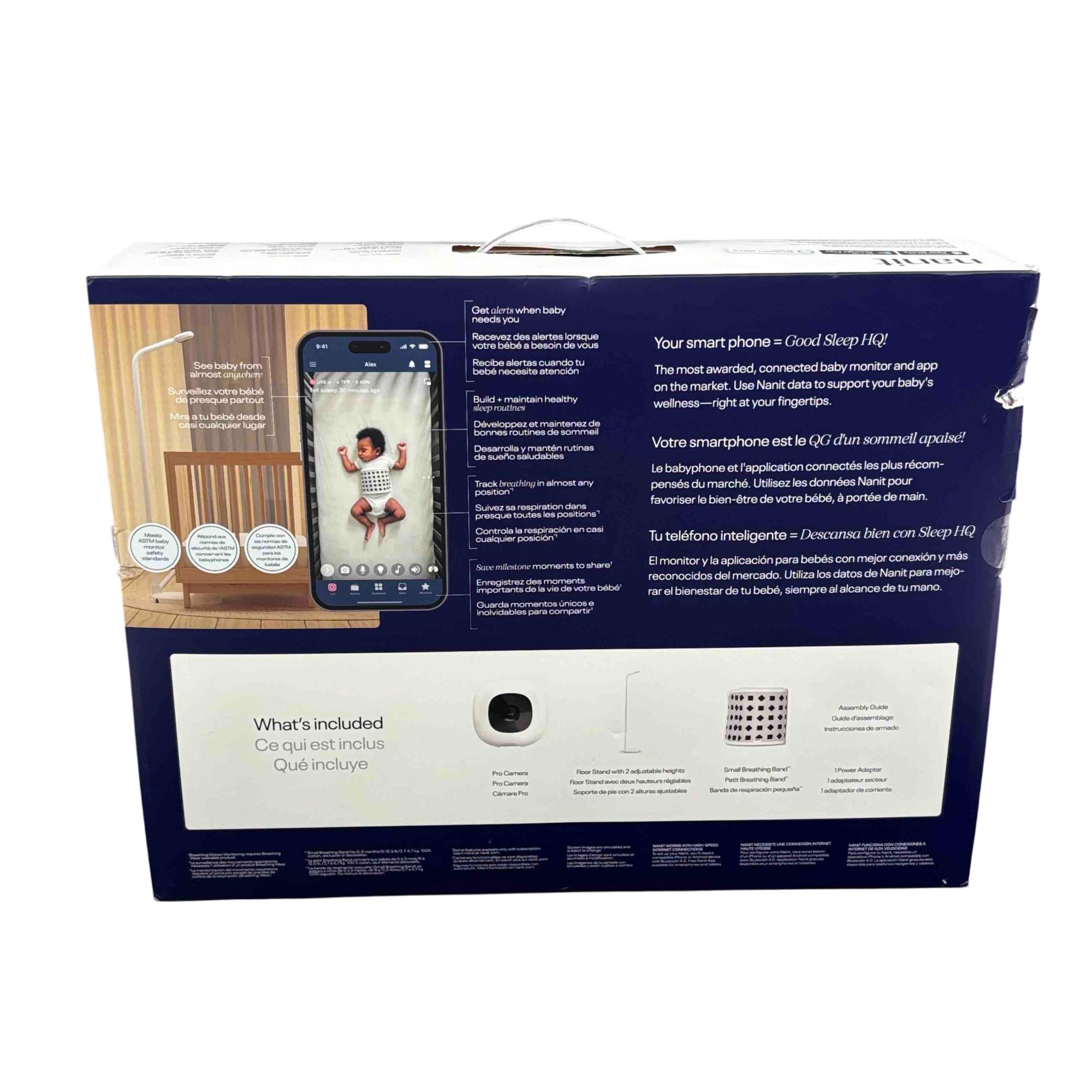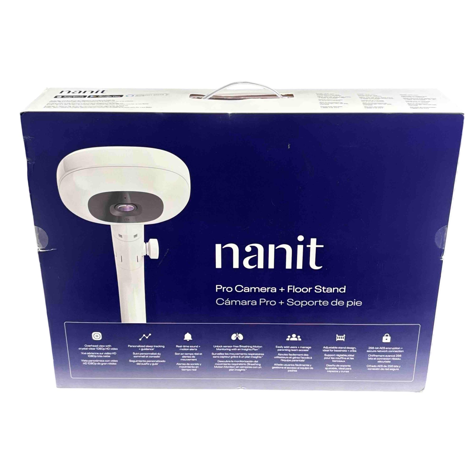 Nanit Pro Smart Baby Monitor & Floor Stand, White (Model: N303NW) is an advanced 1080p HD Wi-Fi video baby monitor featuring a Pro Camera and a floor stand with two adjustable heights for optimal nursery placement. It includes a small breathing band and offers smart alerts to monitor your babys sleep and breathing patterns remotely via your smartphone, making it one of the most connected and awarded baby monitors on the market.