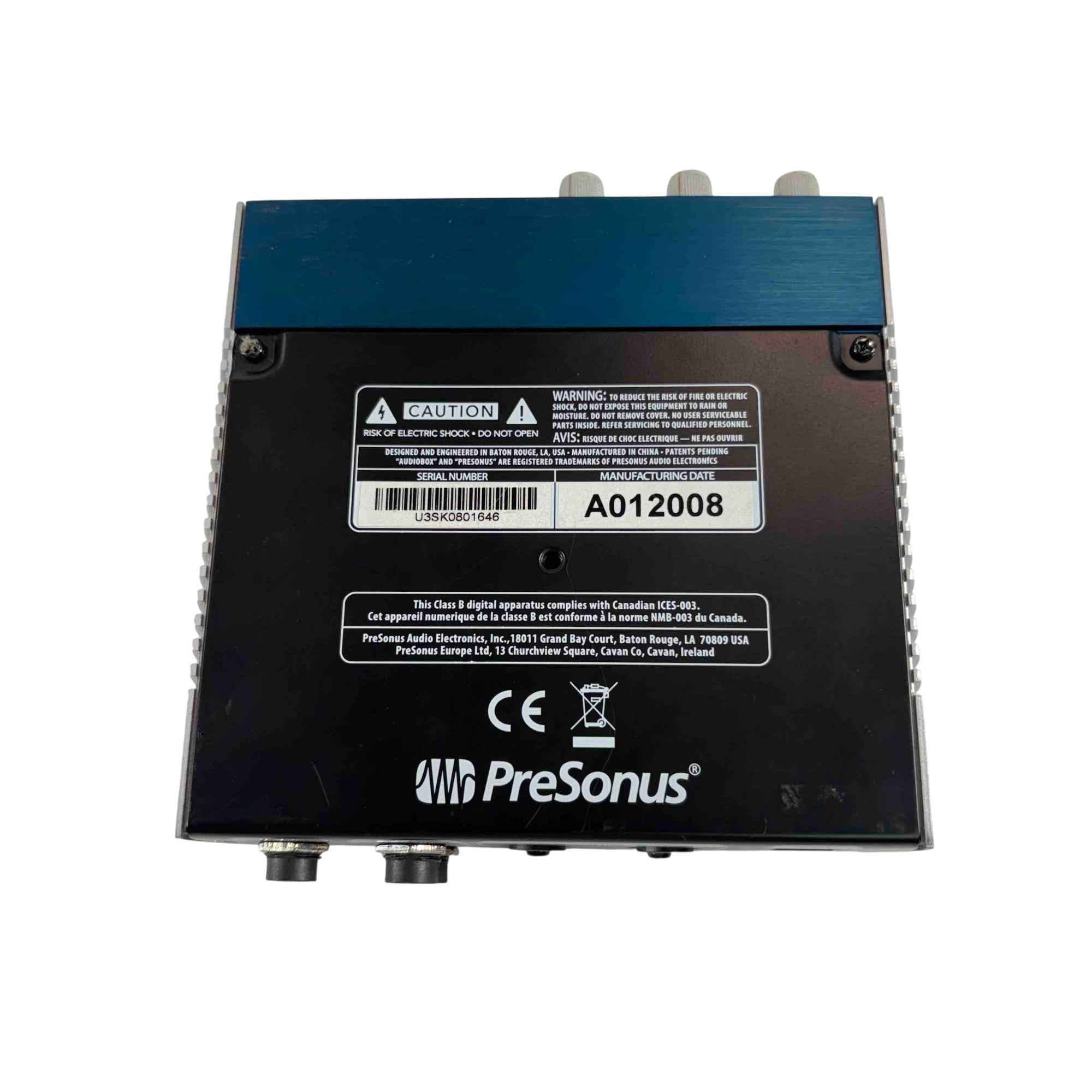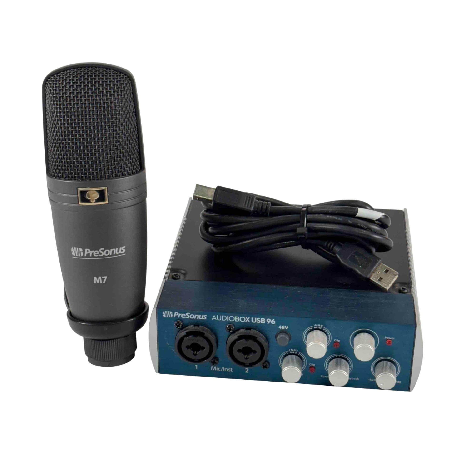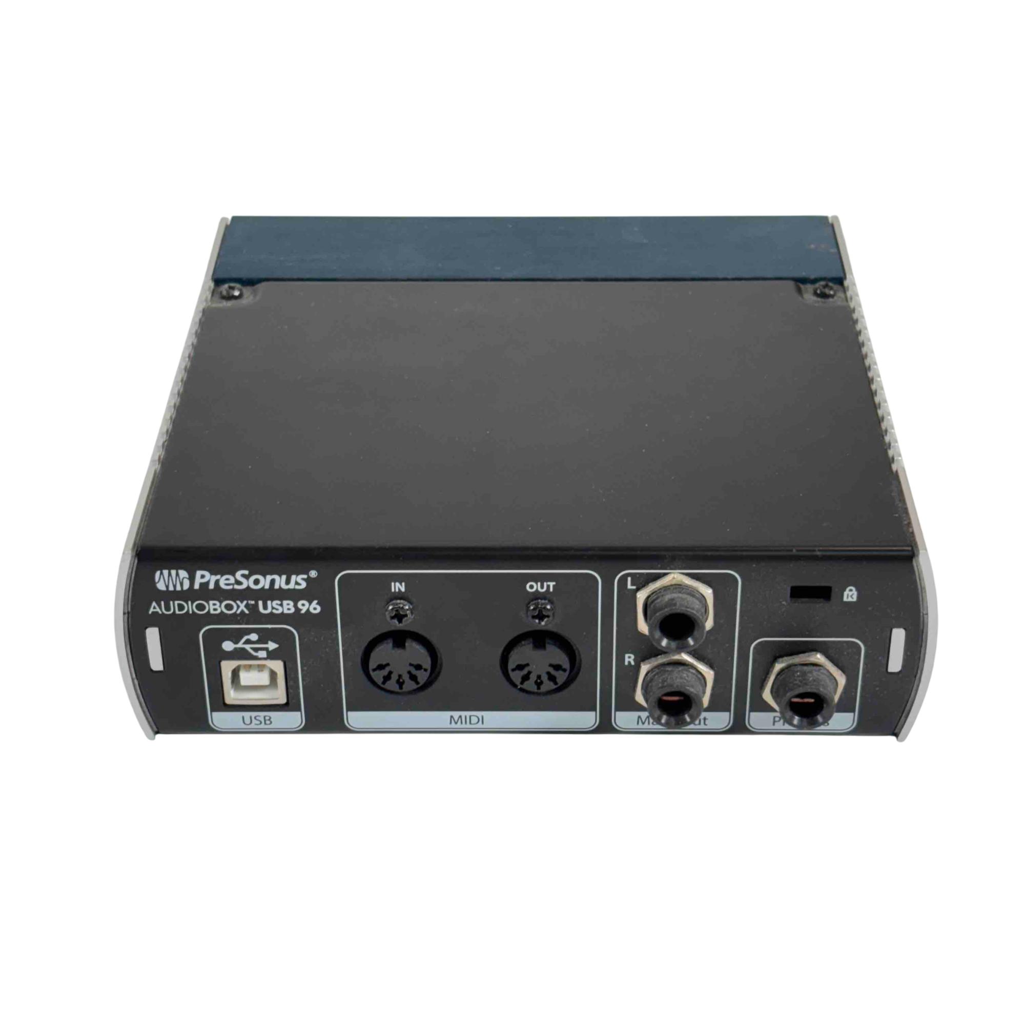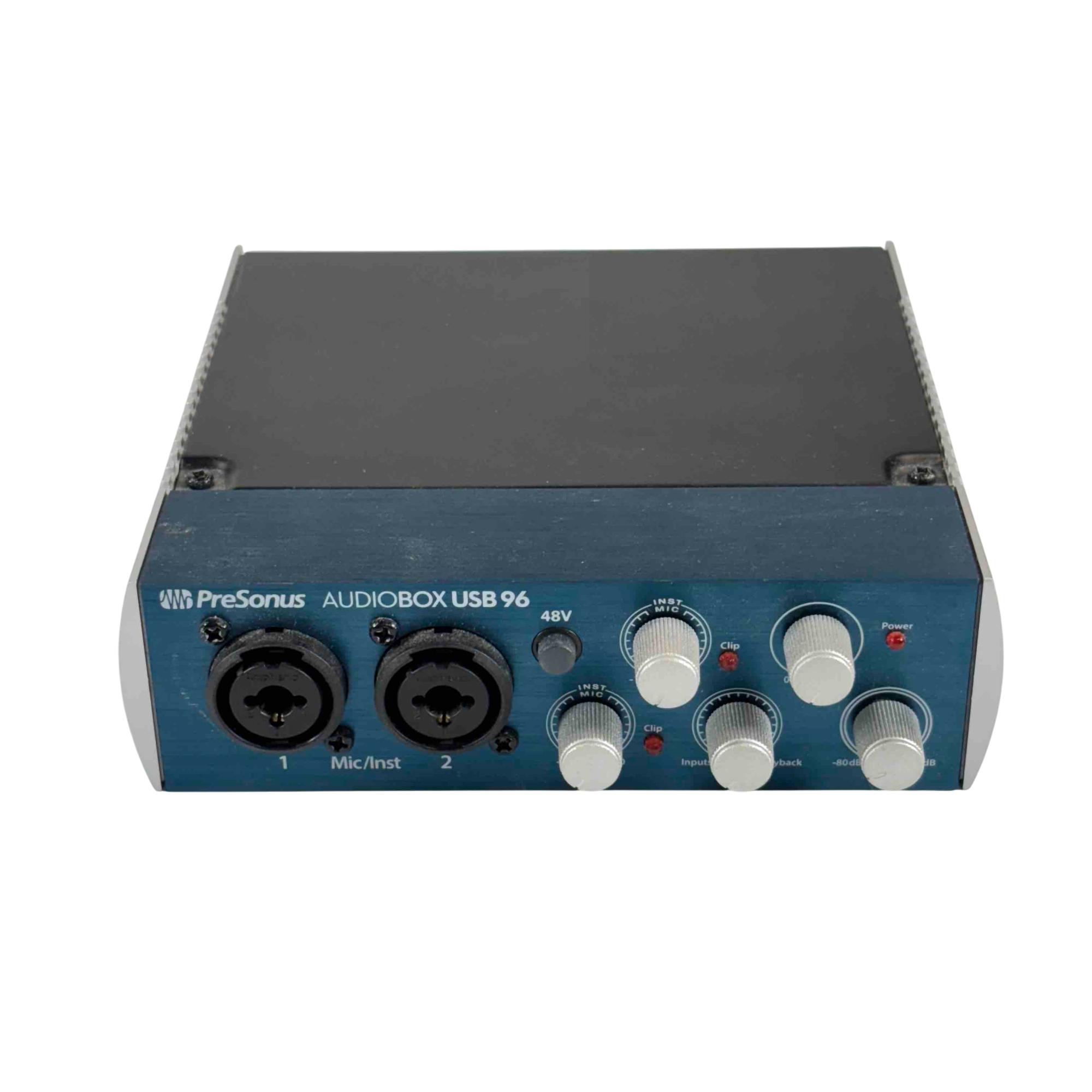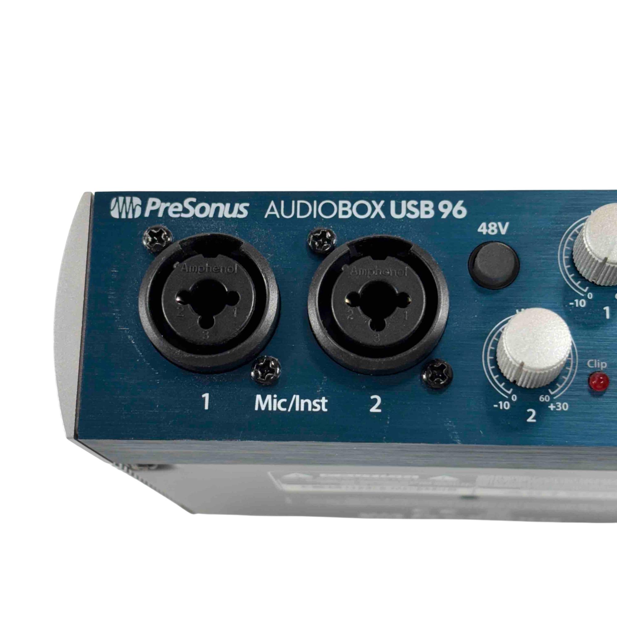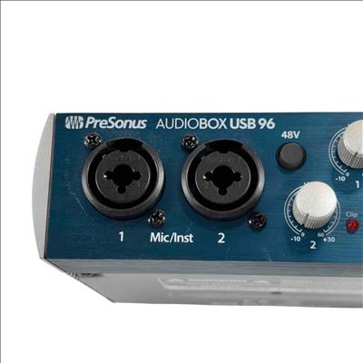 The PreSonus AudioBox USB 96 2x2 USB 2.0 Audio Interface delivers professional-grade audio with two high-quality Class-A mic preamps for exceptional sound capture. It features two high-headroom instrument inputs for recording guitar, bass, and other line-level devices, along with MIDI I/O for versatile connectivity. Studio-grade converters support up to 24-bit/96 kHz recording and playback, ensuring crisp, high-fidelity audio for musicians and producers.
